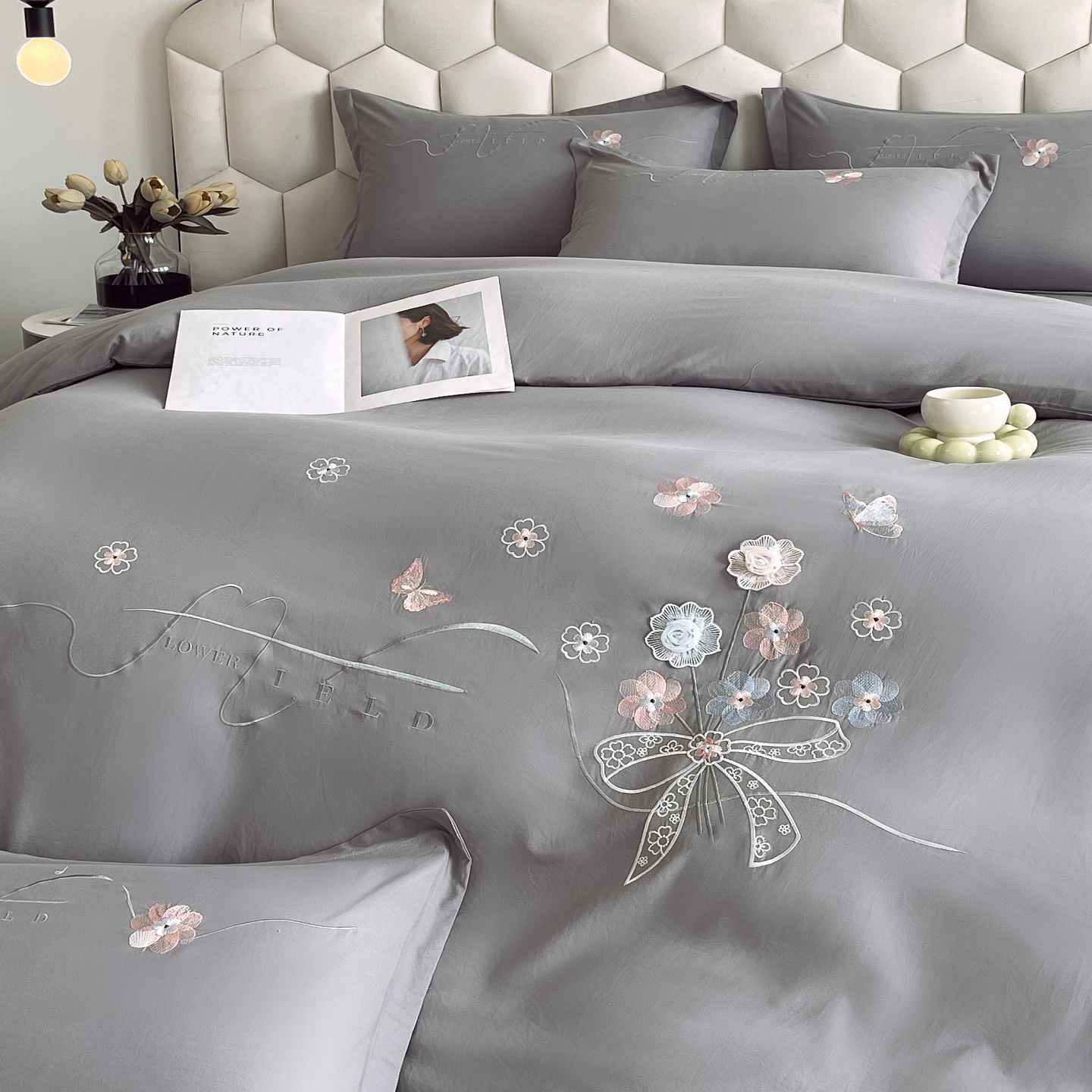 (总)大麦乐田 2025新款四季亲肤磨毛立体花刺绣工艺款四件套-花香蝶舞,花香蝶舞-香粉玉,花香蝶舞-宾利兰,花香蝶舞-梦幻紫,花香蝶舞-绅士灰,花香蝶舞-奶茶绿,花香蝶舞-大红