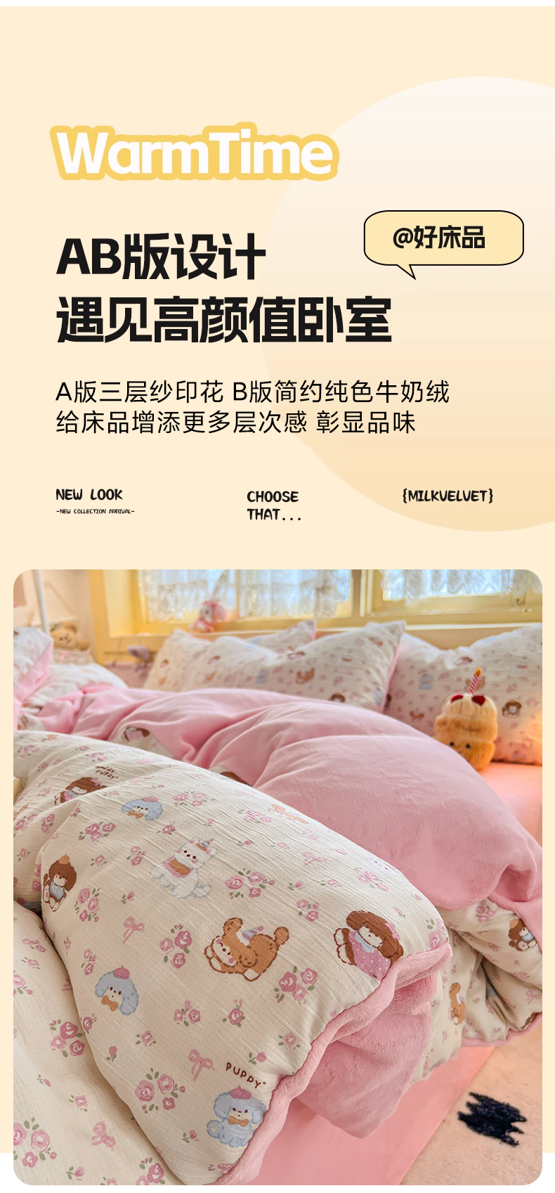 (总)玉海棠家纺 2025新款A版三层纱B版牛奶绒四件套系列,动物团团,粉黛,复古修狗,花丛点点猫,花间兔,碱水结,莫奈-咖,沐风,南瓜派,葡萄腊肠狗,糖豆腊肠狗,小花点点,撄桃蝴蝶,雨爱,紫萱