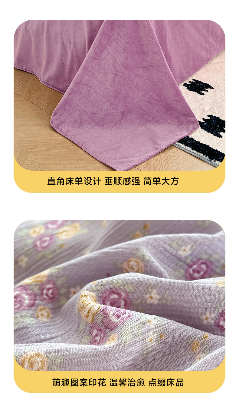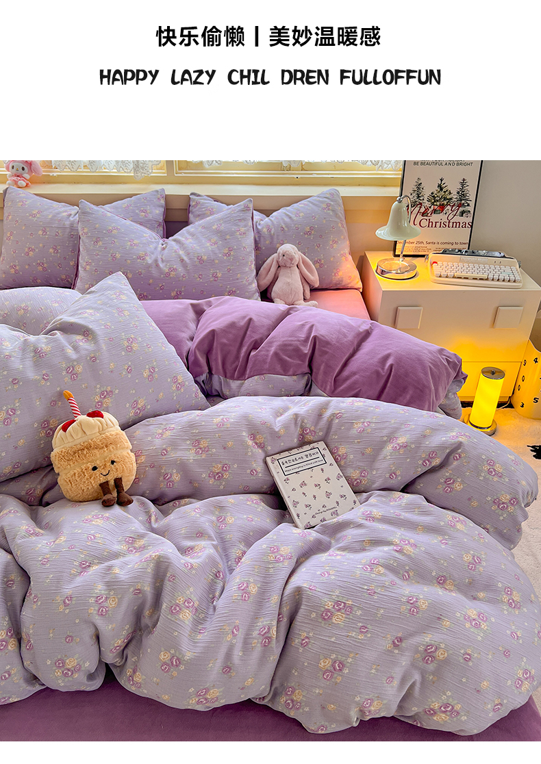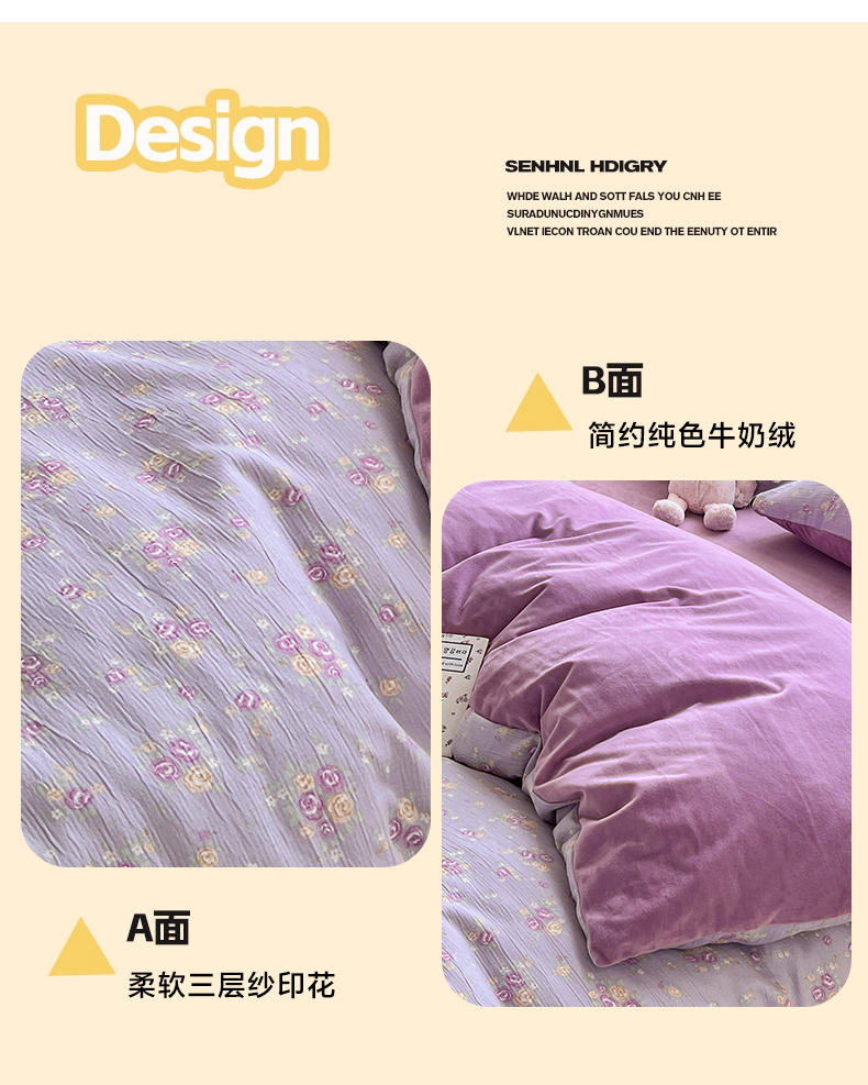 玉海棠家纺 2025新款A版三层纱B版牛奶绒四件套系列 紫萱