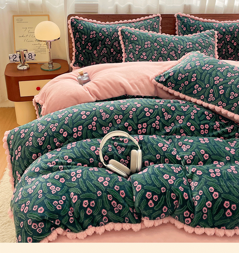 (总)羚羊语家纺 2025新款牛奶绒手作款樱桃女孩四件套毛巾绣刺绣花秋冬加厚法莱绒法兰绒珊瑚绒三件套(买家秀请联系客服!),手作女孩-奶油粉,毛巾绣-平古企鹅,手作女孩-柔雾紫,毛巾绣-自由大鹅,毛巾绣-腊肠狗,手作女孩-燕麦奶,手作女孩-清新绿