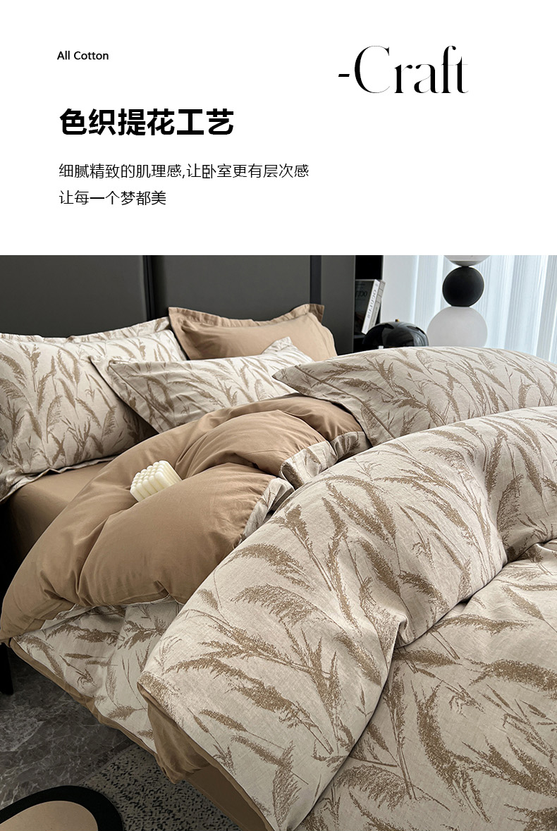 锦彩家居 2025新款A类60支全棉色织提花四件套-复古风系列 风吹穗绒-卡其
