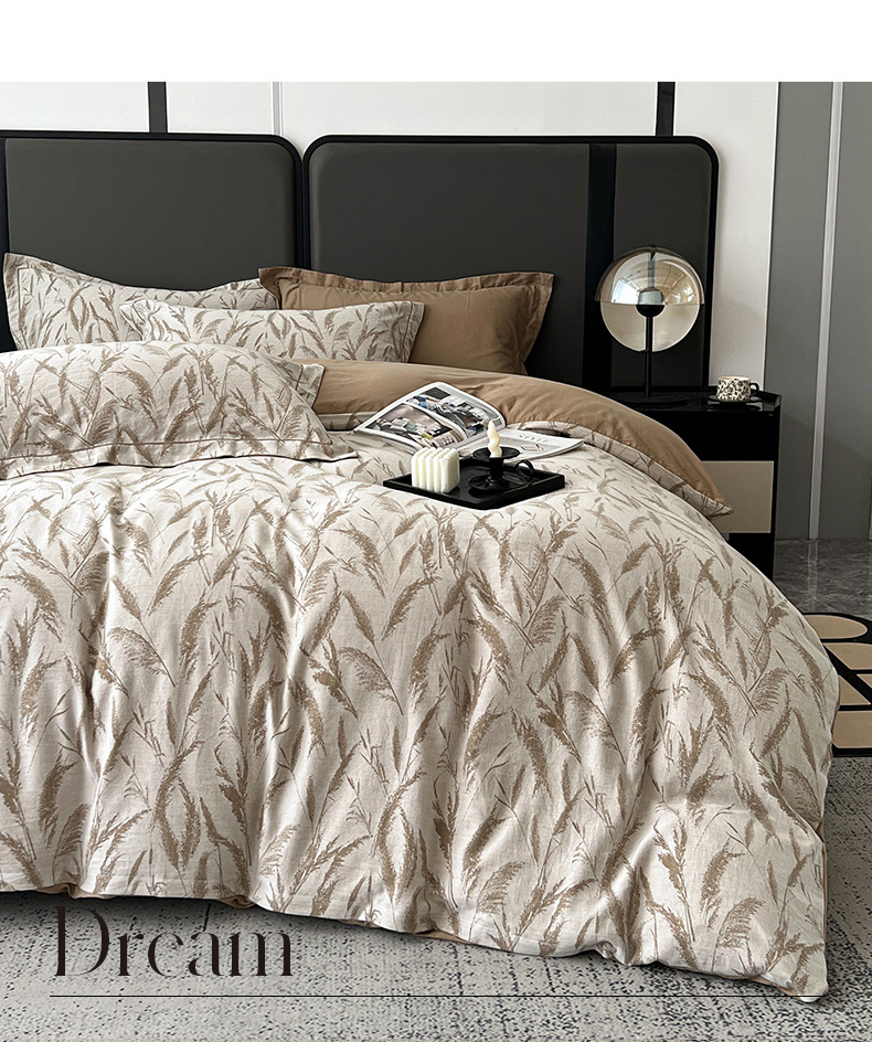商品名称:锦彩家居 2025新款A类60支全棉色织提花四件套-复古风系列 风吹穗绒-卡其