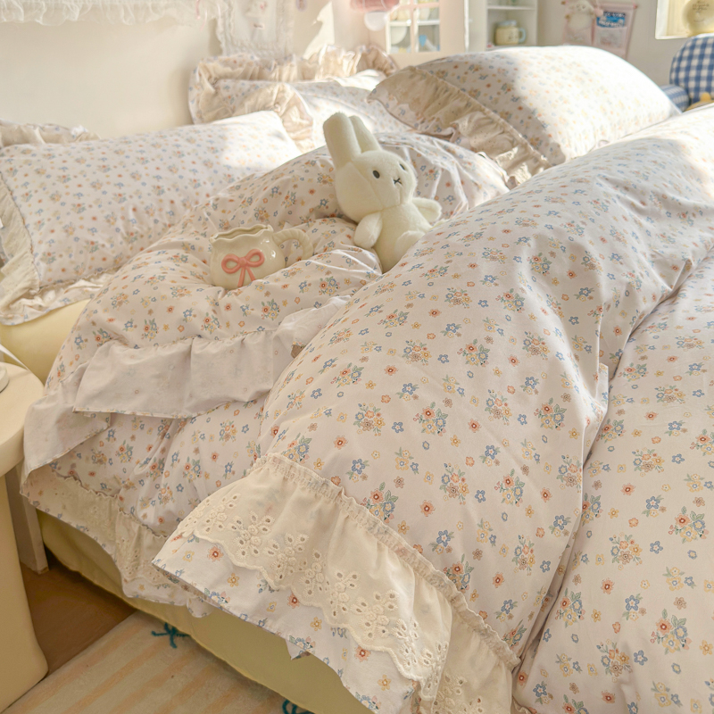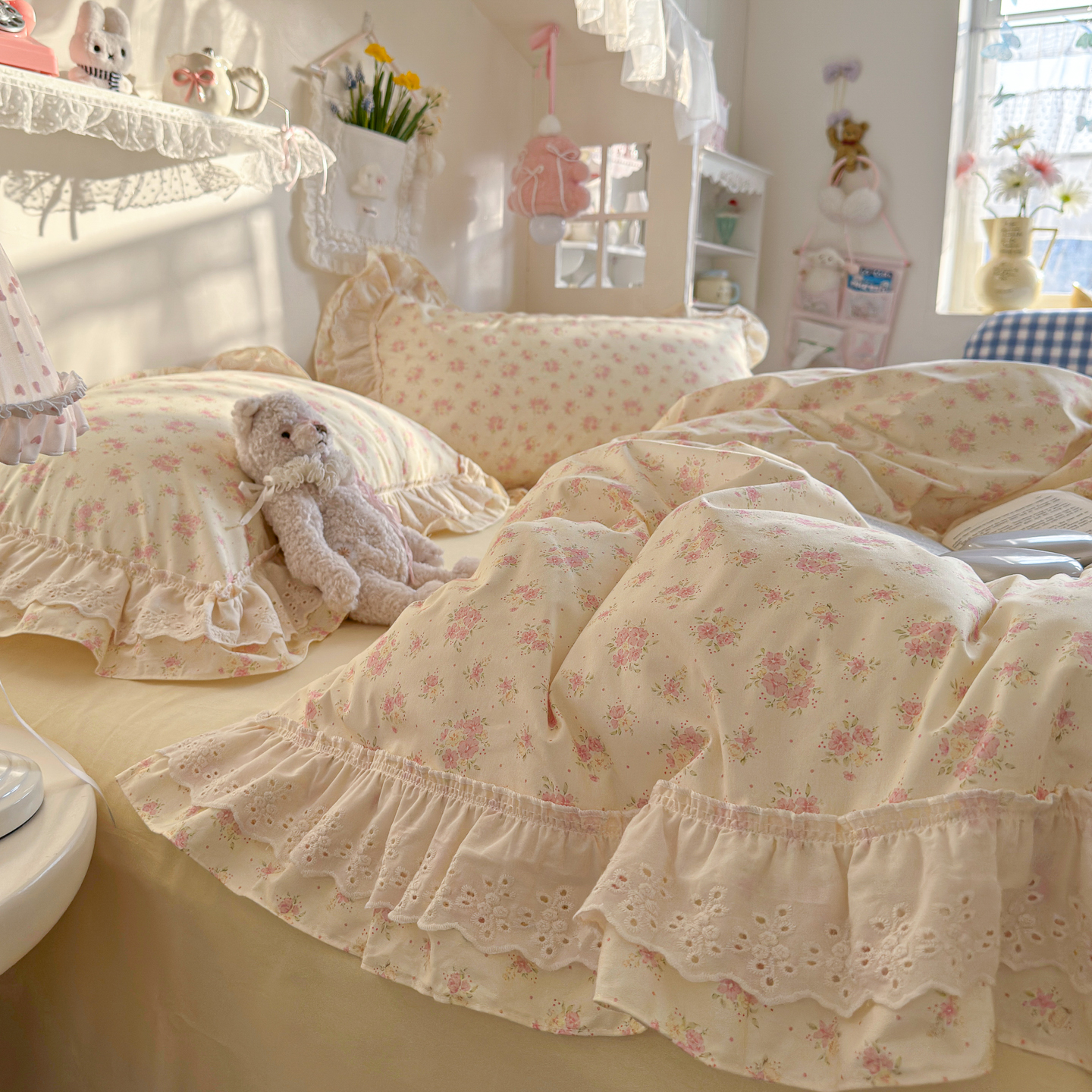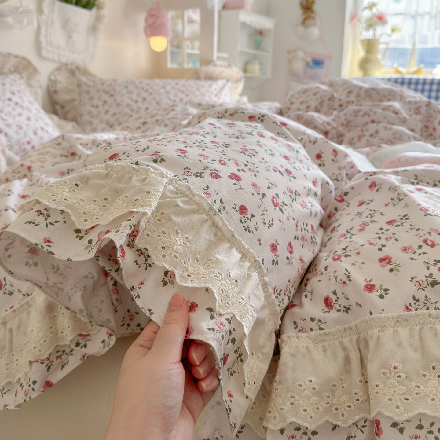 锦彩家居 2026新款全棉数码印花小碎花花边款三件套四件套INS小红书博主风(提供买家秀) 春缇玫瑰