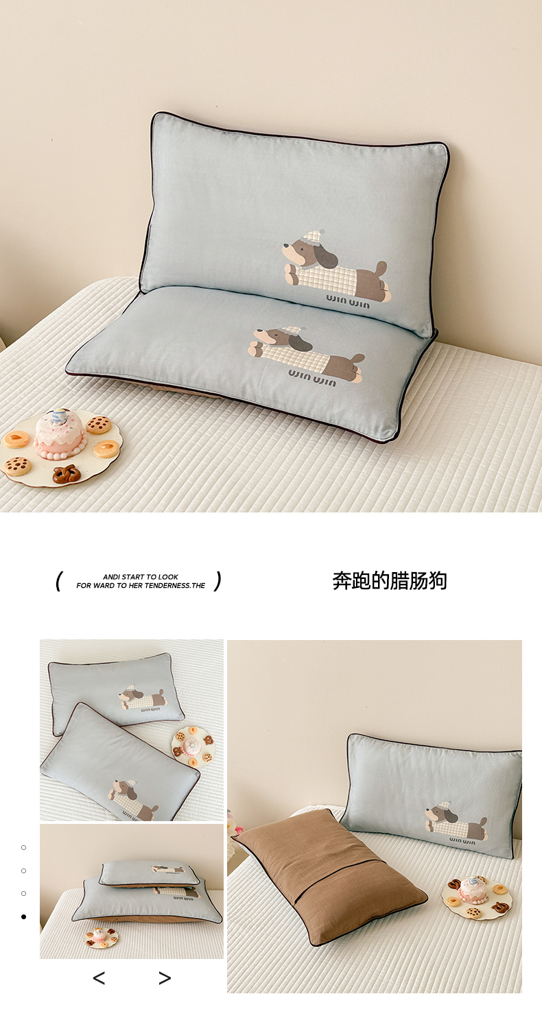 商品名称:呗旺鹿 2025新款A类全棉双层纱单枕套儿童枕头套 奔跑的腊肠狗