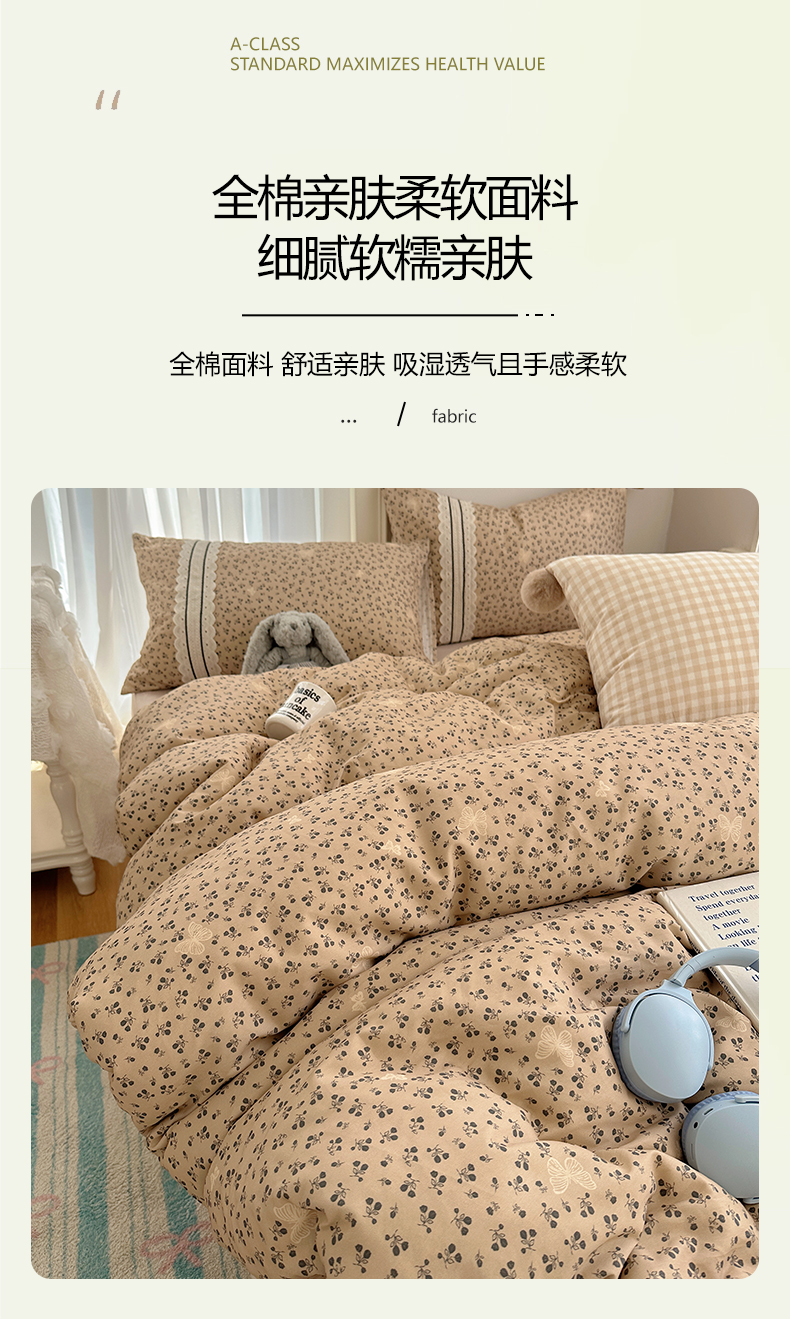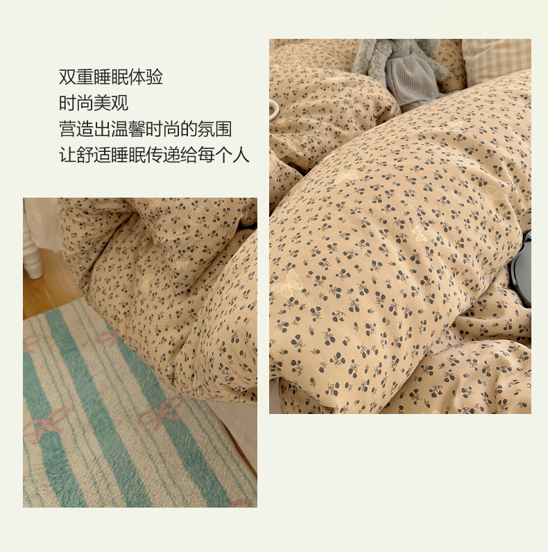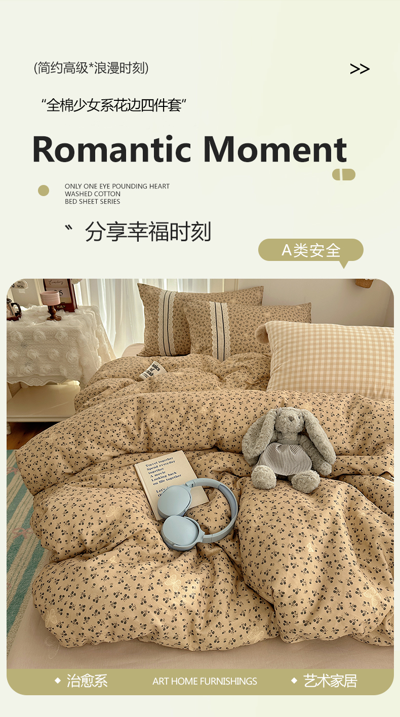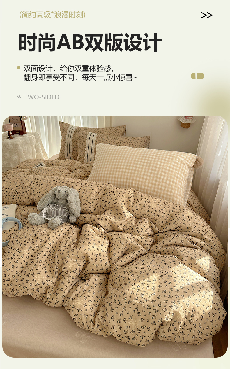 (总)三朵家纺 2026新款水洗棉碎花INS博主风混搭全棉四件套,漫花,莫里,南乔