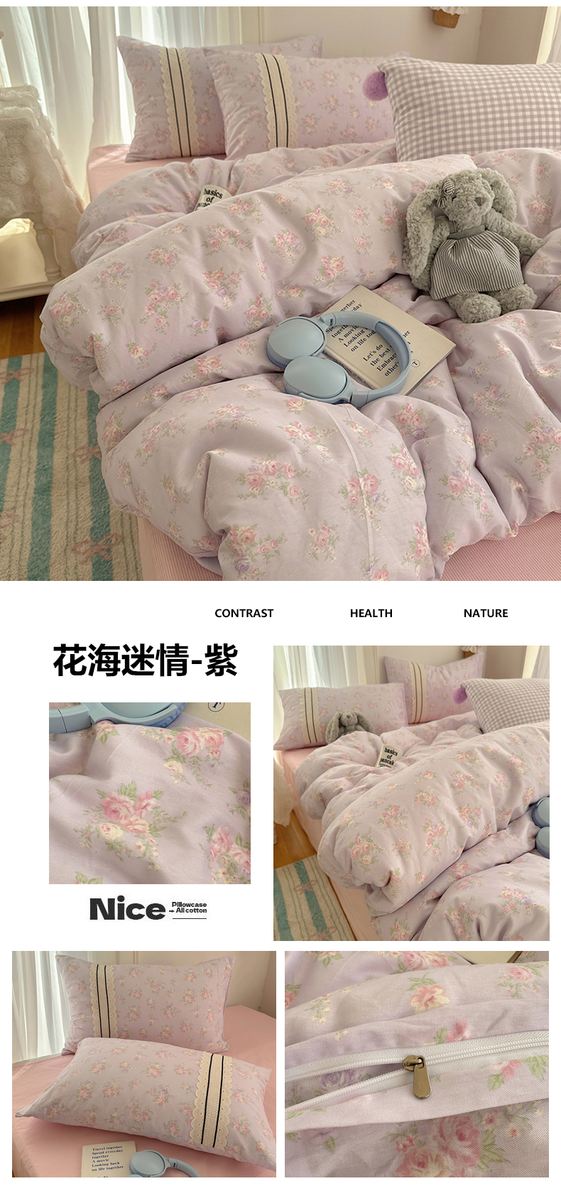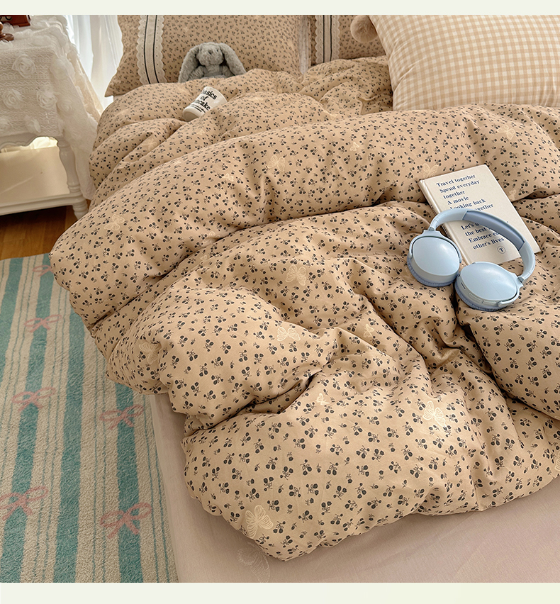 (总)三朵家纺 2026新款云柔水洗棉大花边A类韩版四件套,爱上樱桃,半岛玫瑰,草莓兔,梵高印象,花花熊仔,漫漫花香,沐语花朝,俏皮樱桃,青樱花梦