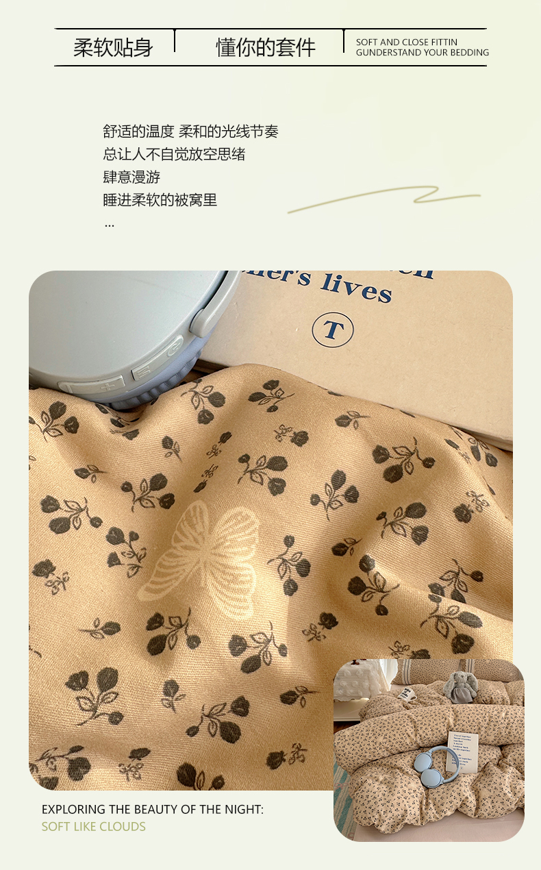 (总)三朵家纺 2026新款A类云柔水洗棉韩版法式花边云朵棉四件套,春夕集,罗逸维绿,如漫,惜花灰绿,赫拉