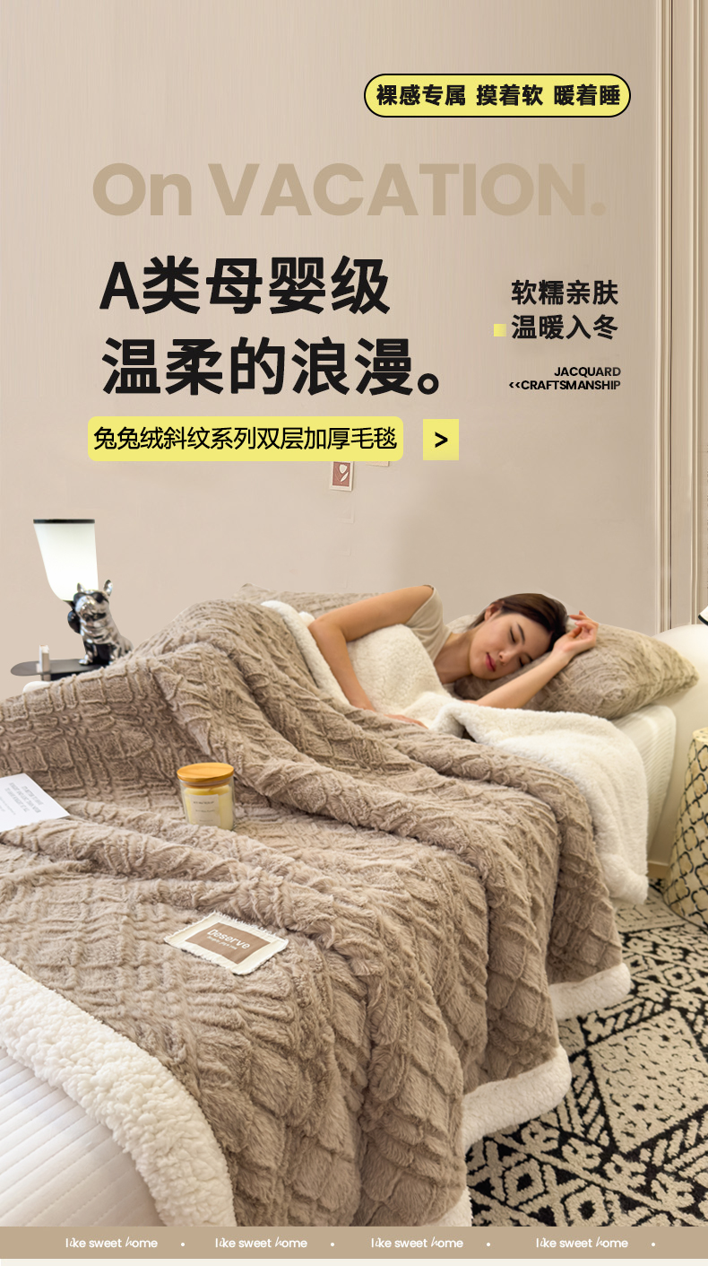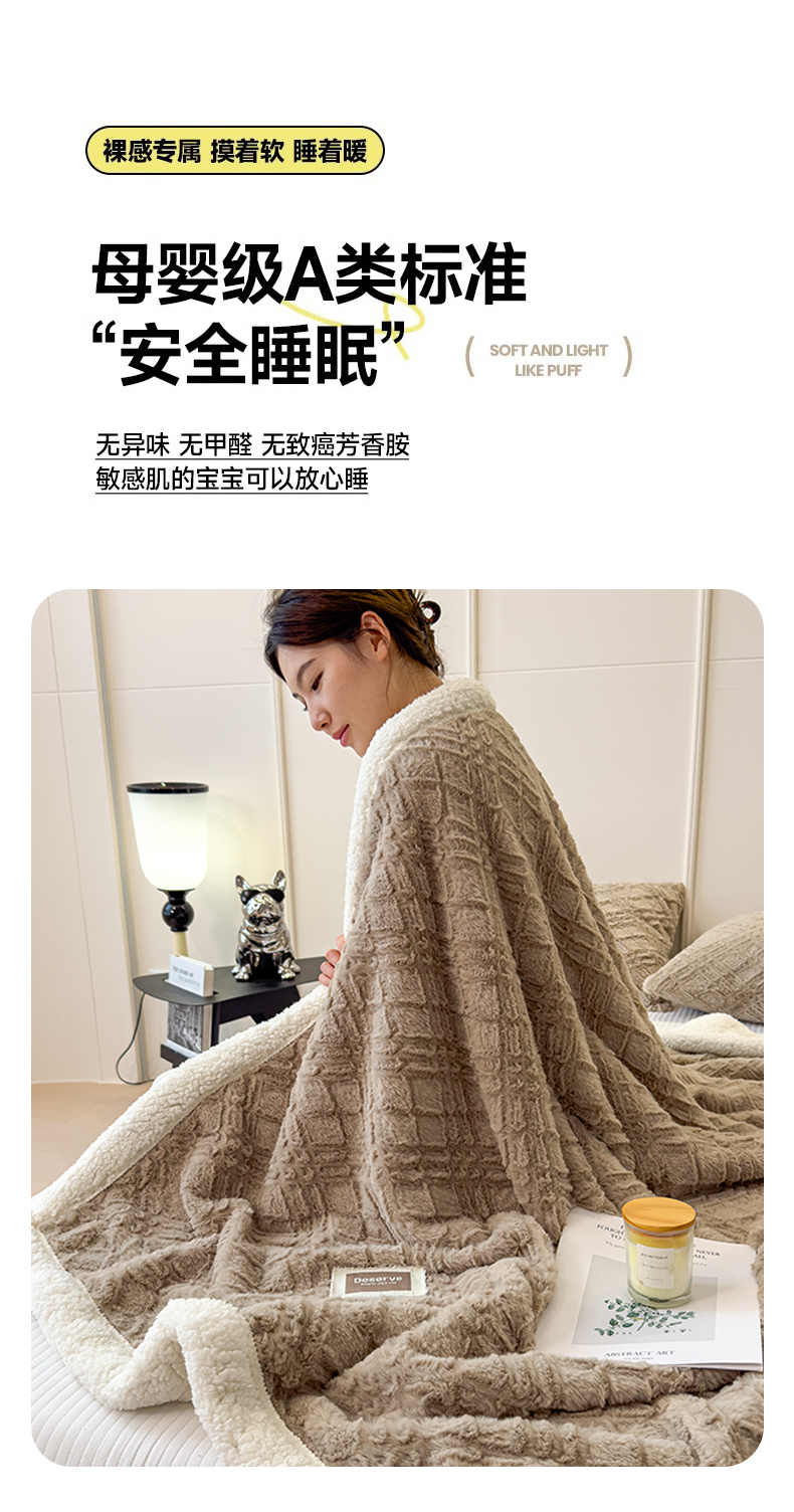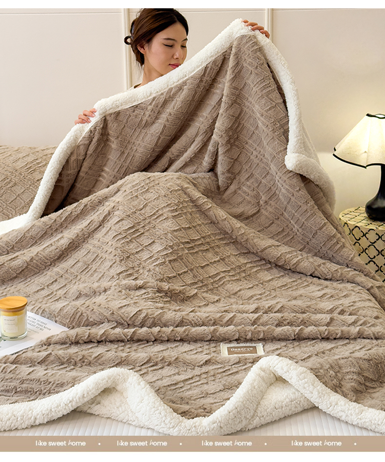 (总)慕木2025新款A类提花节节高加厚云感绒&羊羔绒双层毛毯系列(跨境爆款抽空压缩) 提供买家秀,节节高-月岩灰,节节高-云境蓝,节节高-焦糖咖,节节高-胭脂粉,节节高-雪茄紫,节节高-茧月白