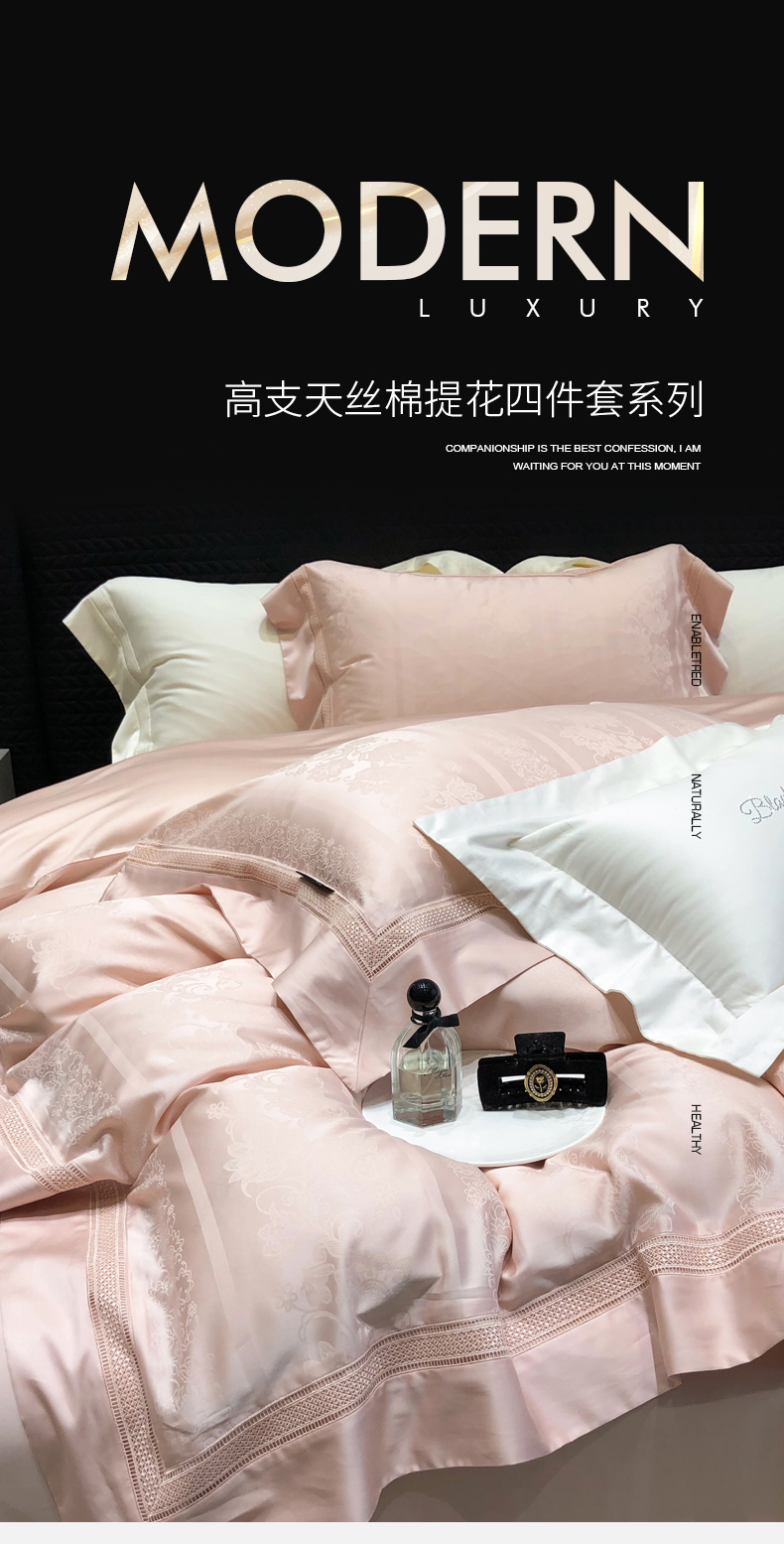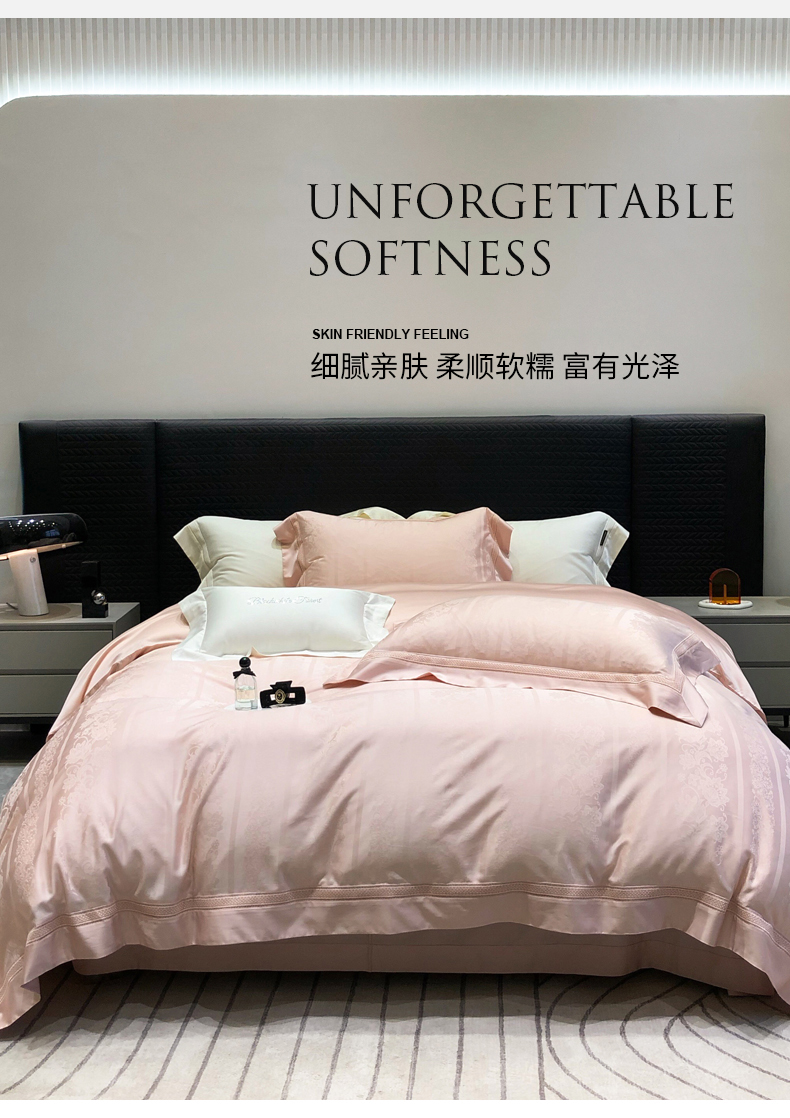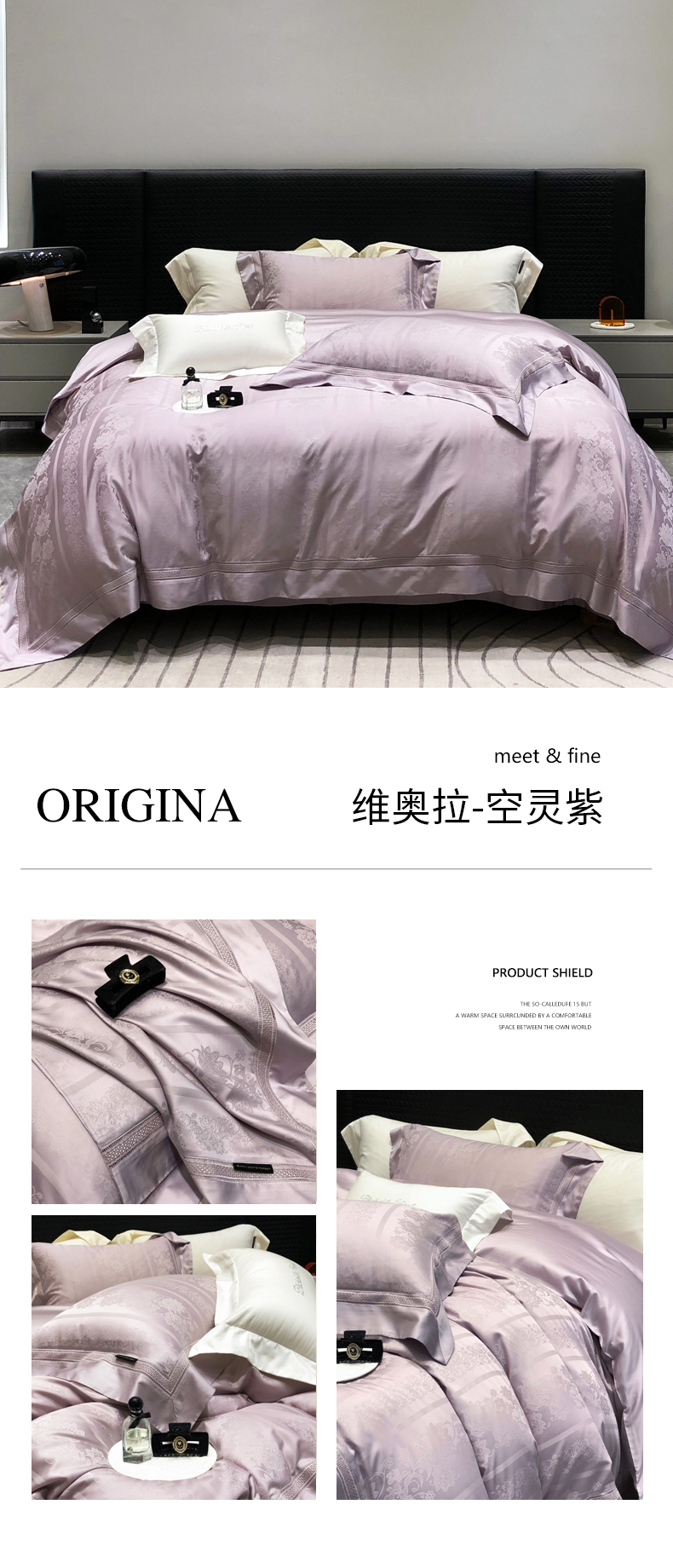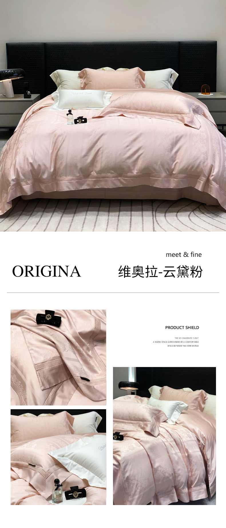 商品名称:黑白森林 2025新款80S超细旦天丝棉提花四件套 维奥拉-云黛粉