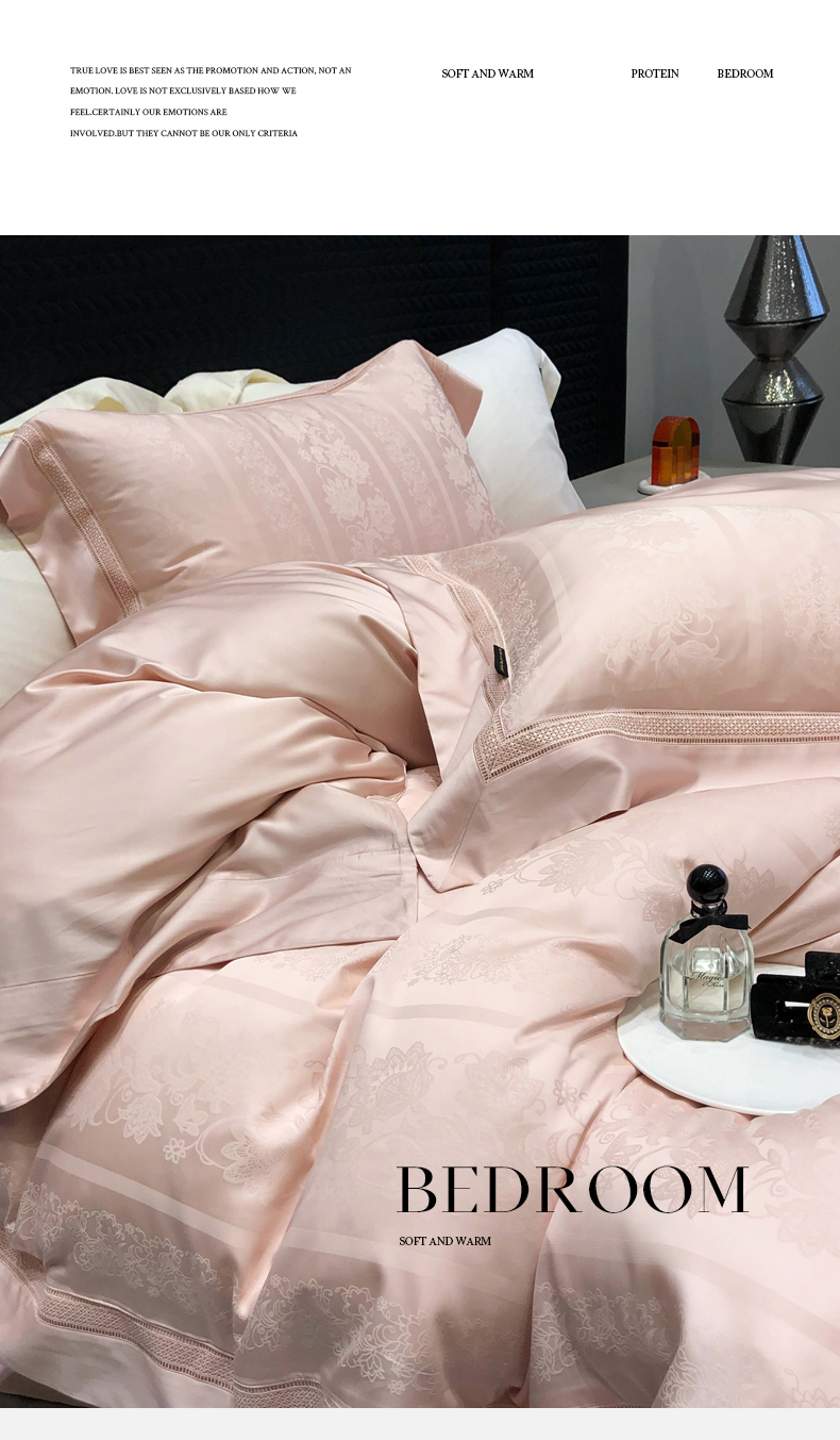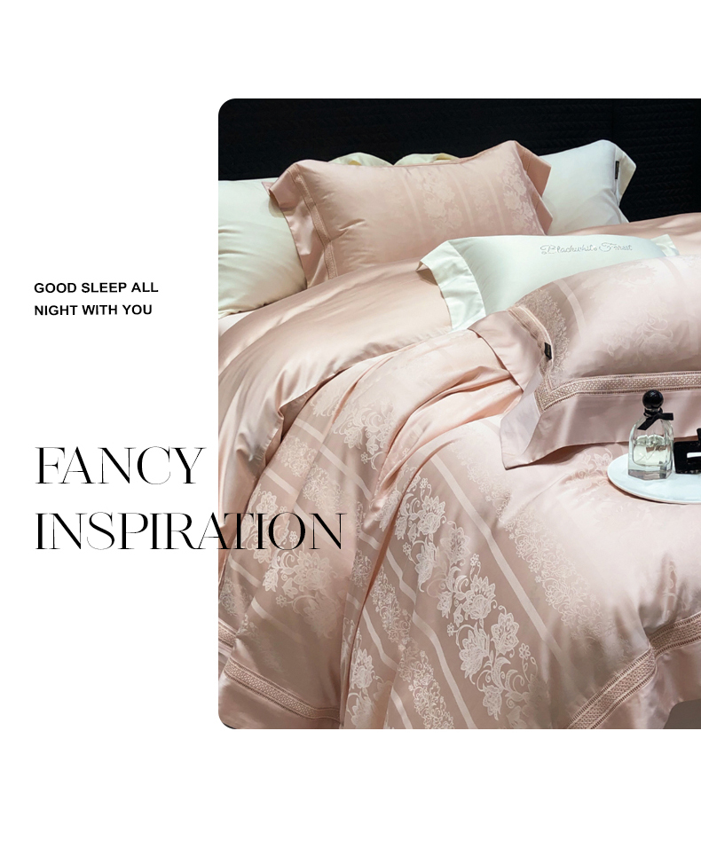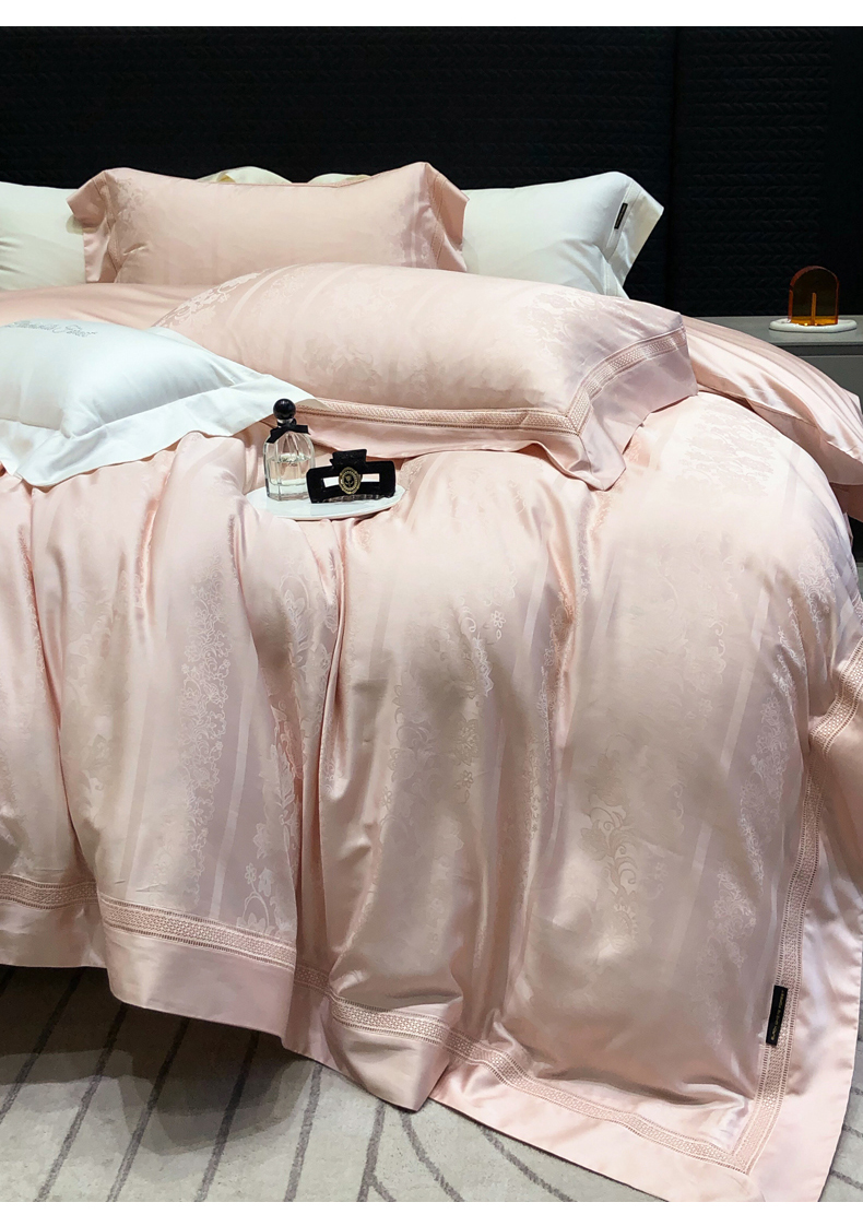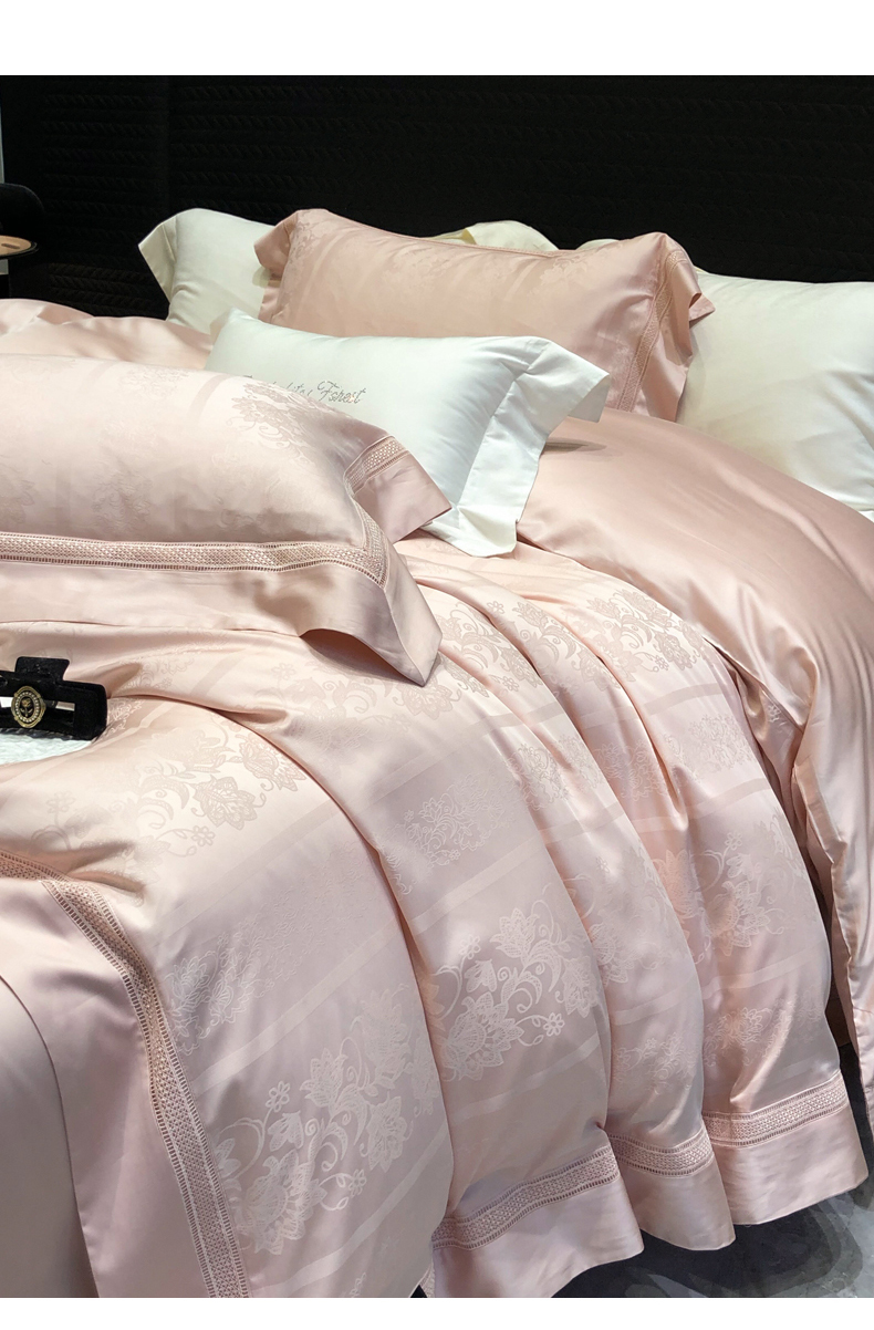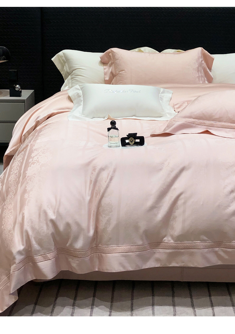 商品名称:黑白森林 2025新款80S超细旦天丝棉提花四件套 维奥拉-云黛粉