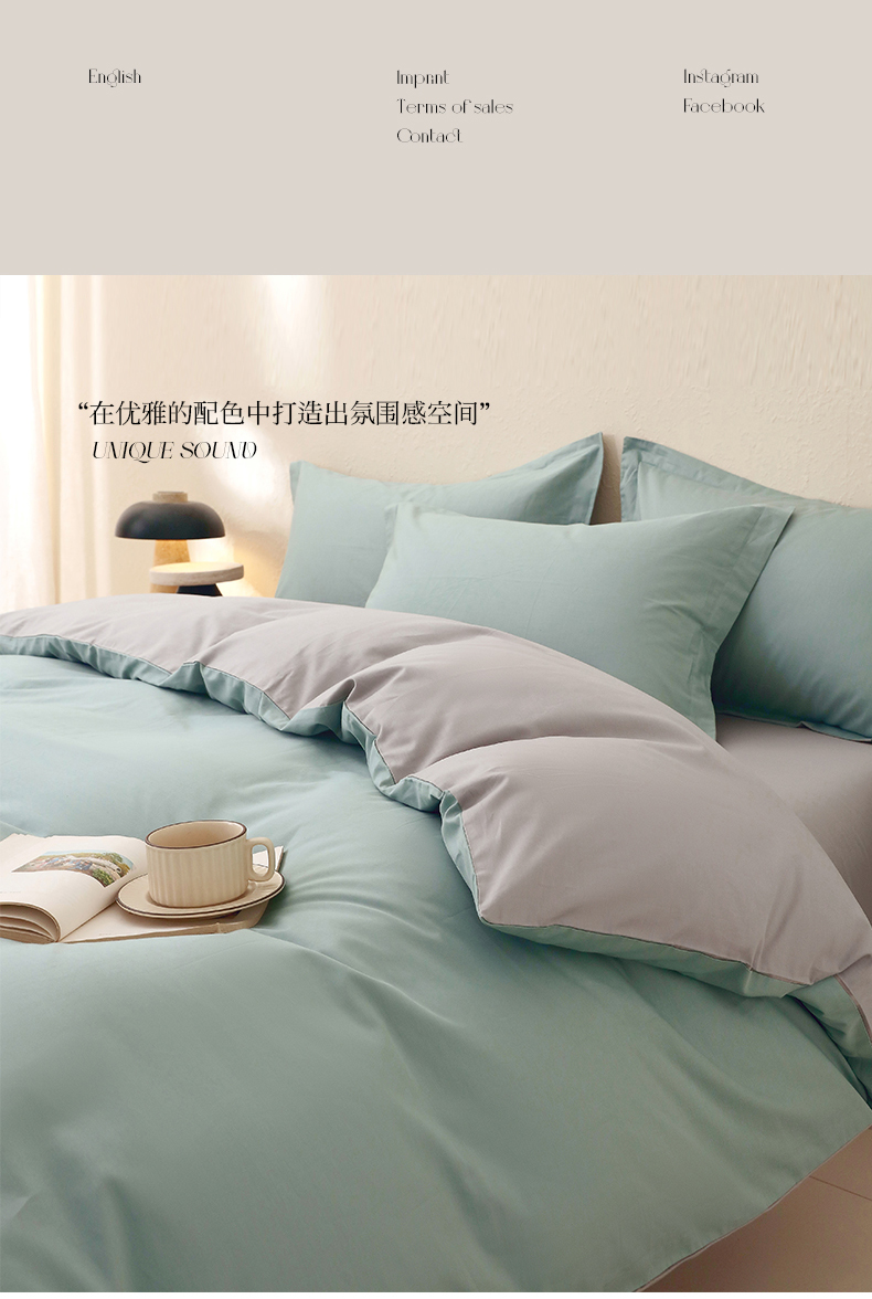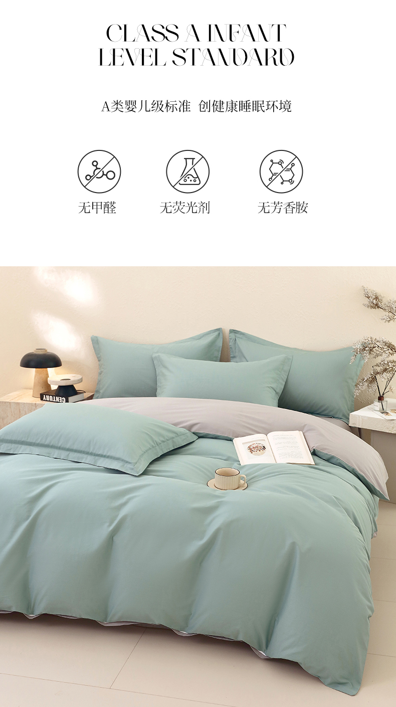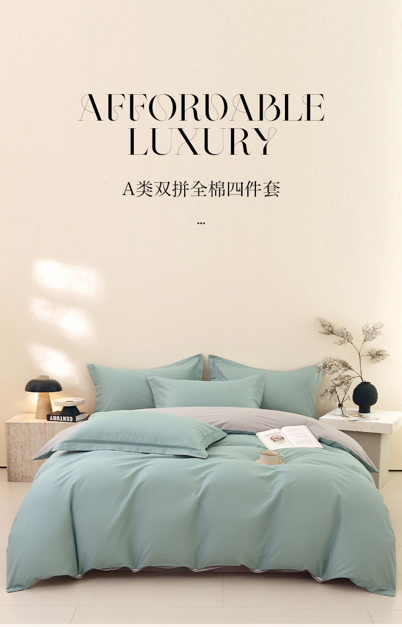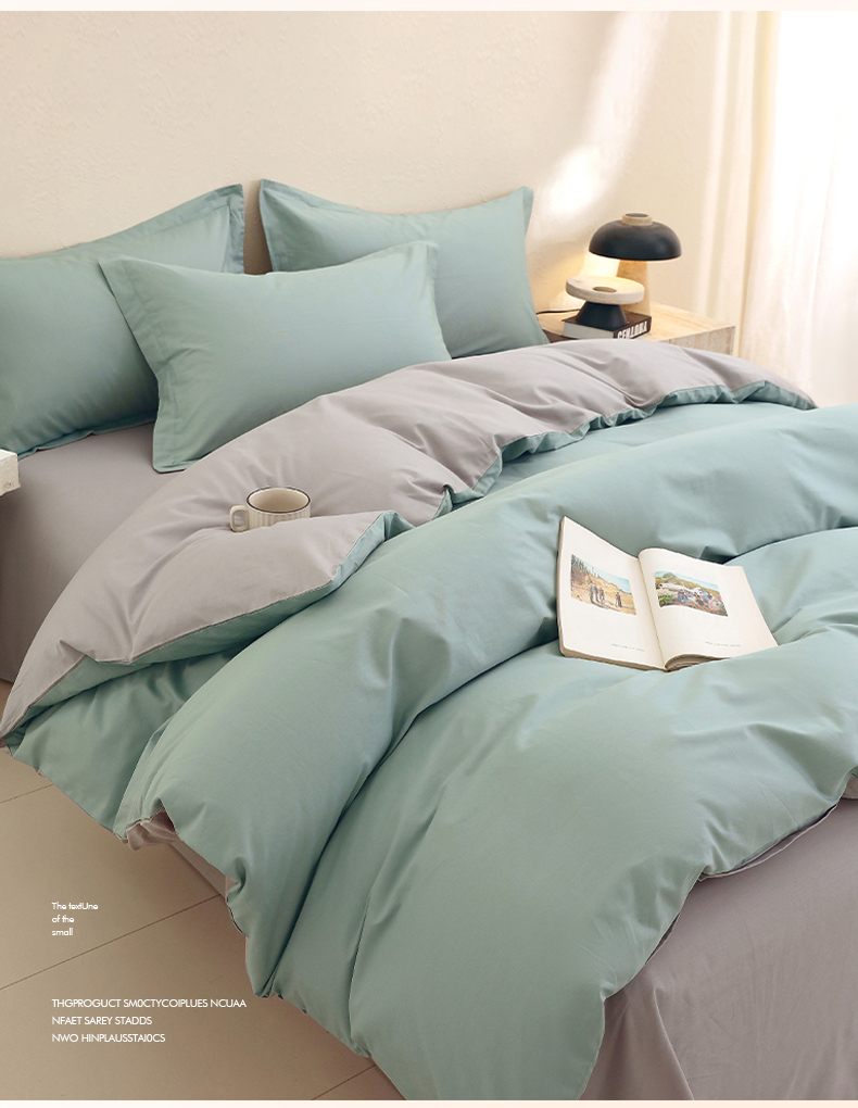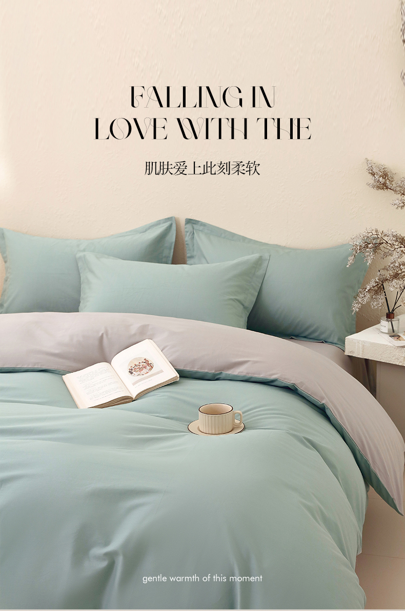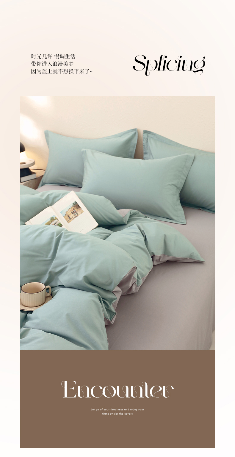 当前位置: 91家纺网 > 商品网购 > 床品套件 > 四件套 > 全棉普通四件套 > 小懒猪 2026新款13372A类双拼纯色全棉纯棉四件套 烟波绿-椰子灰