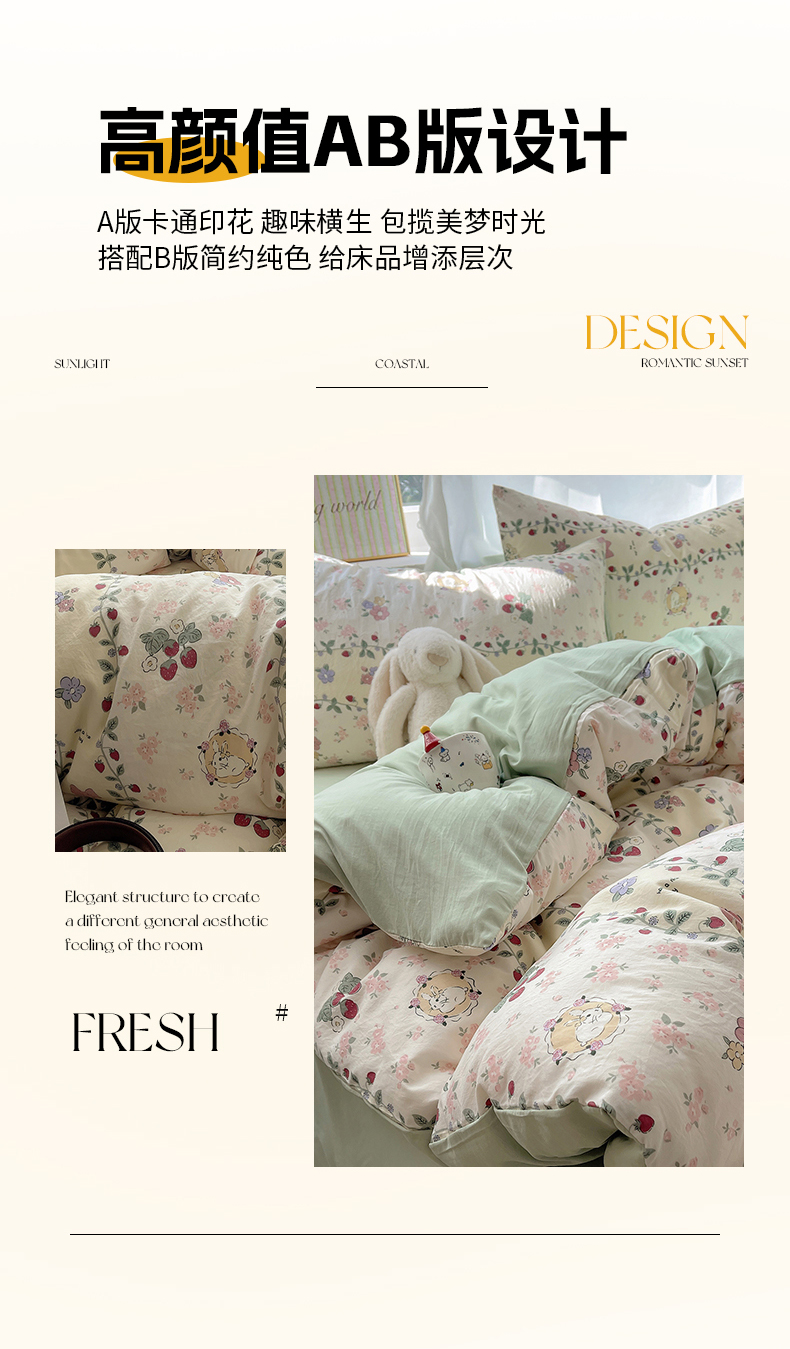 (总)沐芷 2026 A类105g水洗棉四件套超柔手感床上宿舍三件套床单被套