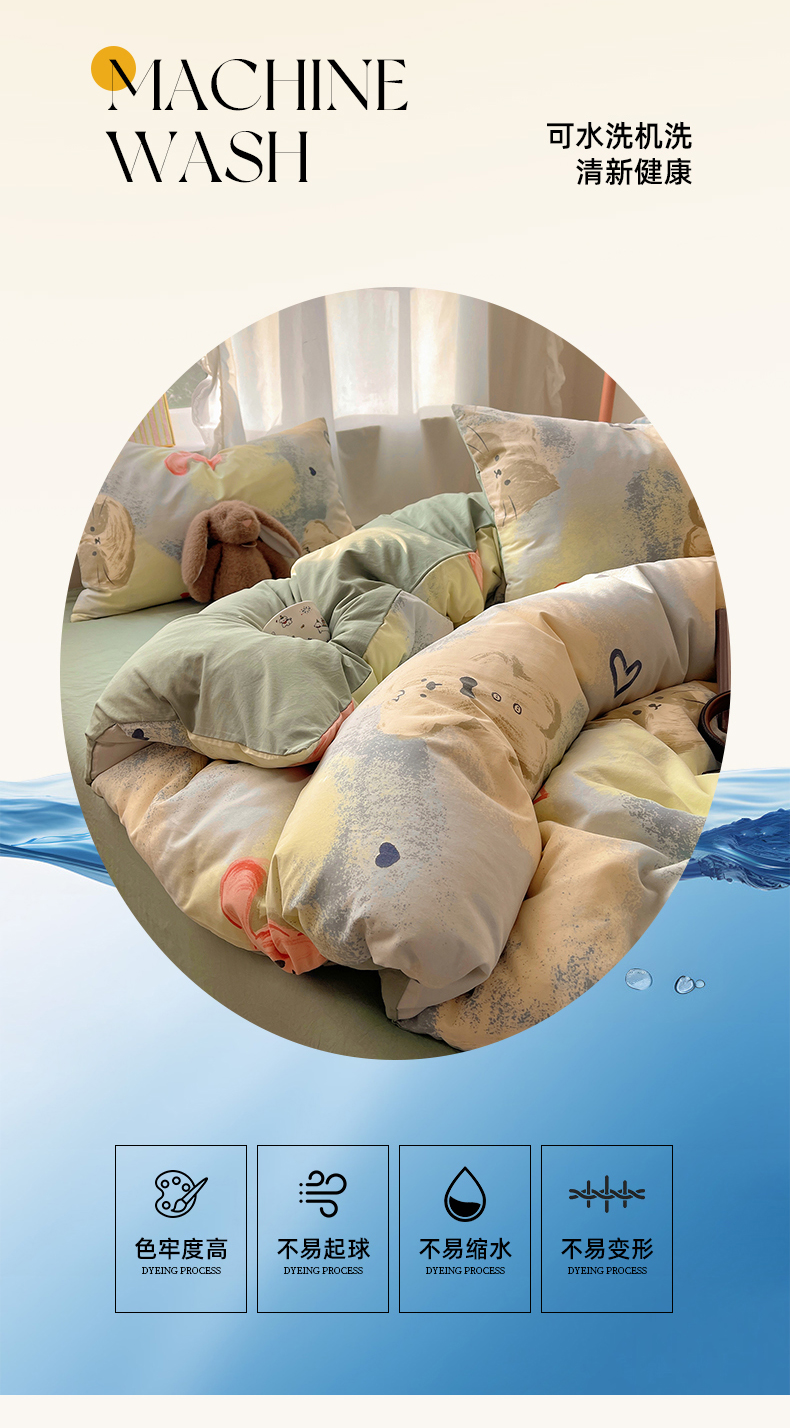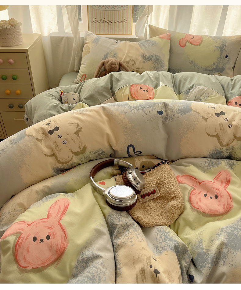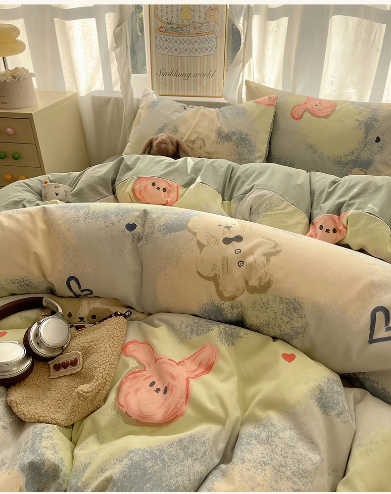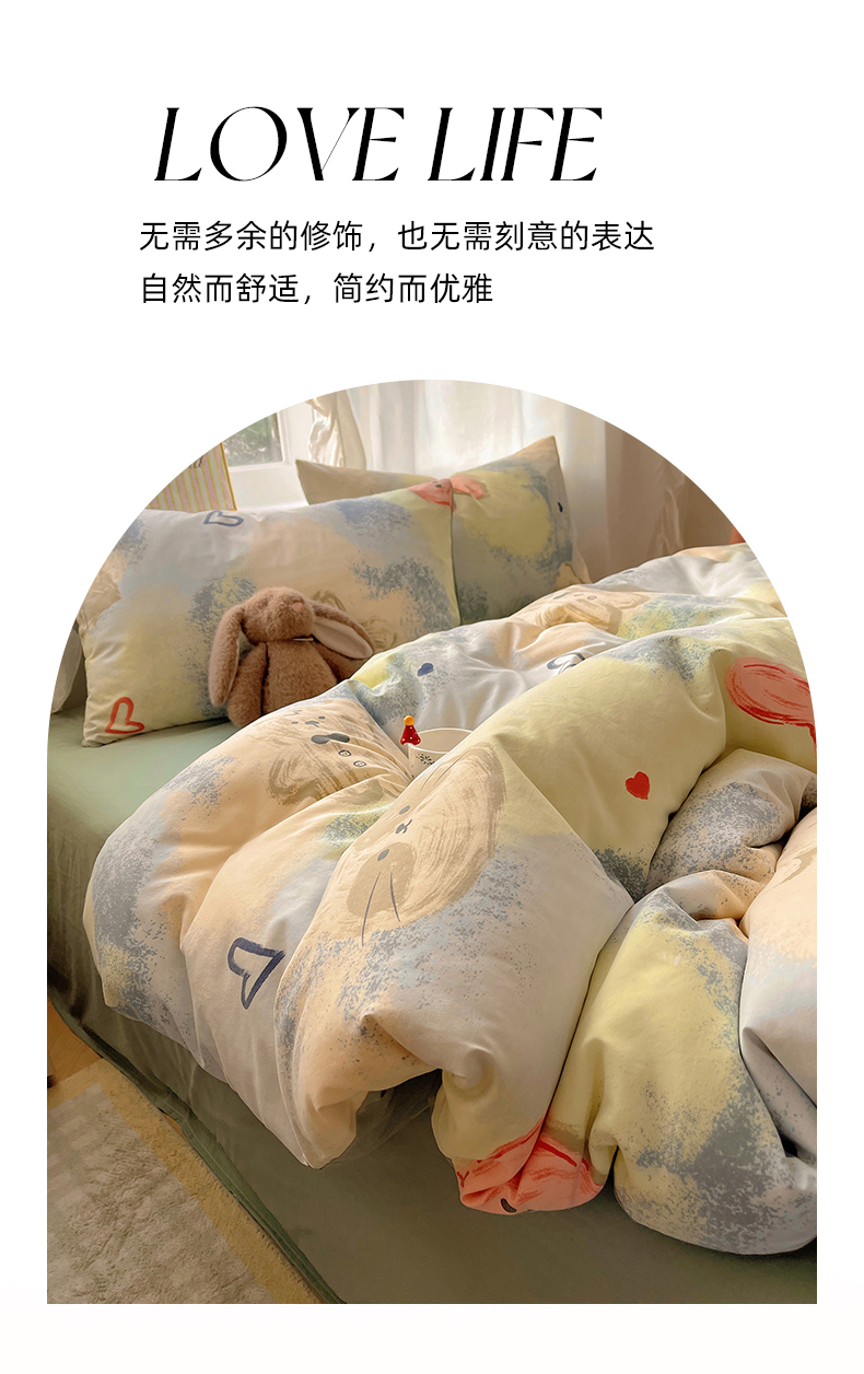 当前位置: 91家纺网 > 商品网购 > 床品套件 > 四件套 > 水洗棉四件套 > 沐芷 2026 A类105g水洗棉四件套超柔手感床上宿舍三件套床单被套 晕染爱心