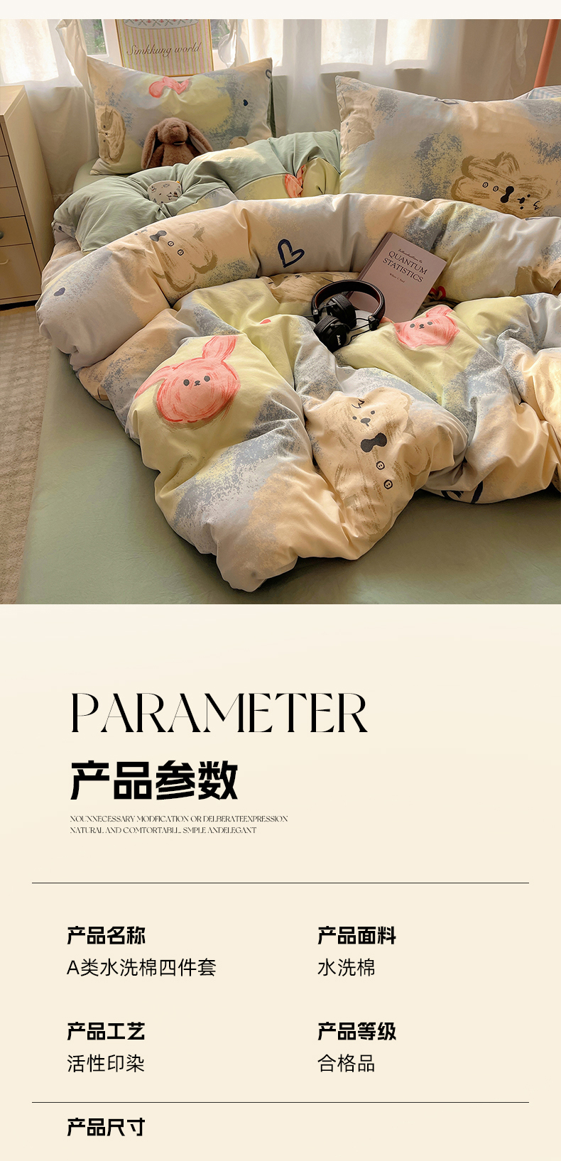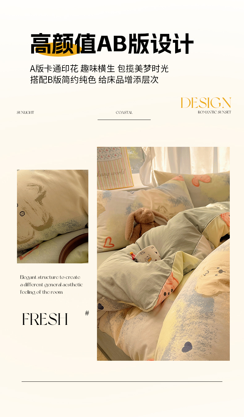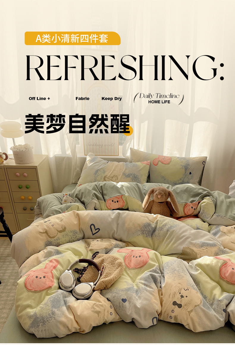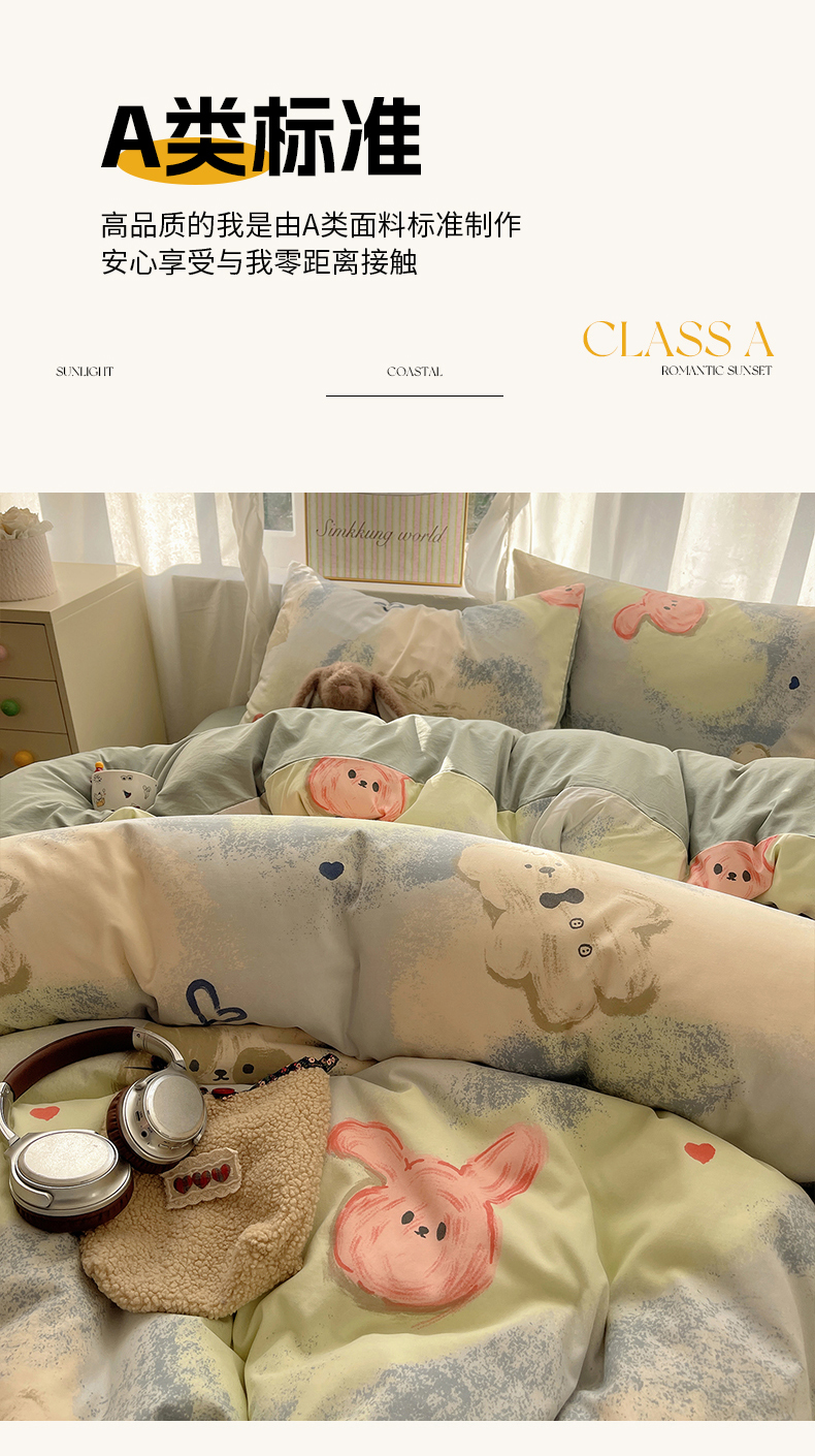 当前位置: 91家纺网 > 商品网购 > 床品套件 > 四件套 > 水洗棉四件套 > 沐芷 2026 A类105g水洗棉四件套超柔手感床上宿舍三件套床单被套 晕染爱心