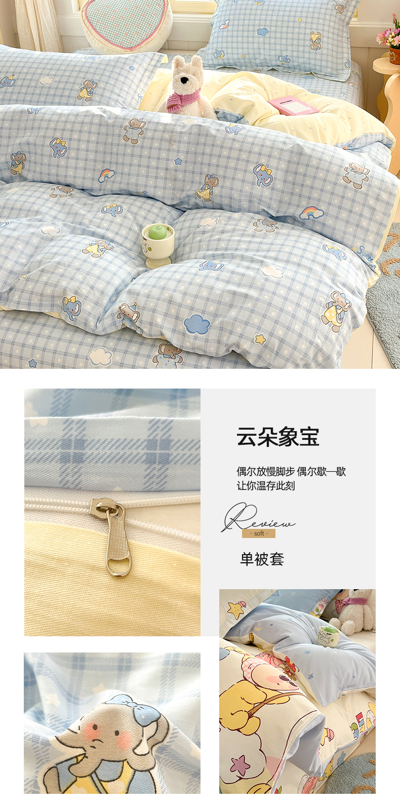 • 91家纺网 家纺一手货源 找家纺 莱通家纺 2026春夏新款全棉12868印花四件套单品系列-单被套 睡梦熊