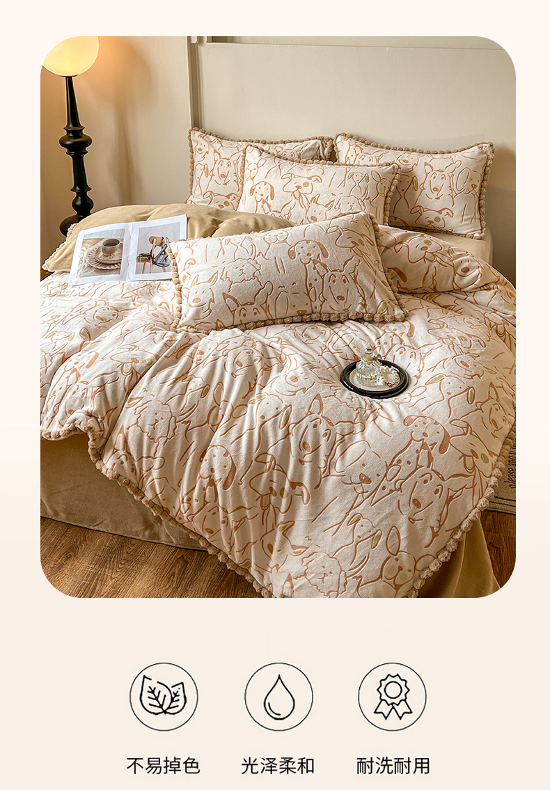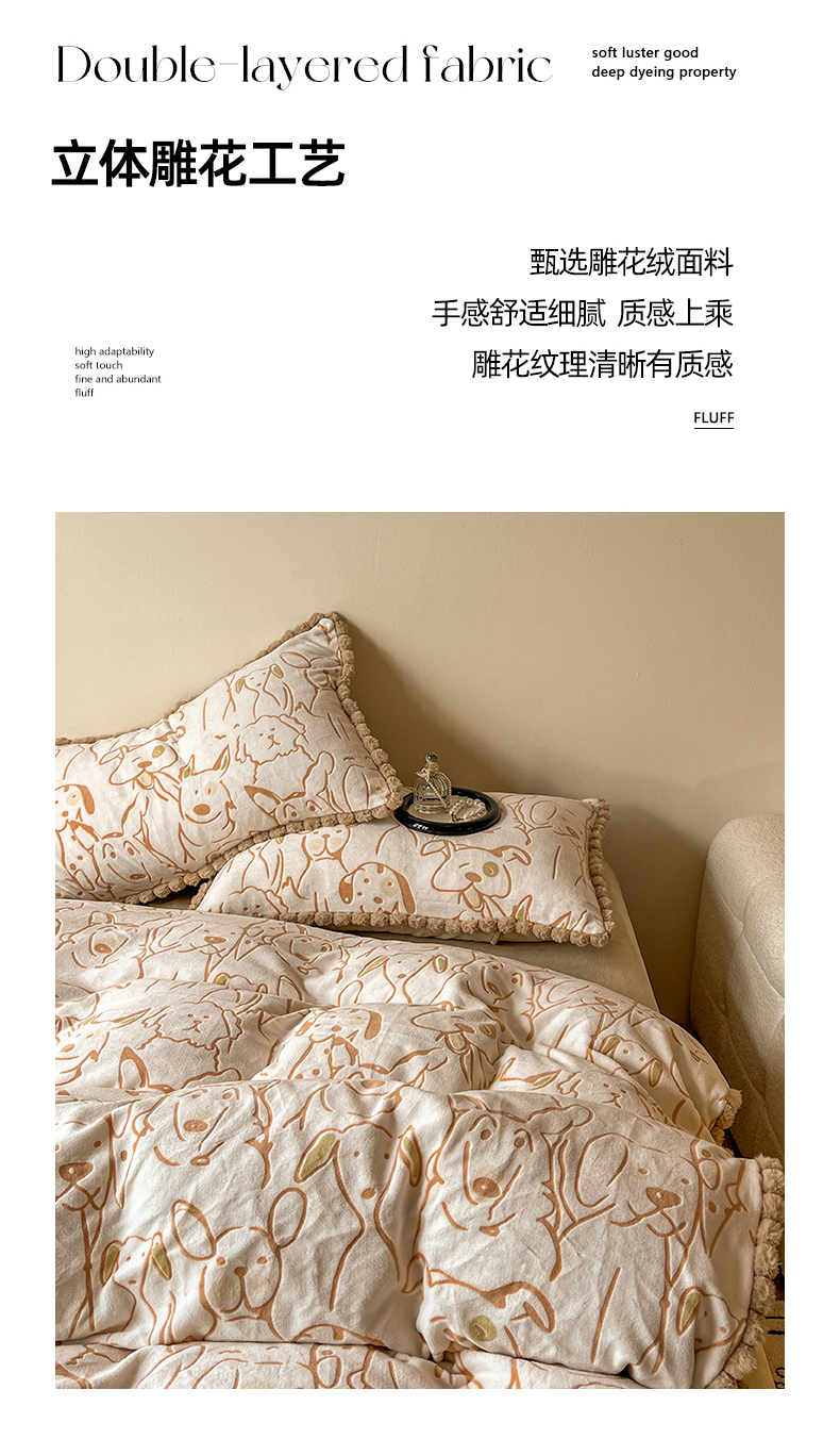 当前位置: 91家纺网 > 商品网购 > 床品套件 > 四件套 > 雕花绒四件套 > 梵克保罗 2025新款立体雕花绒球球四件套(提供买家秀) 狗狗乐园