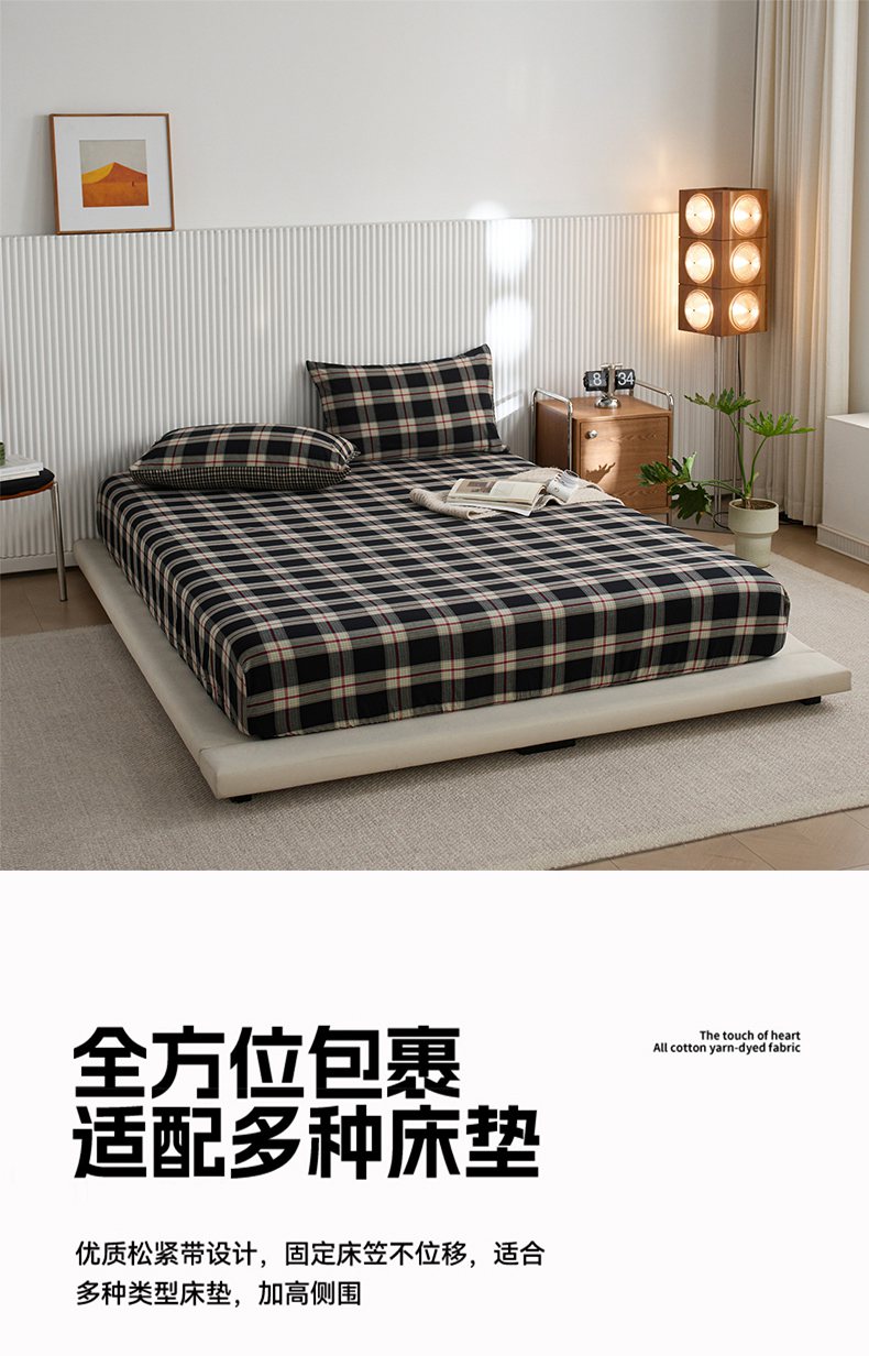 启程家纺 2026新款纯棉水洗棉复古大格系列多规格纯棉床笠 组合