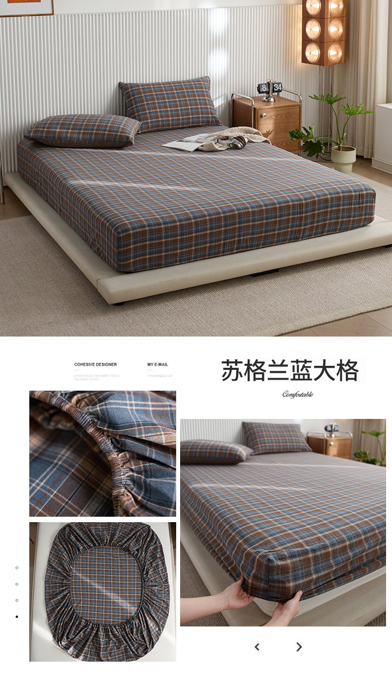 商品名称:启程家纺 2026新款纯棉水洗棉复古大格系列多规格纯棉床笠 组合