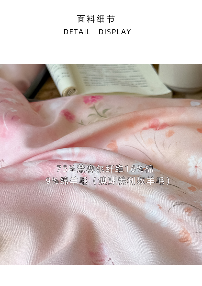 (总)Mr.pig猪先生水洗棉 2025新款羊毛印花工艺宽边四件套,锦鲤栖溪-宽边,棠鹊鸣春-宽边