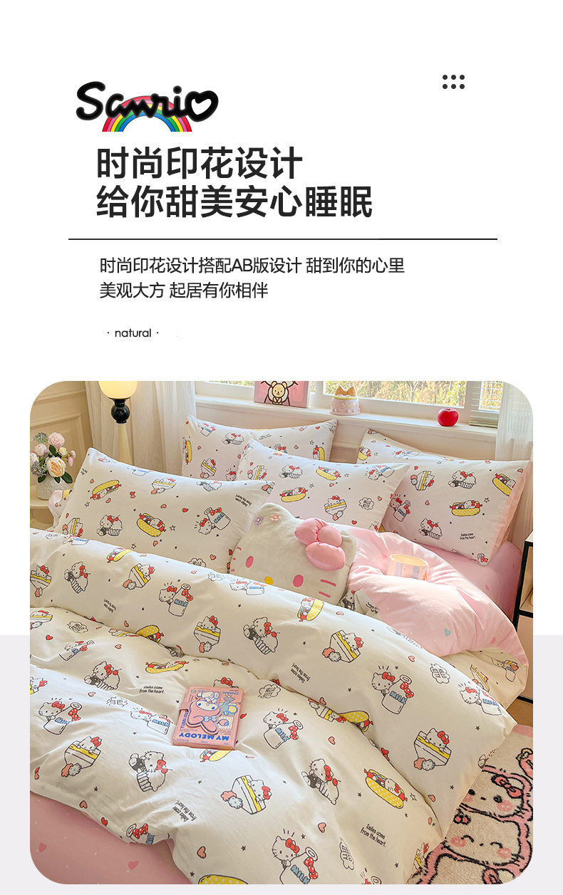 当前位置: 91家纺网 > 商品网购 > 床品套件 > 四件套 > 全棉普通四件套 > 博雅 2026新款三丽鸥全棉纯棉小版印花四件套 甜品kt