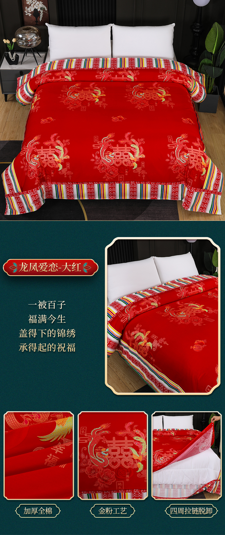 (总)浩情国际婚庆供货中心 2026新款高端婚庆经典结婚被单龙凤百子被套老粗布100%全棉纯棉大红长期供货,百子百福-大红,百子百福-深绿,龙凤爱恋-大红,龙凤爱恋-深绿