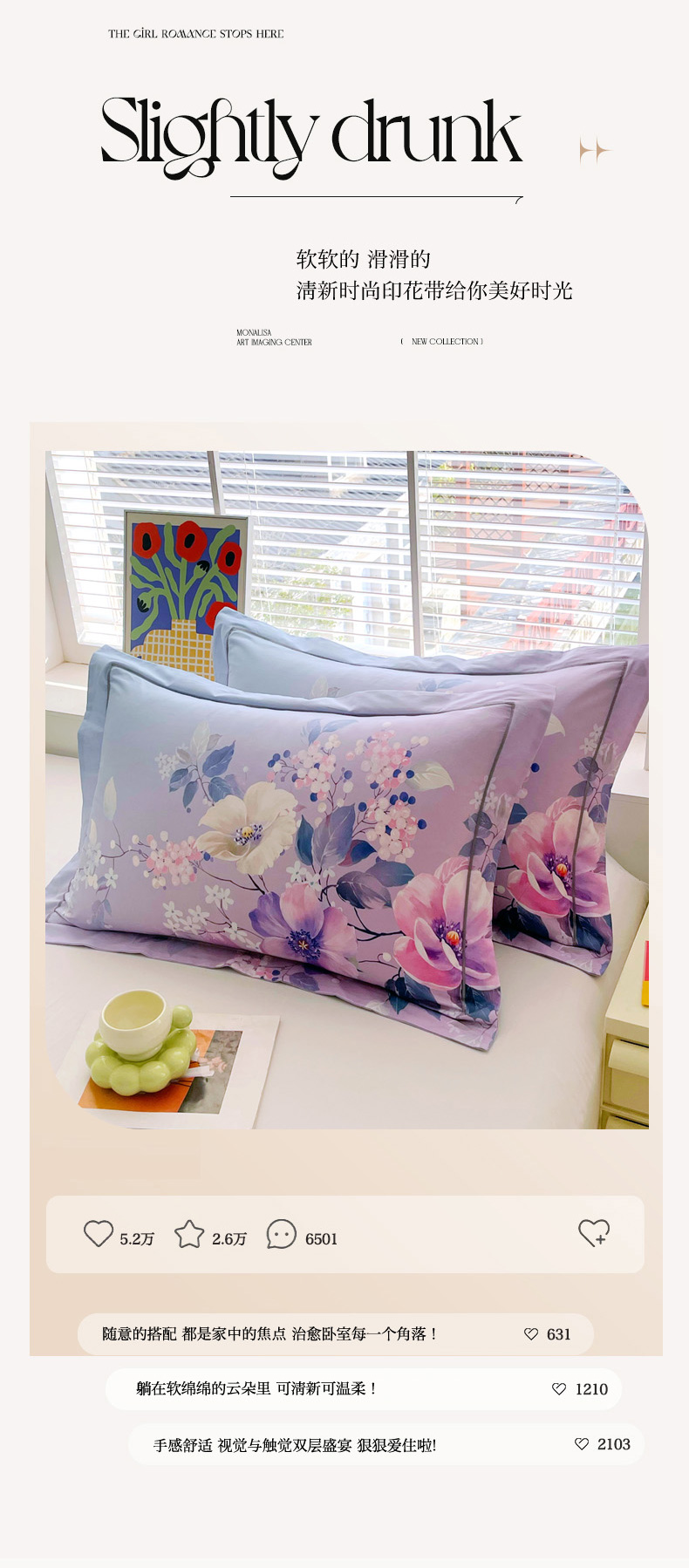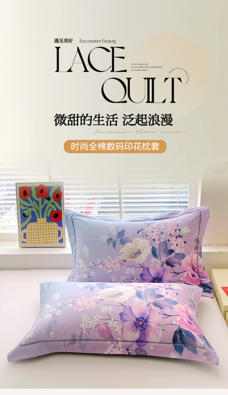 商品名称:焱博家纺 2026新款13376全棉纯棉大版数码印花单枕套枕套单件 若影花梦