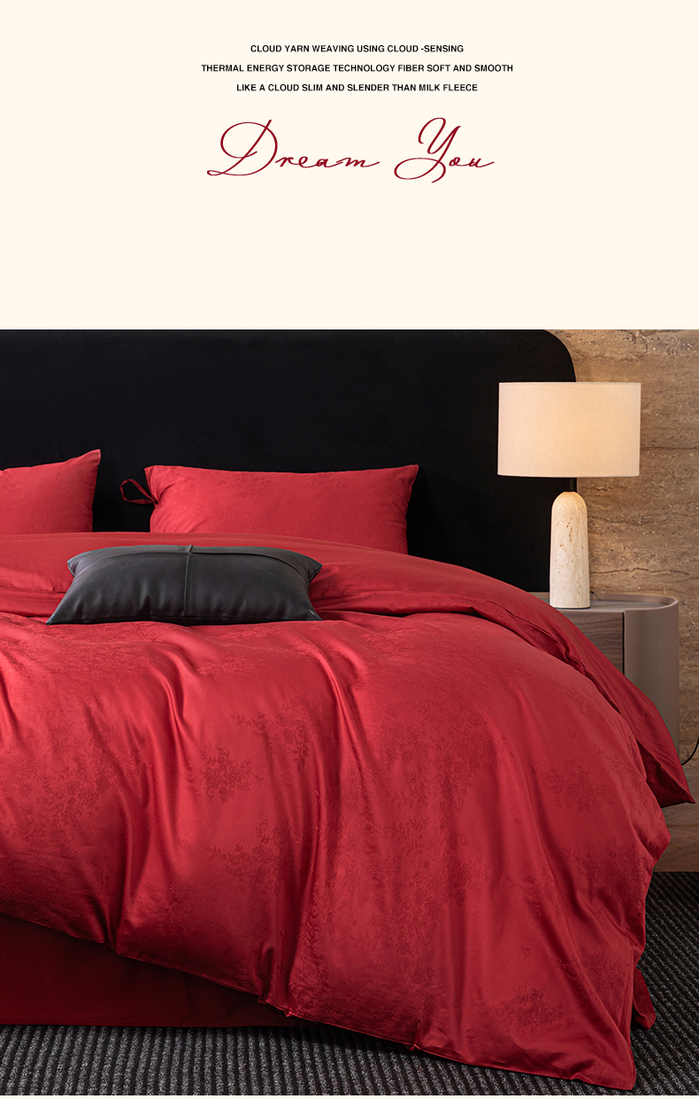 (总)极简 2025新款秋冬款100S长绒棉精美提花系列四件套-红薇绣梦,红薇绣梦
