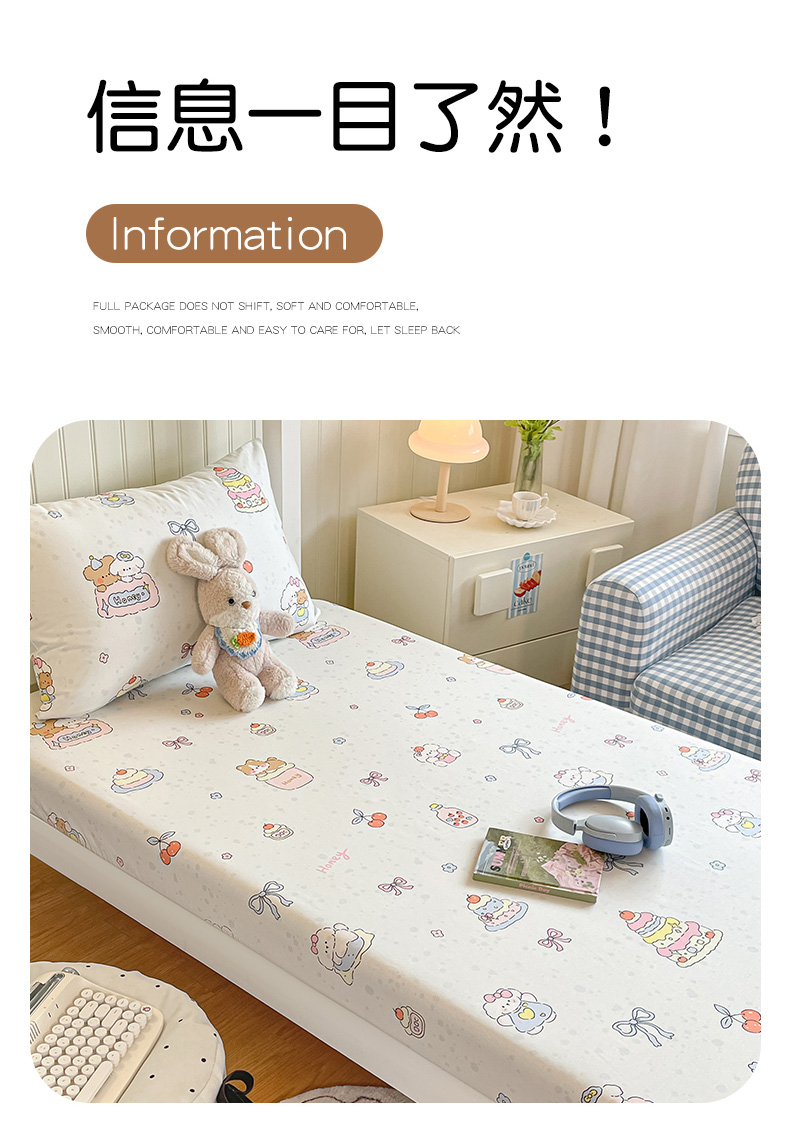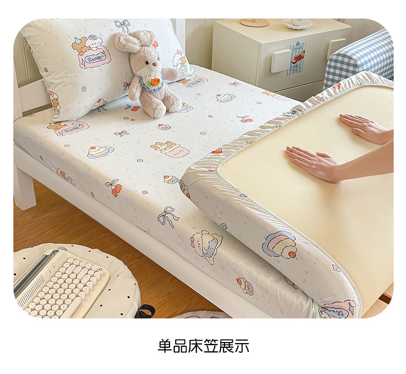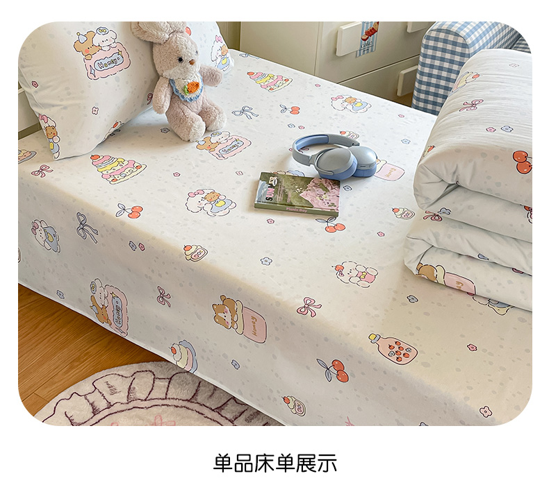 • 91家纺网 家纺一手货源 找家纺 寻米 2026新款春夏13070印花三件套单品系列-单床笠 小熊饼干