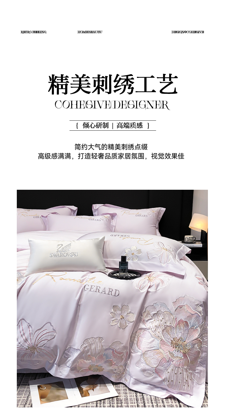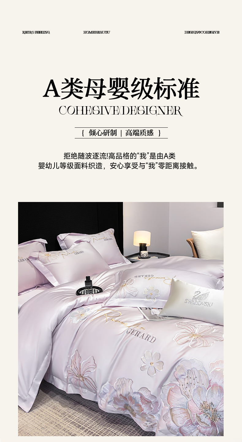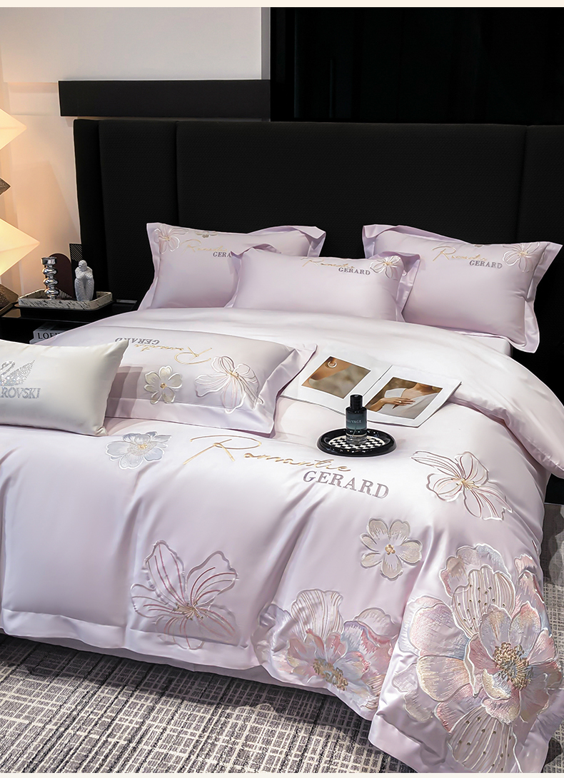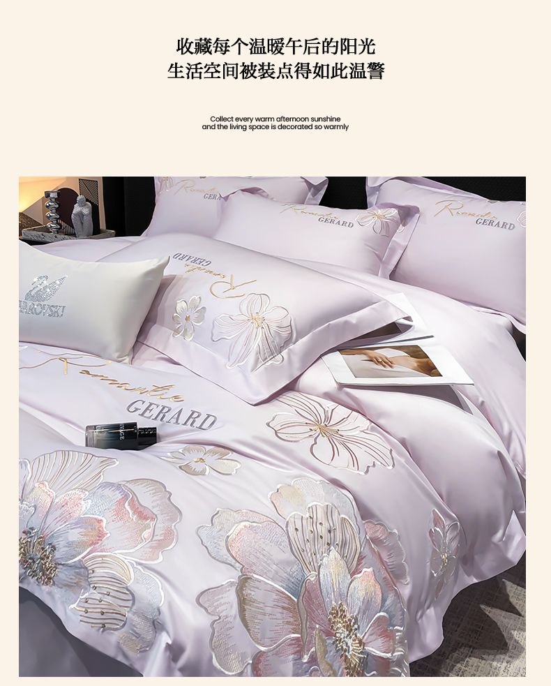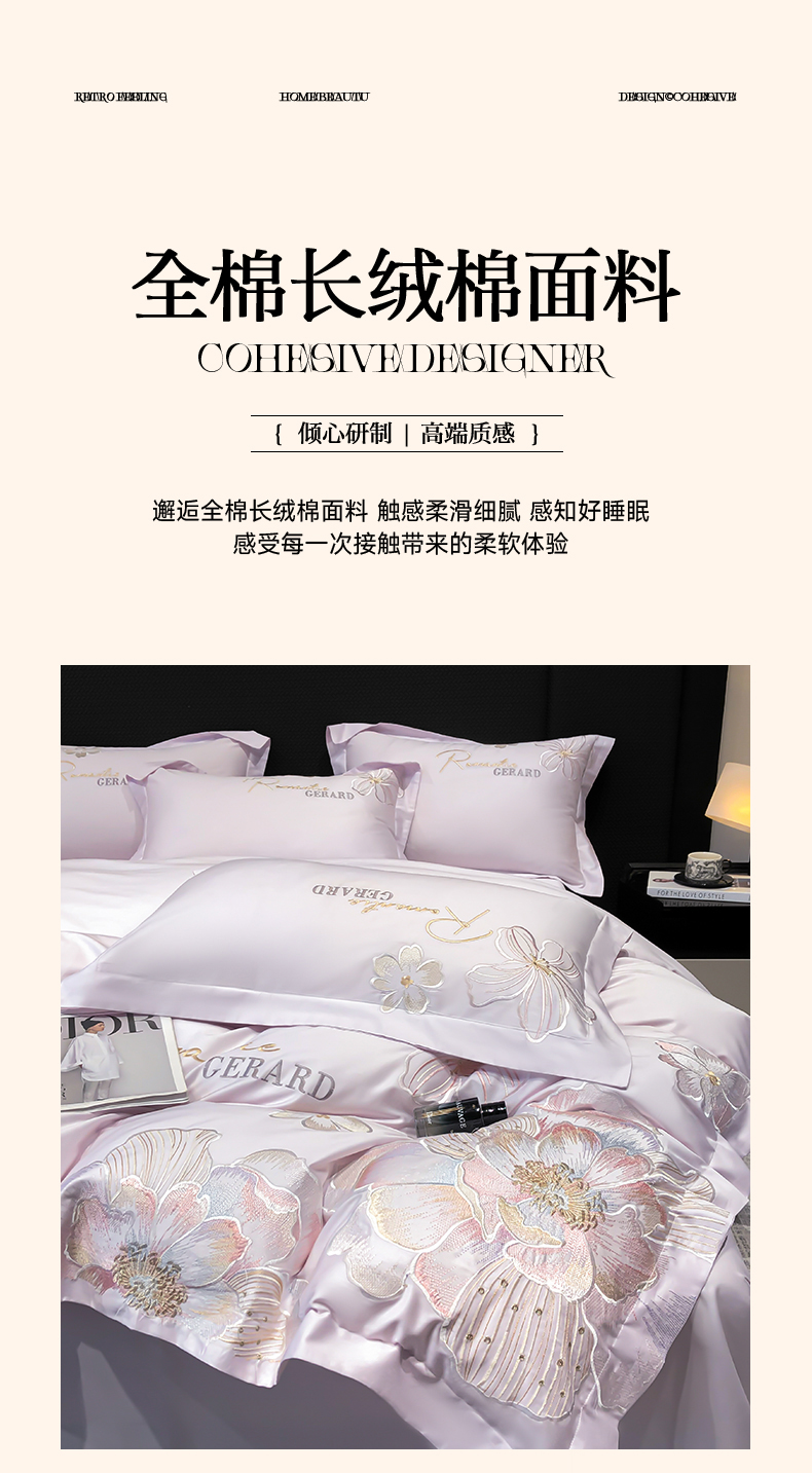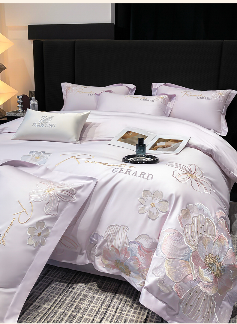 当前位置: 91家纺网 > 商品网购 > 床品套件 > 四件套 > 长绒棉四件套 > 木子家纺 2026新款A类50S贡缎长绒棉纯棉四件套-花漾 花漾-香芋紫-A类贡缎长绒棉