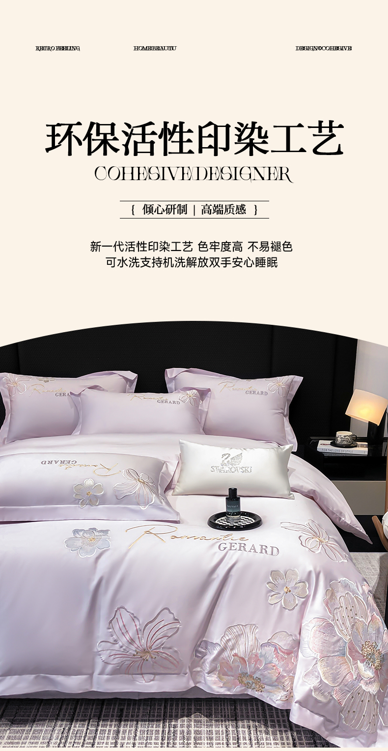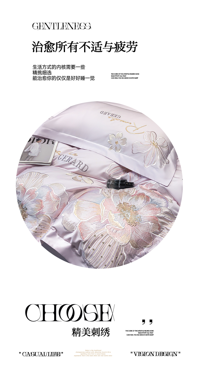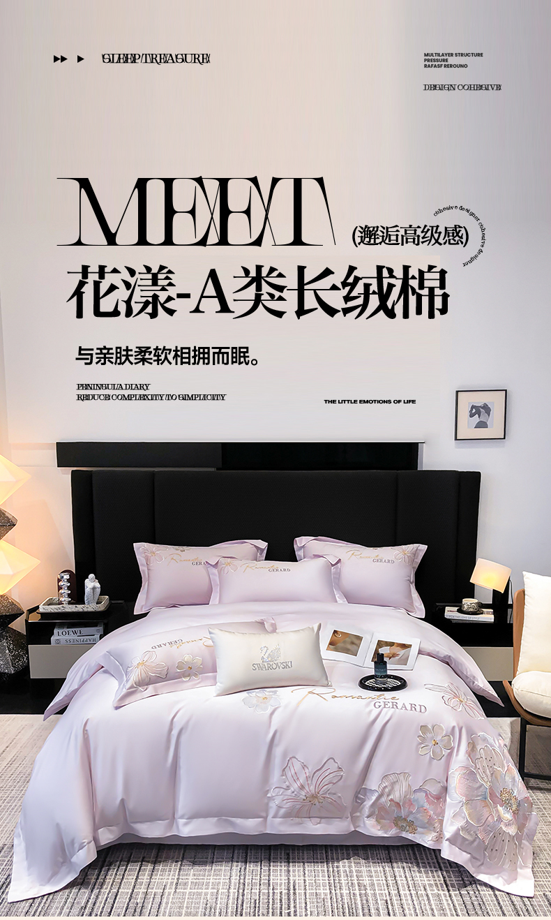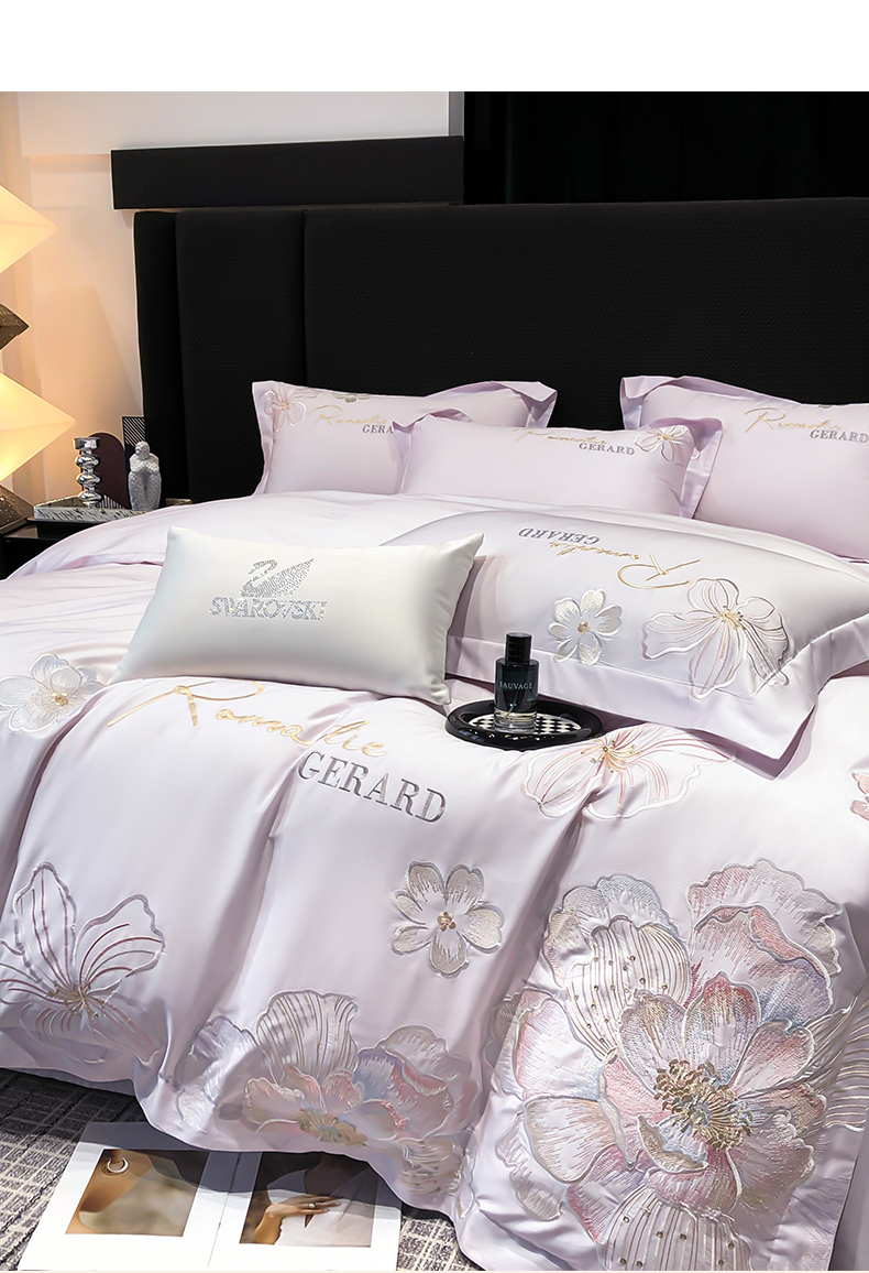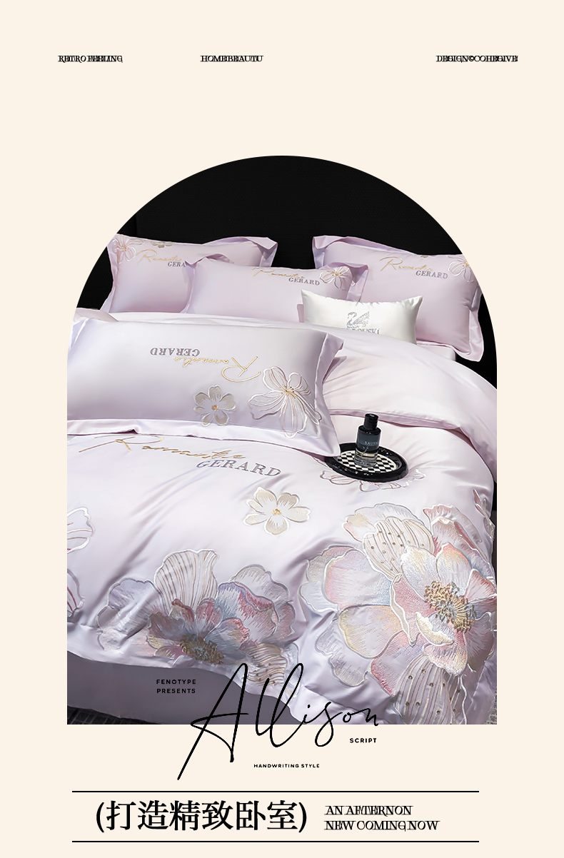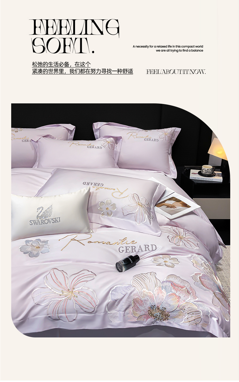 当前位置: 91家纺网 > 商品网购 > 床品套件 > 四件套 > 长绒棉四件套 > 木子家纺 2026新款A类50S贡缎长绒棉纯棉四件套-花漾 花漾-香芋紫-A类贡缎长绒棉