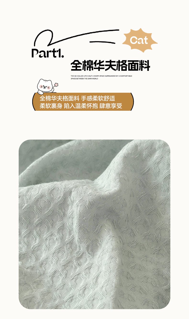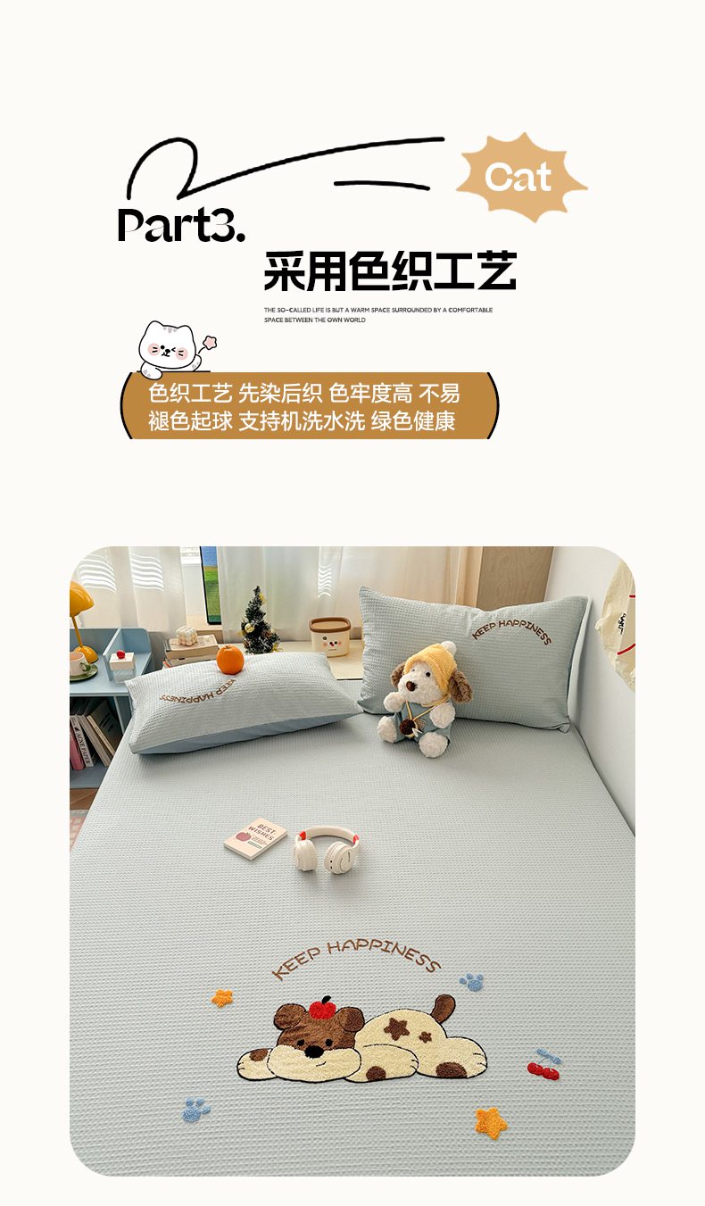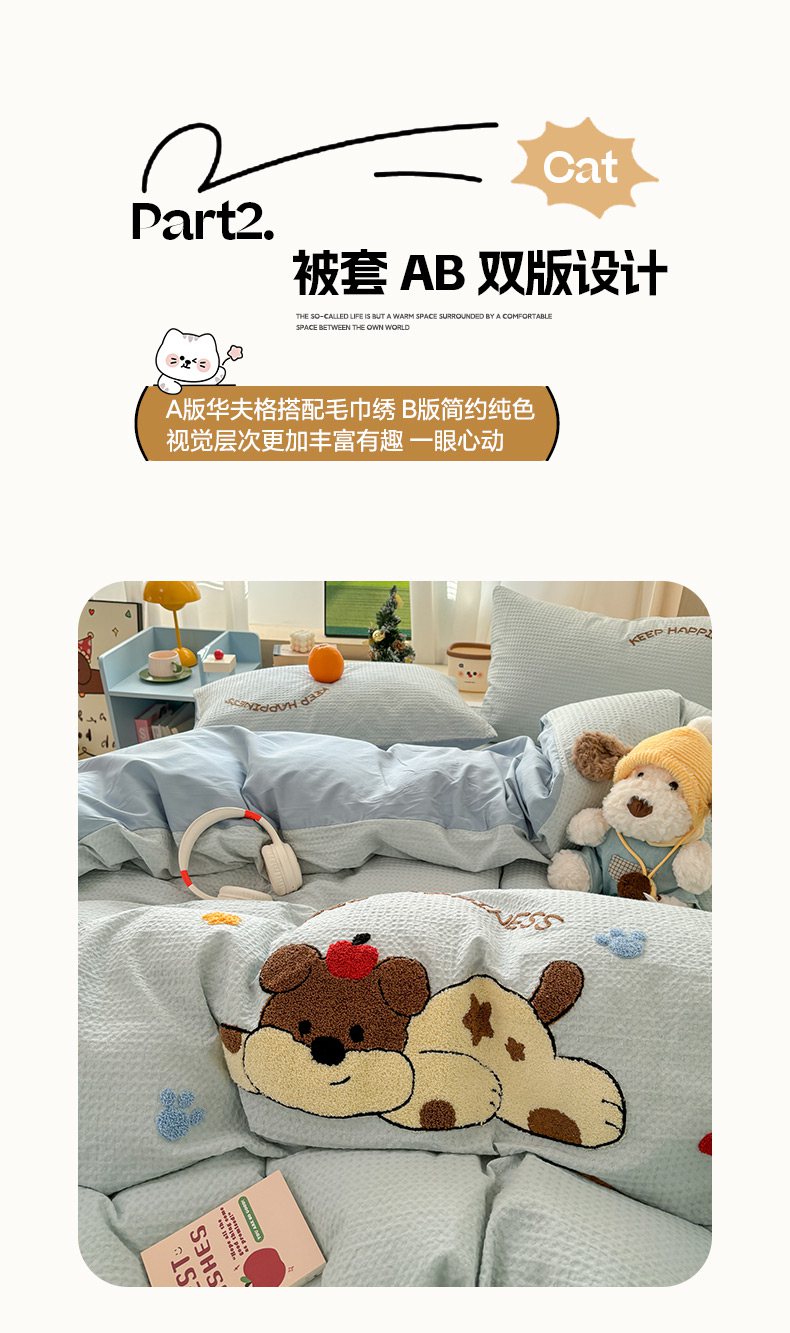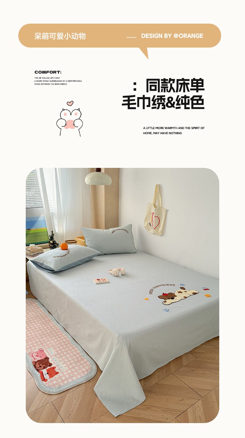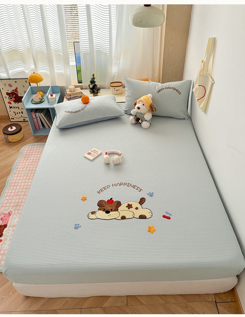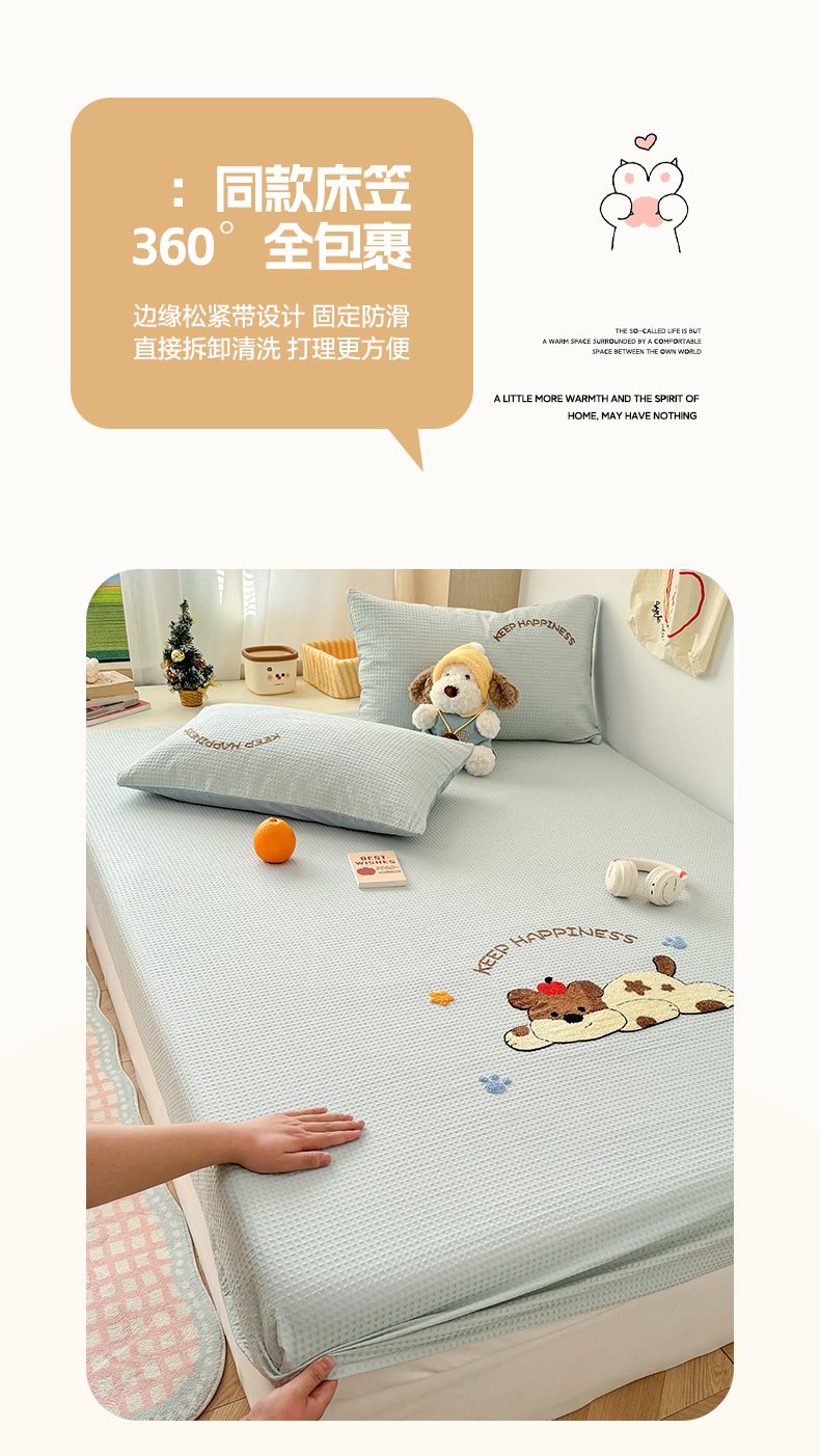 当前位置: 91家纺网 > 商品网购 > 床品套件 > 四件套 > 全棉普通四件套 > 雅居纺家纺 2026新款全棉华夫格毛巾绣单品系列 蓝色趴趴狗