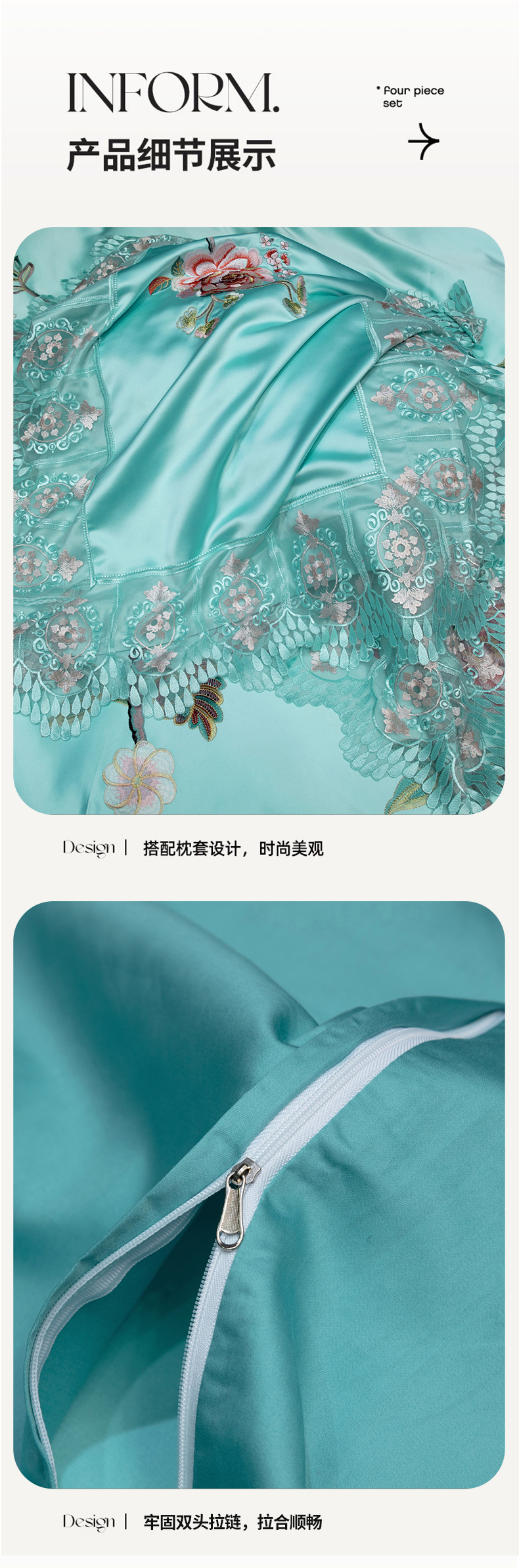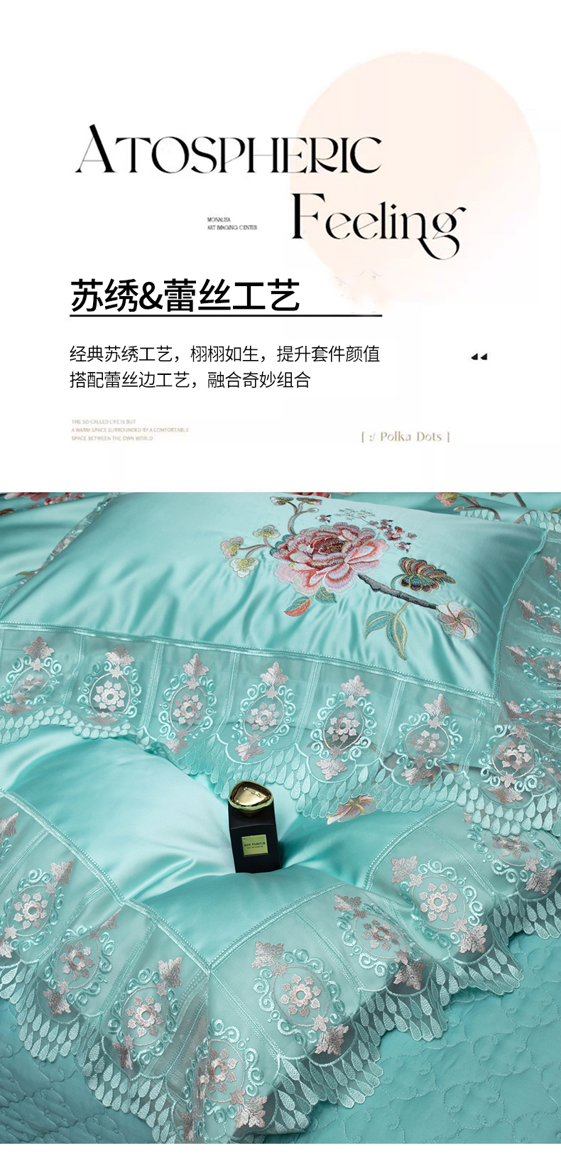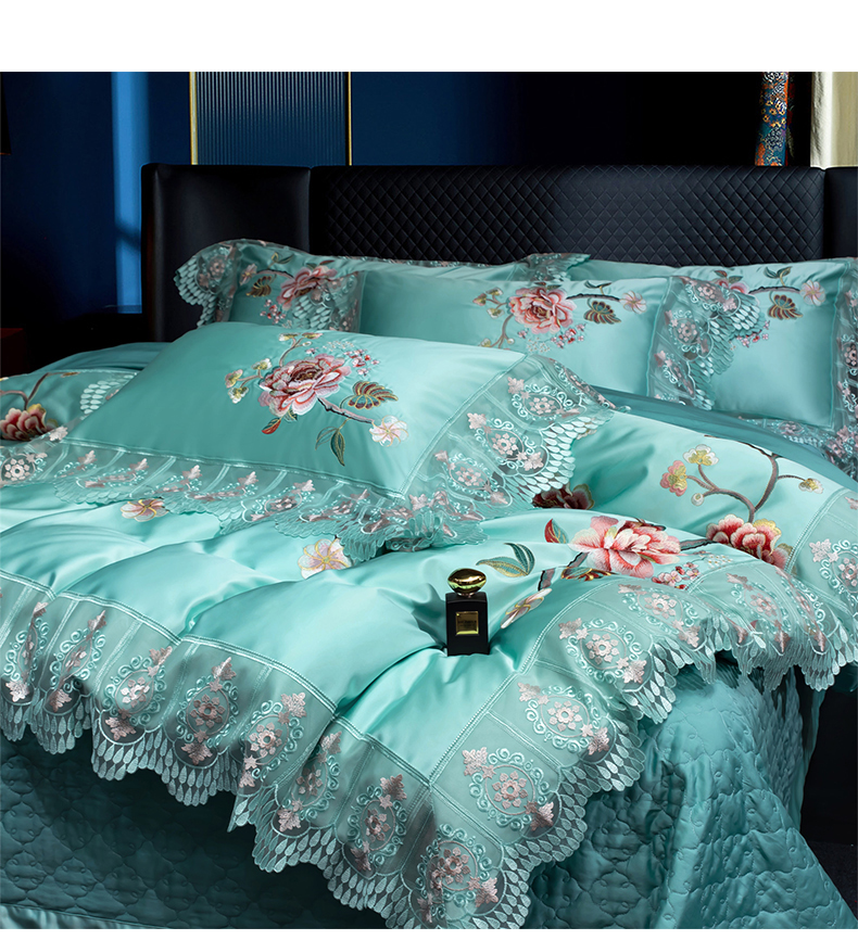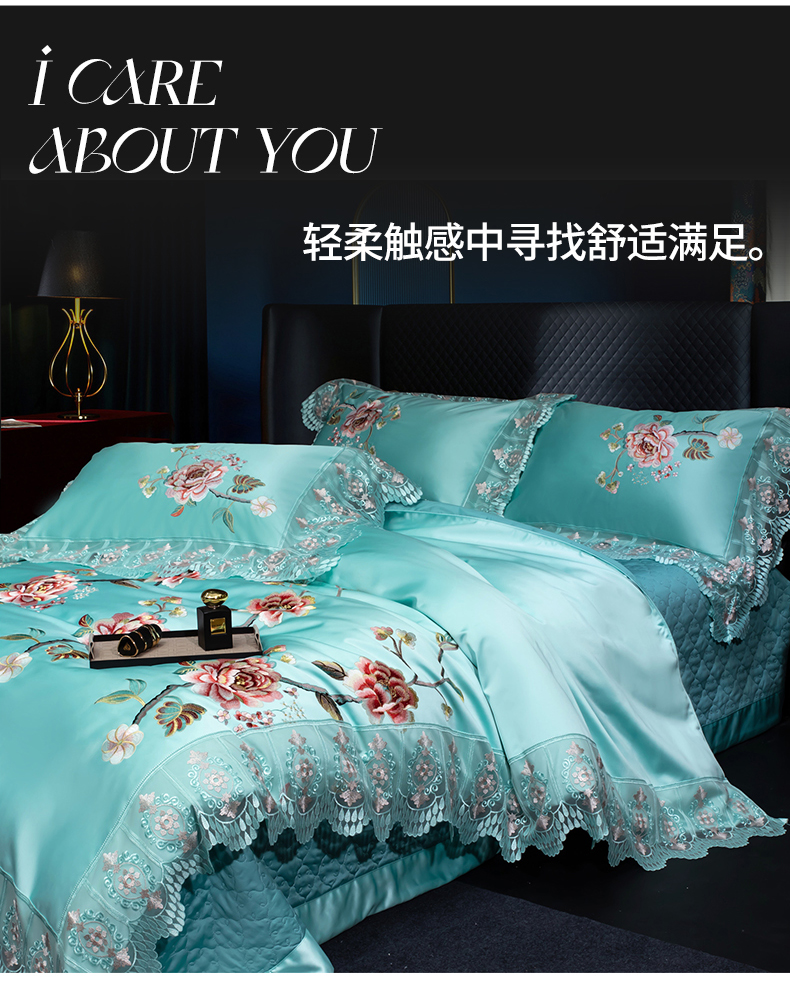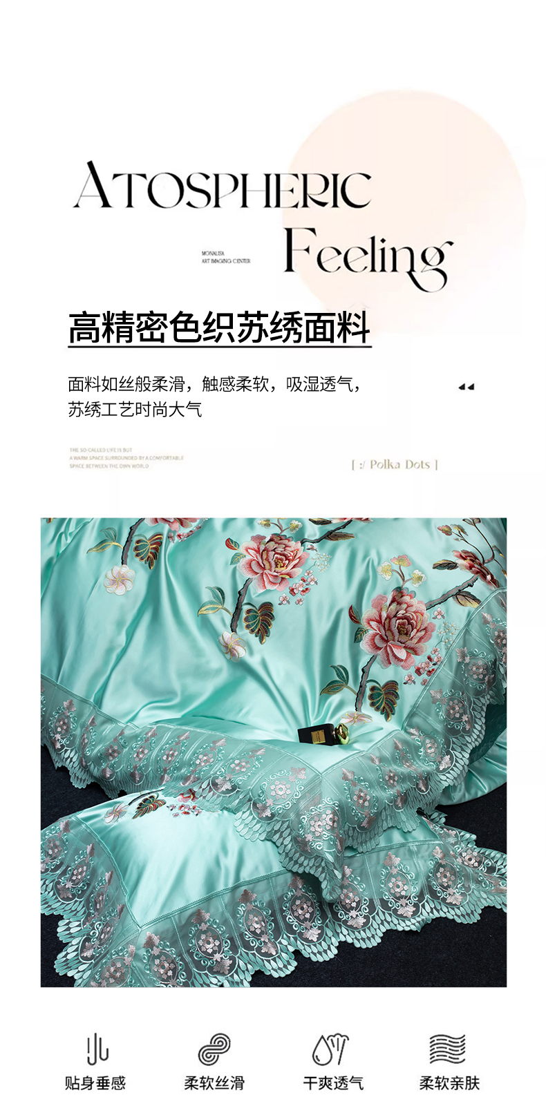 OL家纺 2026新款高精密苏绣蕾丝四件套 金玉满堂-天兰