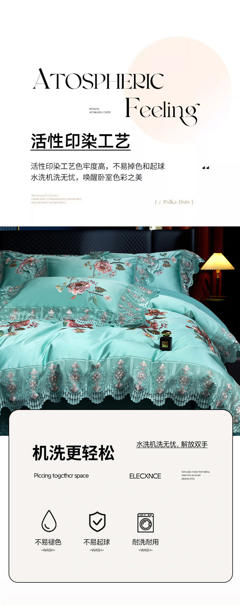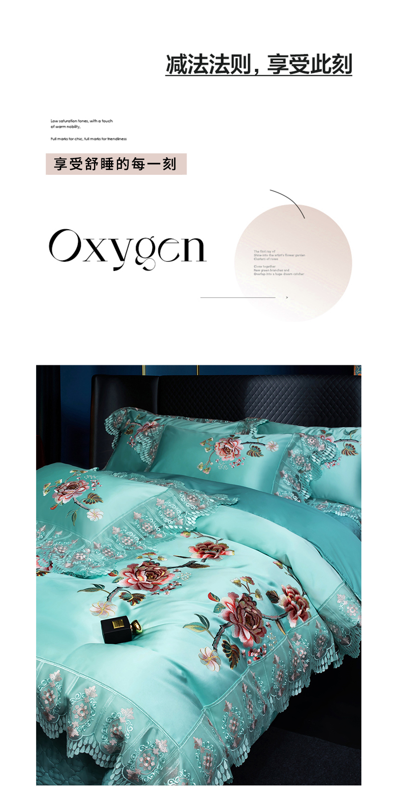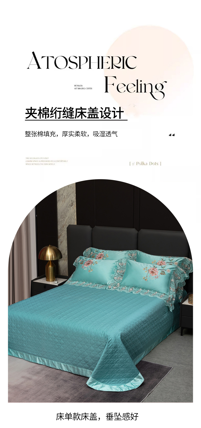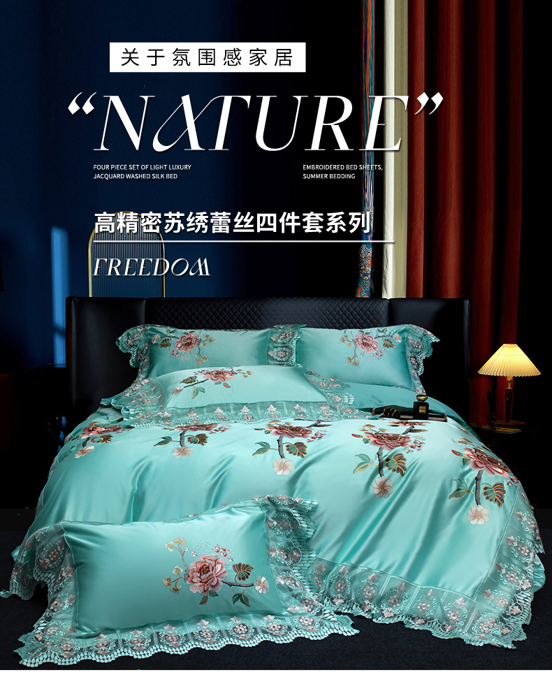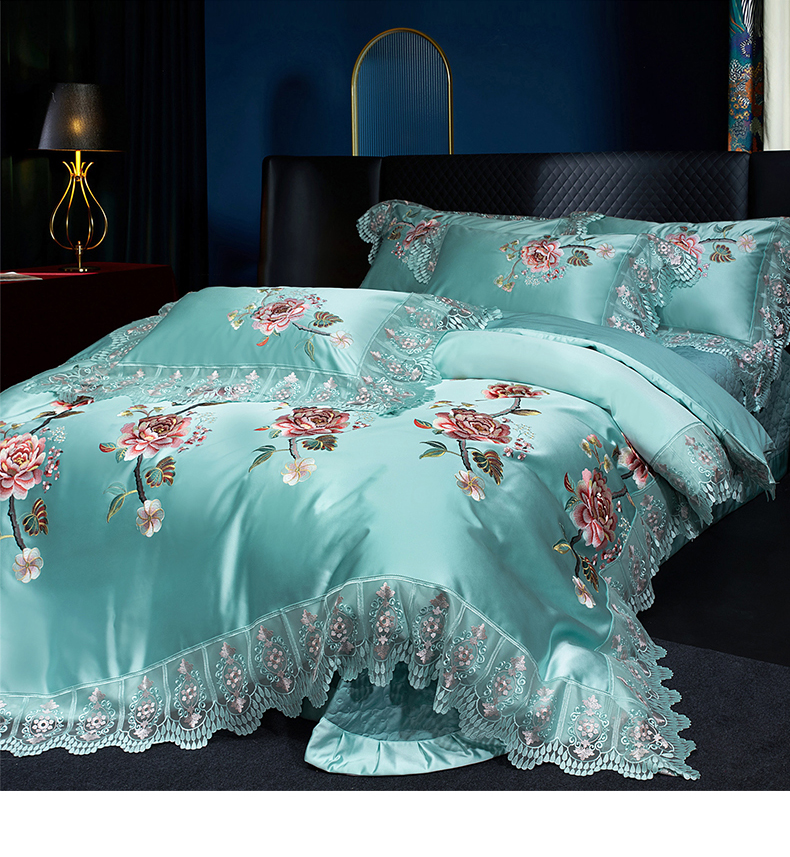 OL家纺 2026新款高精密苏绣蕾丝四件套 金玉满堂-天兰