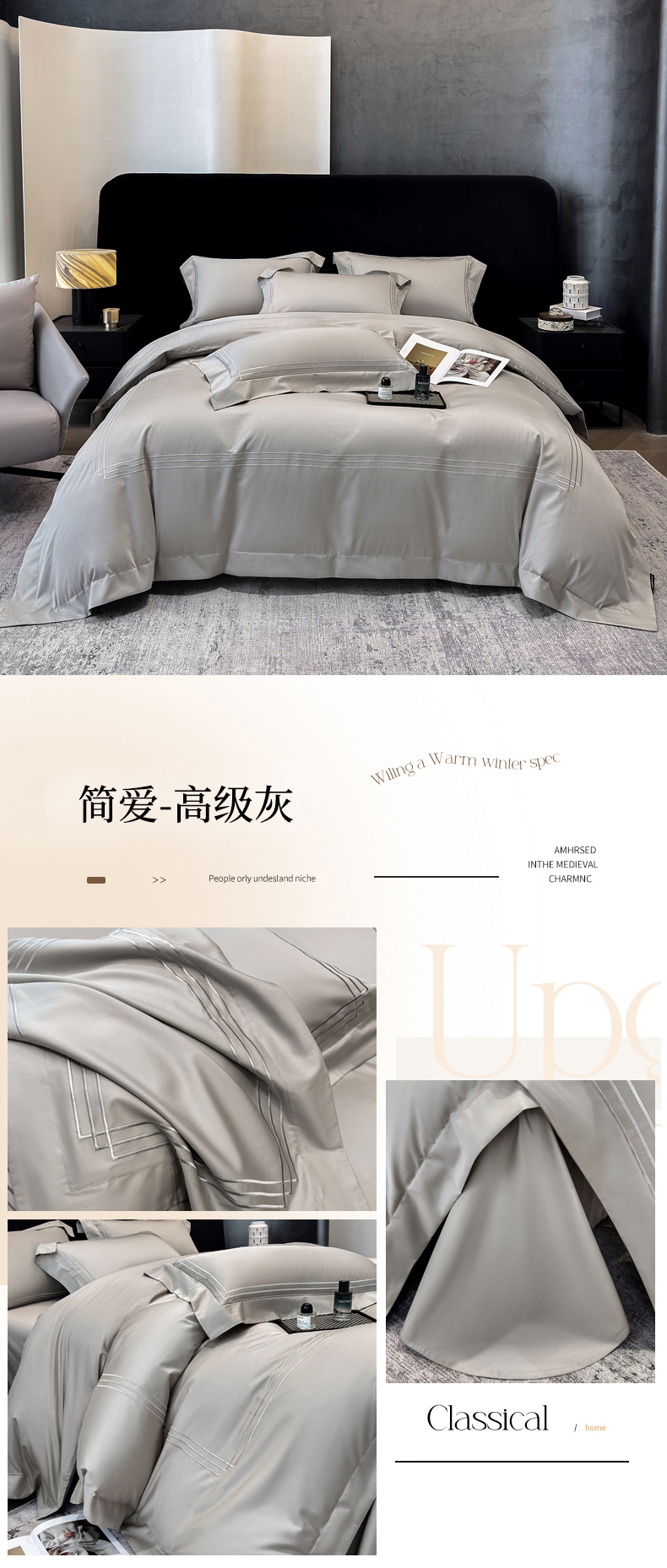 星蕴家纺 2026新款100s贡缎长绒棉四件套-简爱 简爱-高级灰