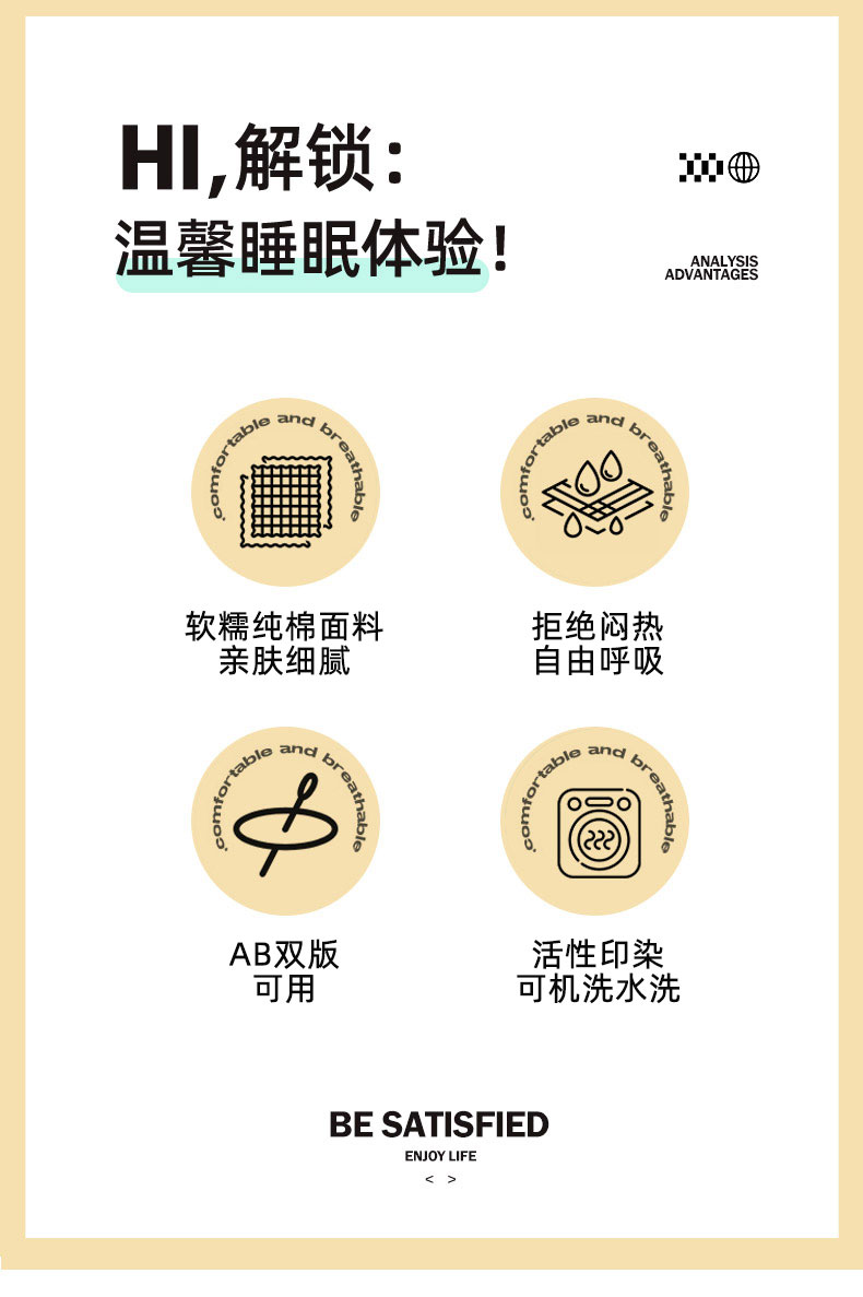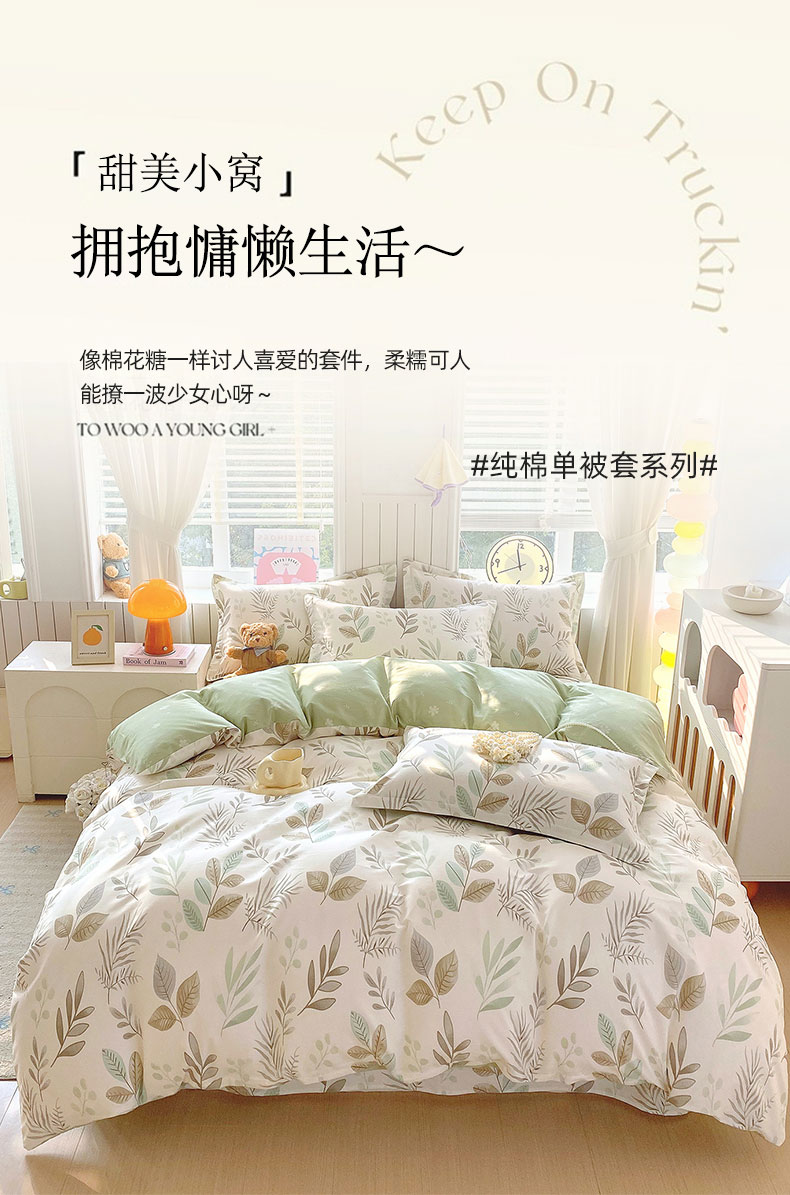 • 91家纺网 家纺一手货源 找家纺 (总)金丝兔 2026新款ins新疆全棉印花小清新纯棉单被套(提供买家秀和质检报告),叶语-绿,白山茶,春风里-紫,春野苍兰,布偶假期,粉蕊蝶,波点大象,格韵-灰,格子爱心,格子熊,哈基米,海盐兔,花漫歌,吉吉兔,萌宠乐园,慕荷,奶油波点,泡芙小花,浅格念,甜梦精灵-粉,甜梦精灵-蓝,条纹小狗,仙妮兔,星点漫语,熊猫鸭鸭,樱桃-粉,樱桃-蓝,栀子花语,紫苏,组合图