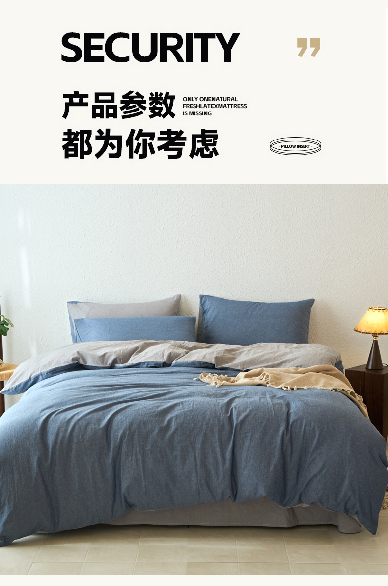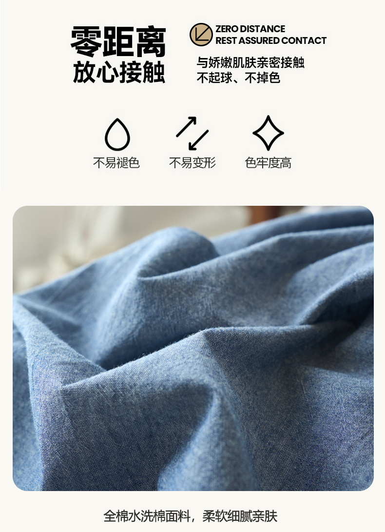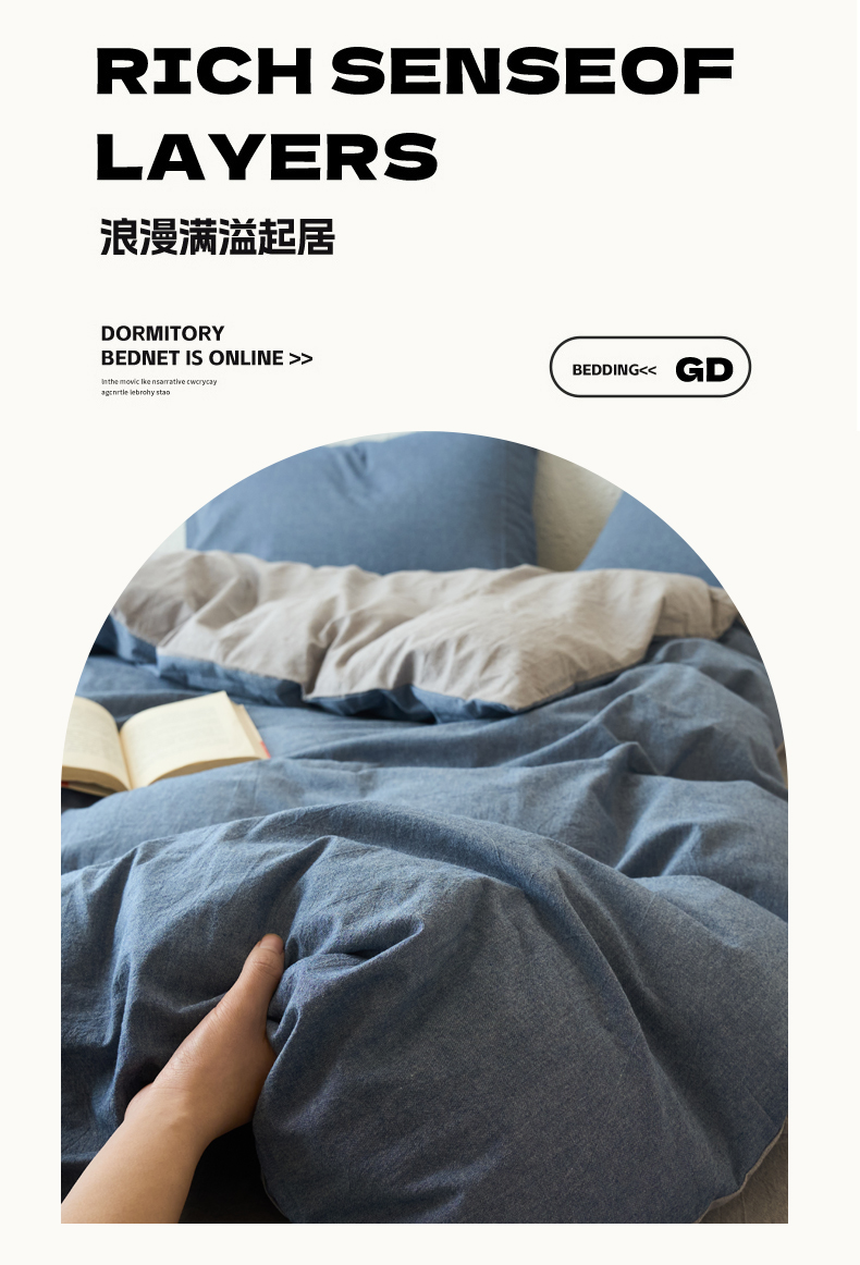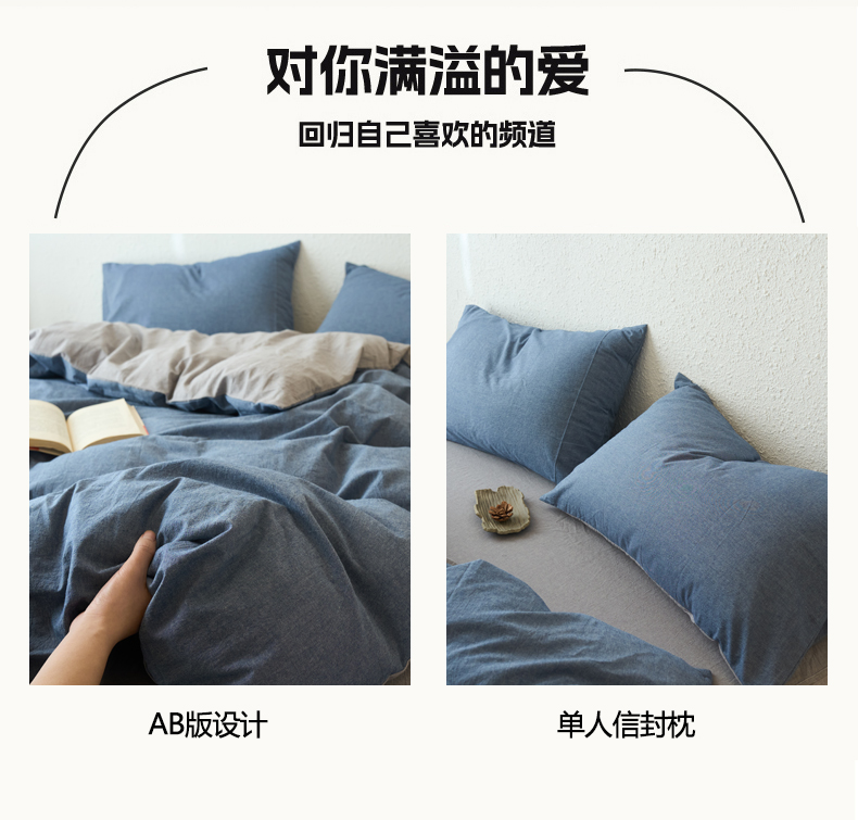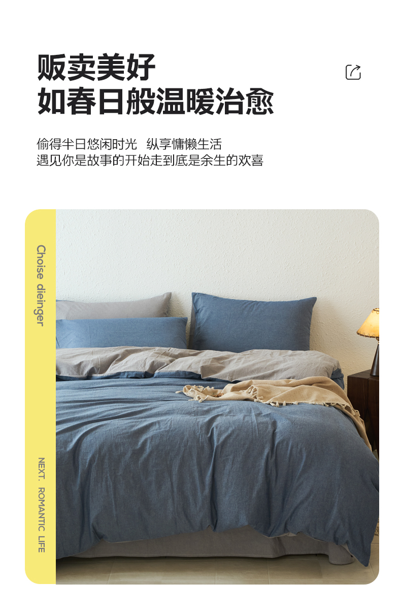 当前位置: 91家纺网 > 商品网购 > 床品套件 > 四件套 > 全棉普通四件套 > 兰紫橙家纺 2026新款A类色织纯色全棉水洗棉四件套 全棉水洗棉-牛仔蓝+浅灰