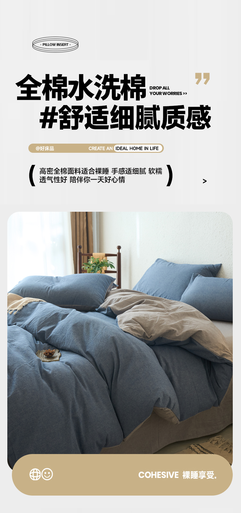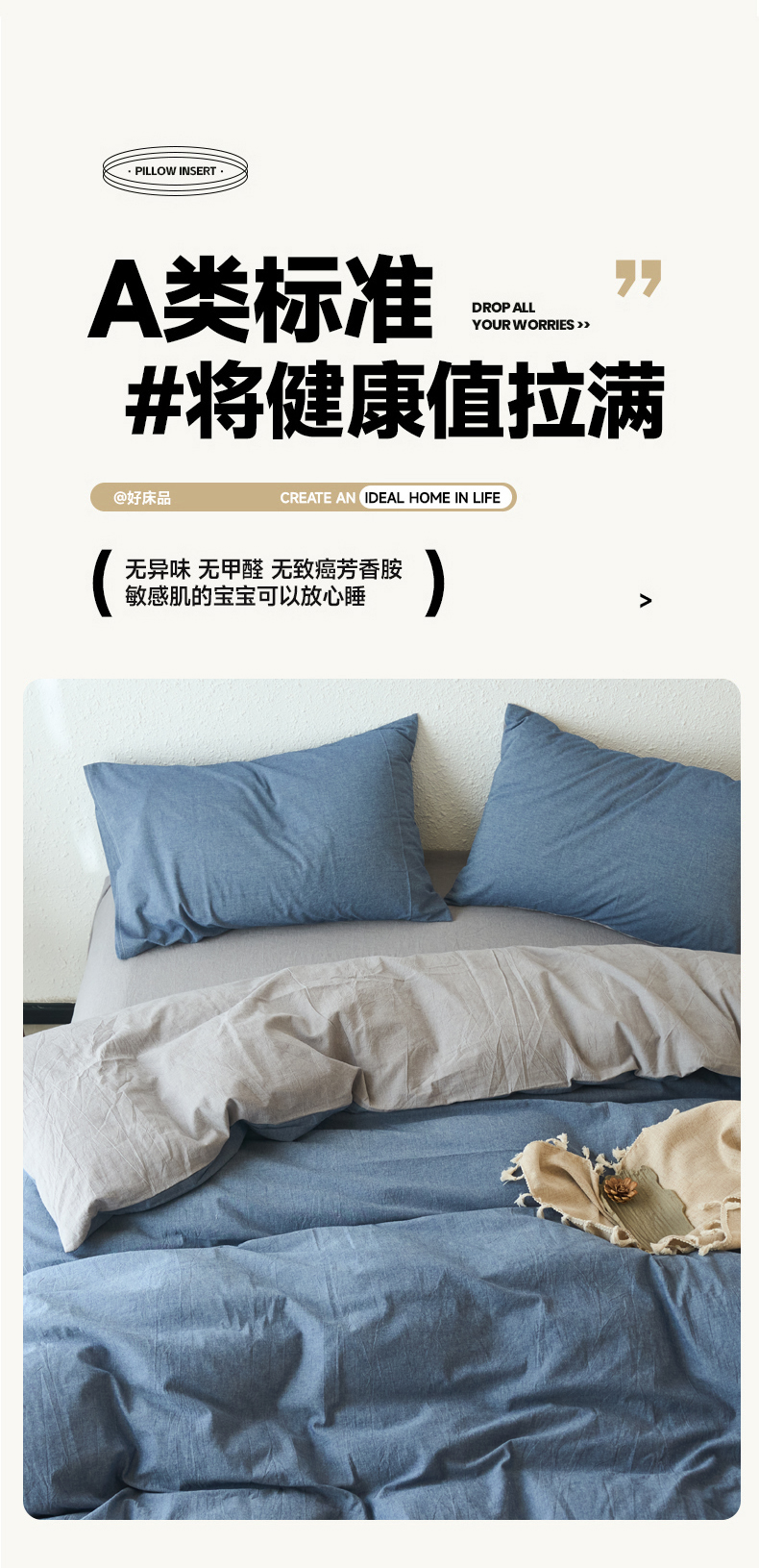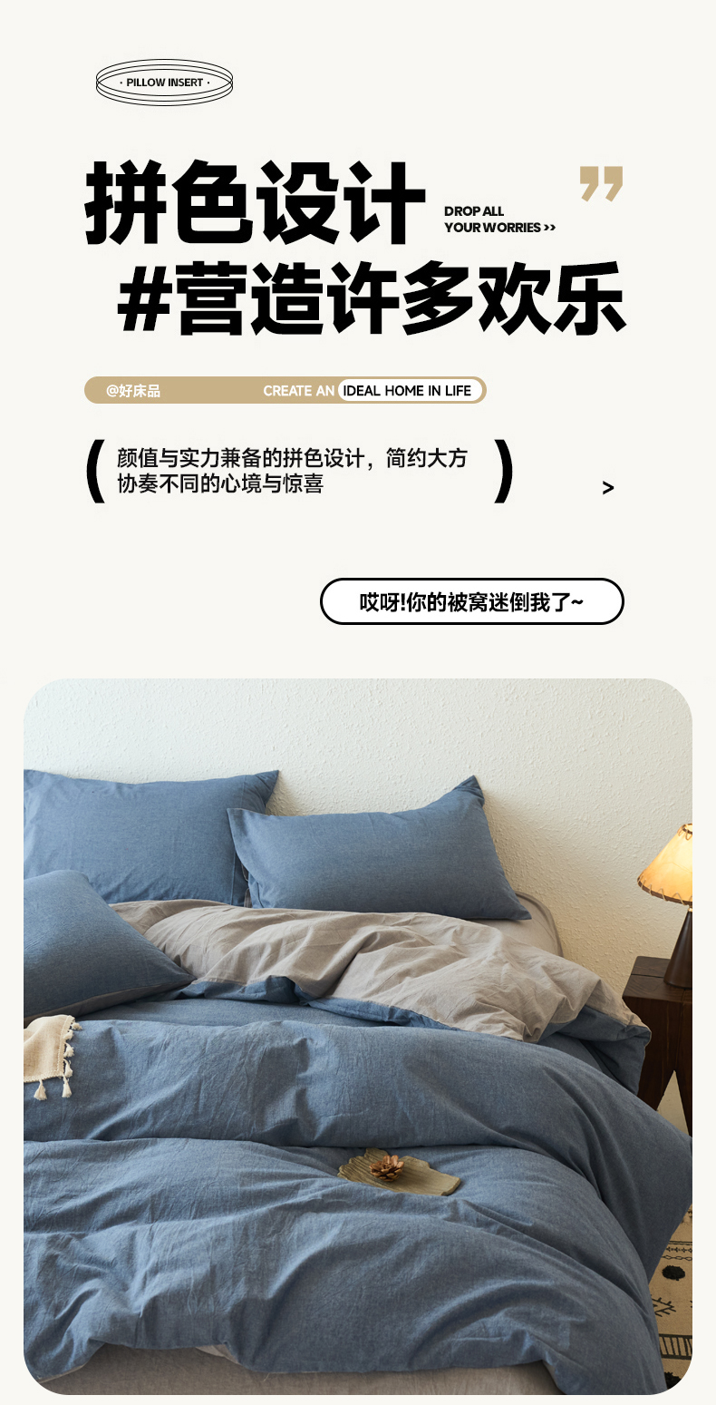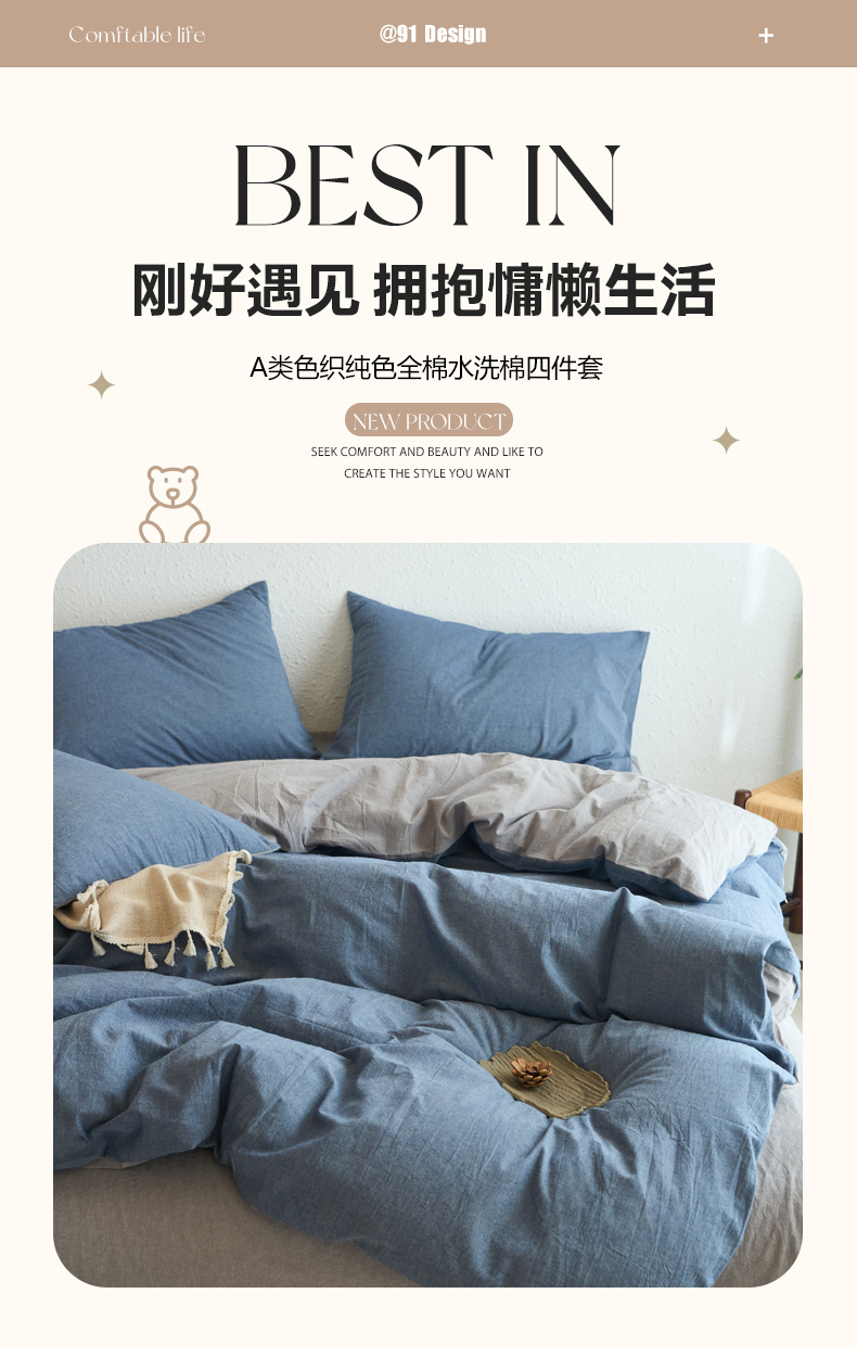 当前位置: 91家纺网 > 商品网购 > 床品套件 > 四件套 > 全棉普通四件套 > 兰紫橙家纺 2026新款A类色织纯色全棉水洗棉四件套 全棉水洗棉-牛仔蓝+浅灰