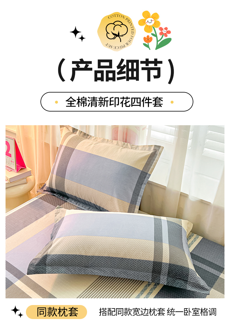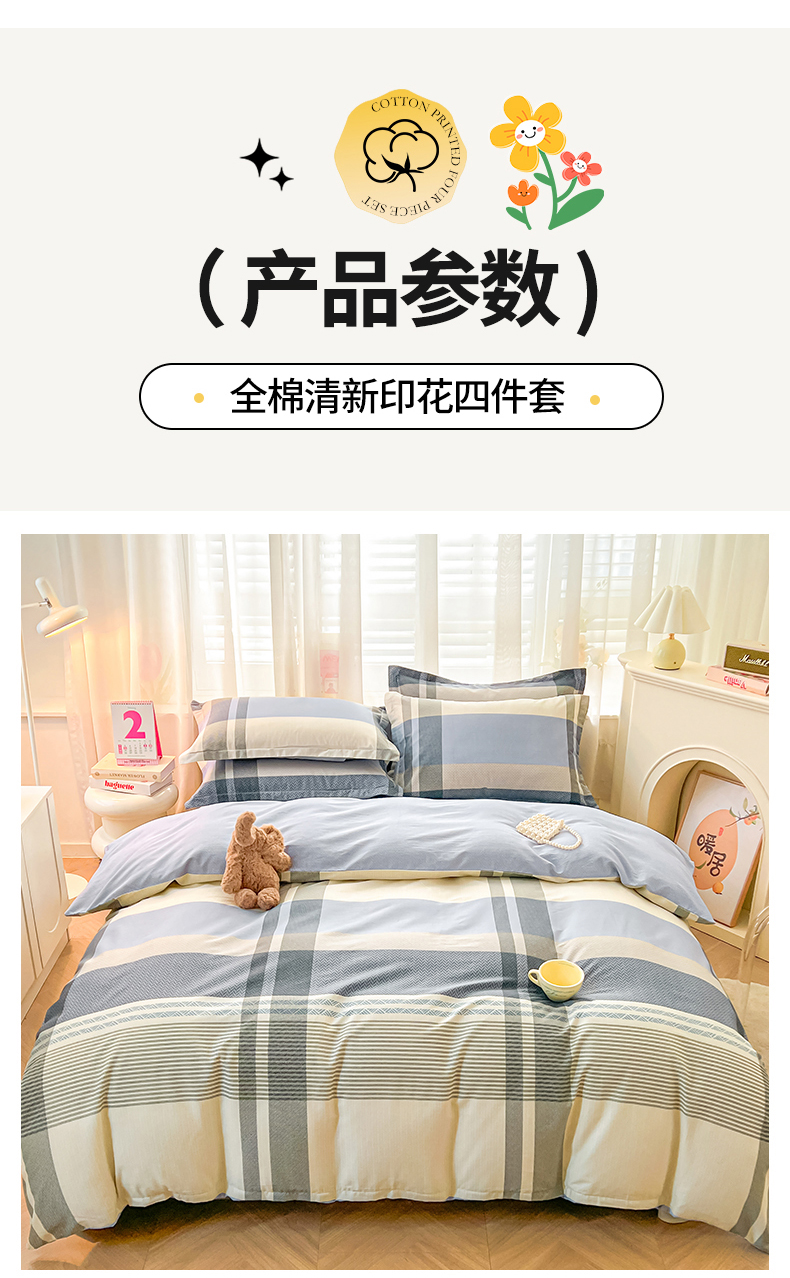 当前位置: 91家纺网 > 商品网购 > 床品套件 > 四件套 > 全棉普通四件套 > 珂博家纺 2026新款12868全棉纯棉小清新印花四件套 格调都市