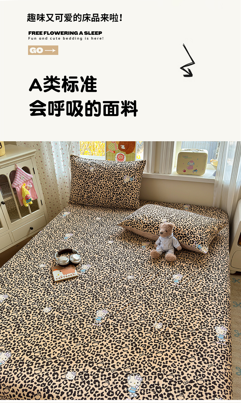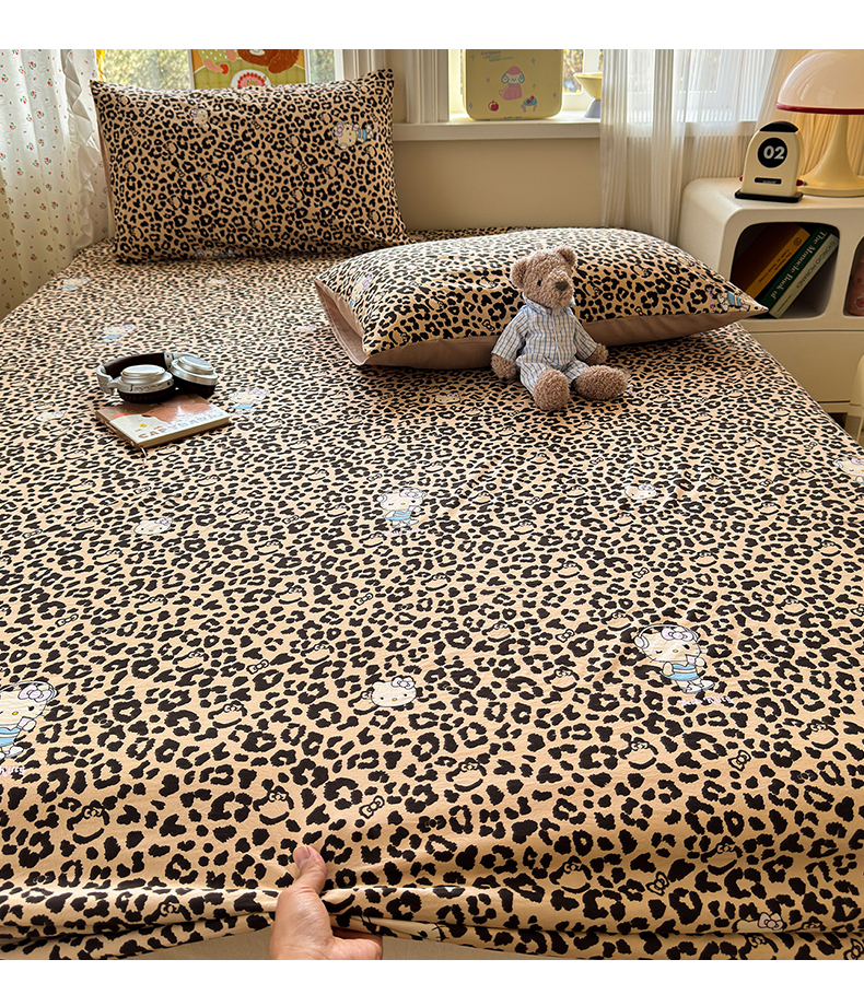 沐芷 2026 【提供买家秀】古法水洗仿棉床笠席梦思床罩床垫防滑床套罩床笠三件套 豹纹音乐