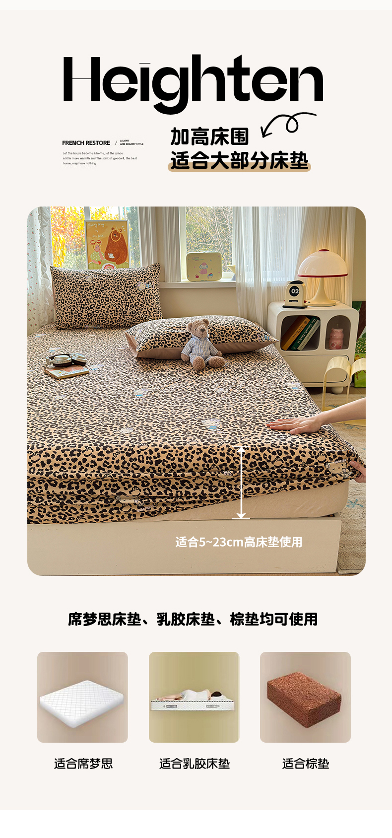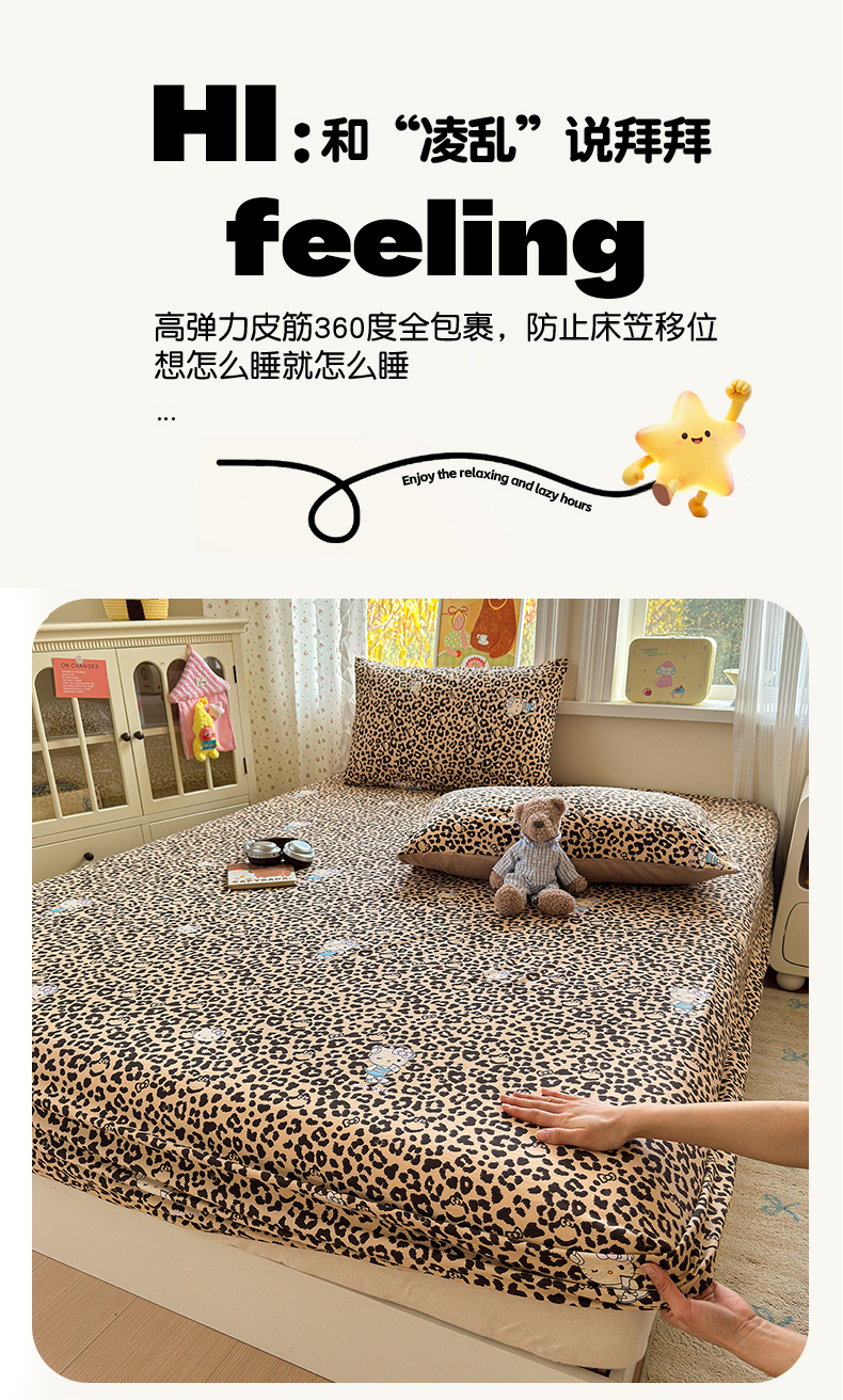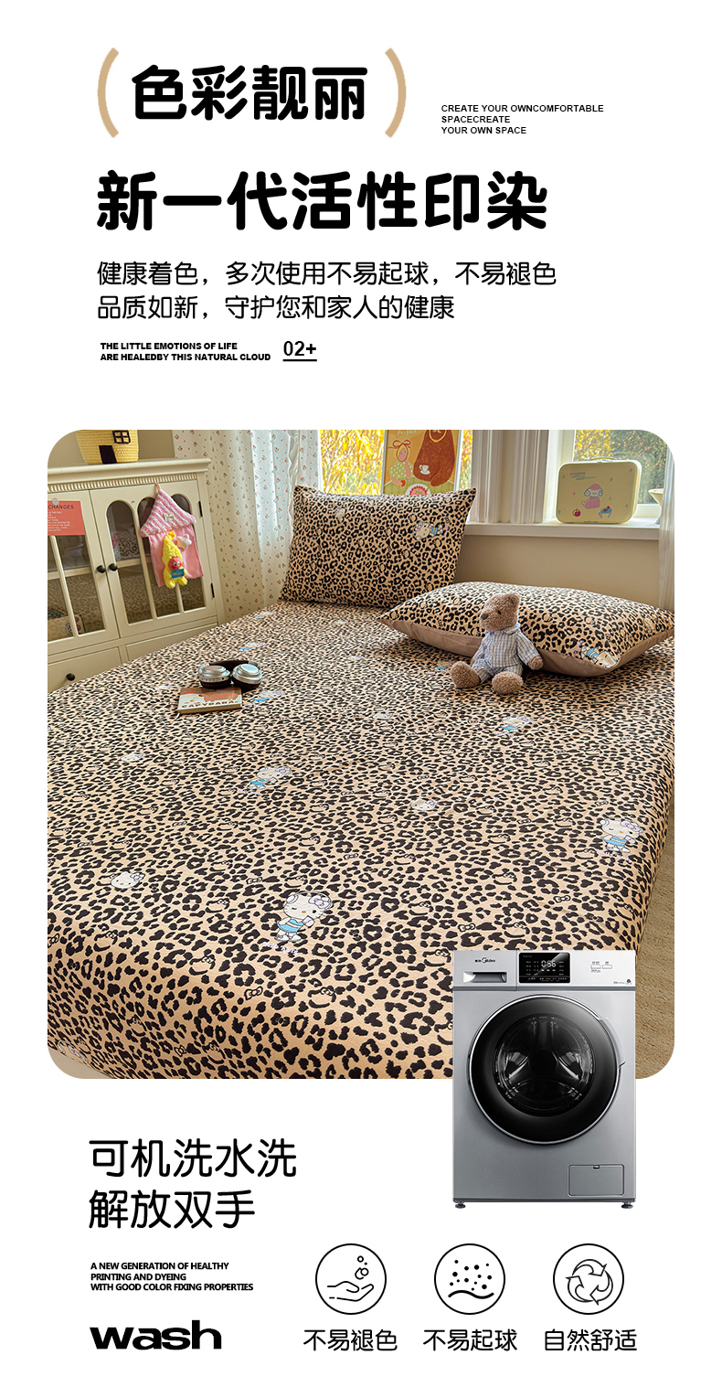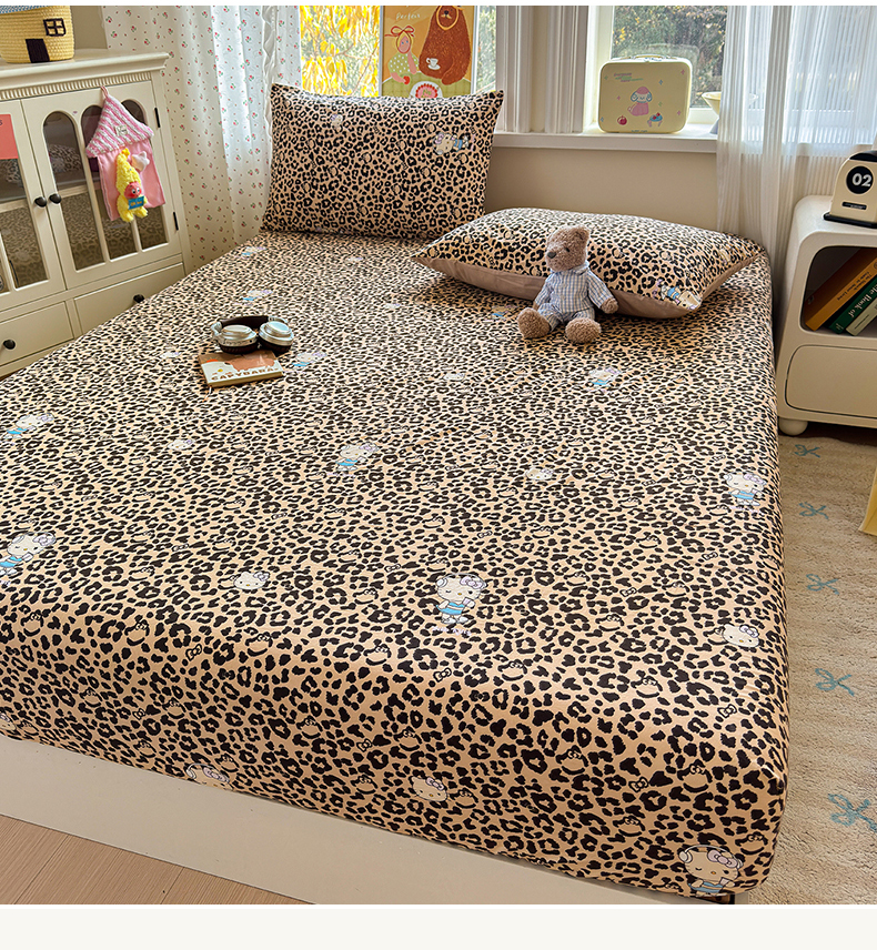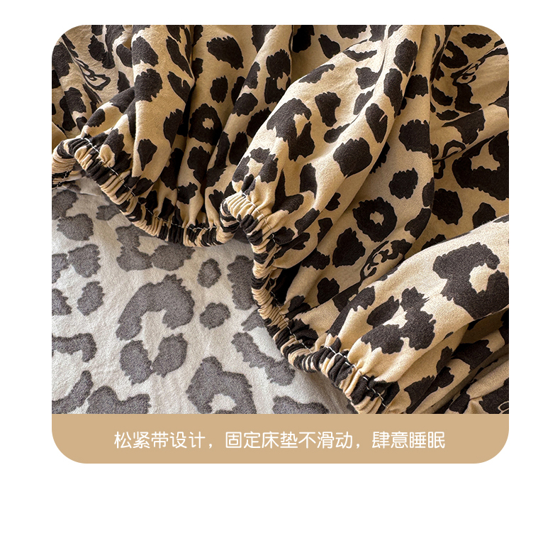 • 91家纺网 家纺一手货源 找家纺 沐芷 2026 【提供买家秀】古法水洗仿棉床笠席梦思床罩床垫防滑床套罩床笠三件套 豹纹音乐