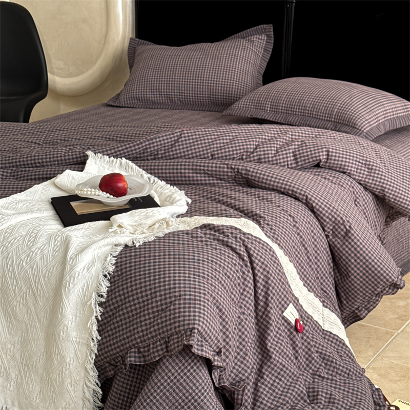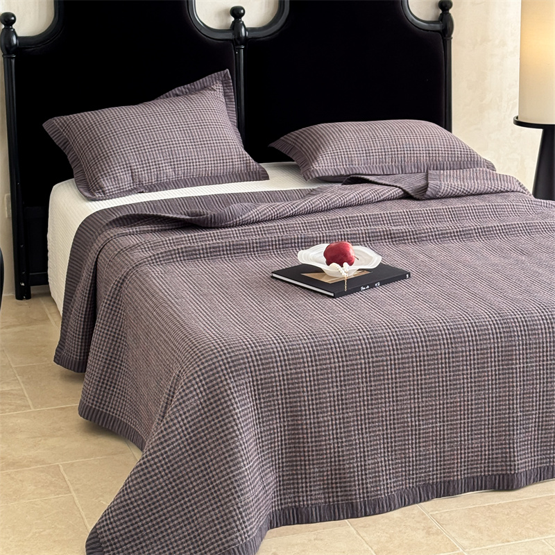 (总)床盖工厂店 2026新款双面全棉水洗棉花糖床盖三件套-米通格系列,米通格-灰色,米通格-咖色,米通格-浅绿,米通格-浅紫,米通格-玉色