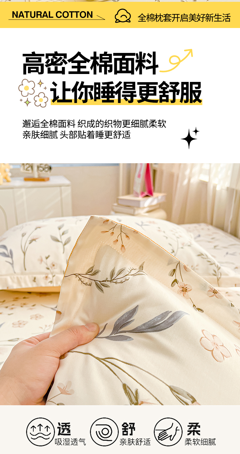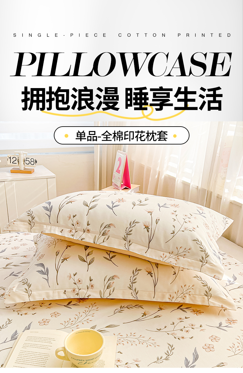 珂博家纺 2026新款12868全棉纯棉小清新印花系列枕套单件单枕套 花枝印象