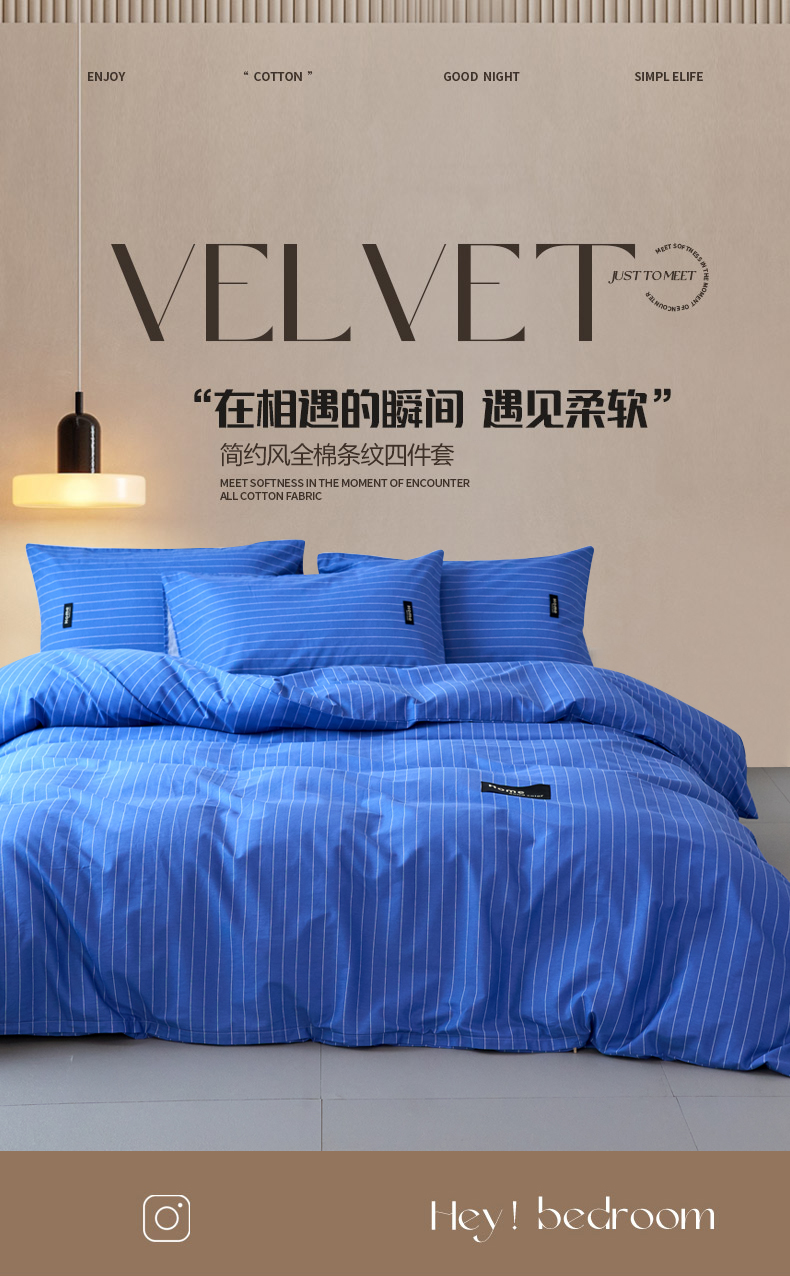 当前位置: 91家纺网 > 商品网购 > 床品套件 > 四件套 > 全棉普通四件套 > 兰紫橙家纺 2026新款简约风全棉条纹四件套 半夏