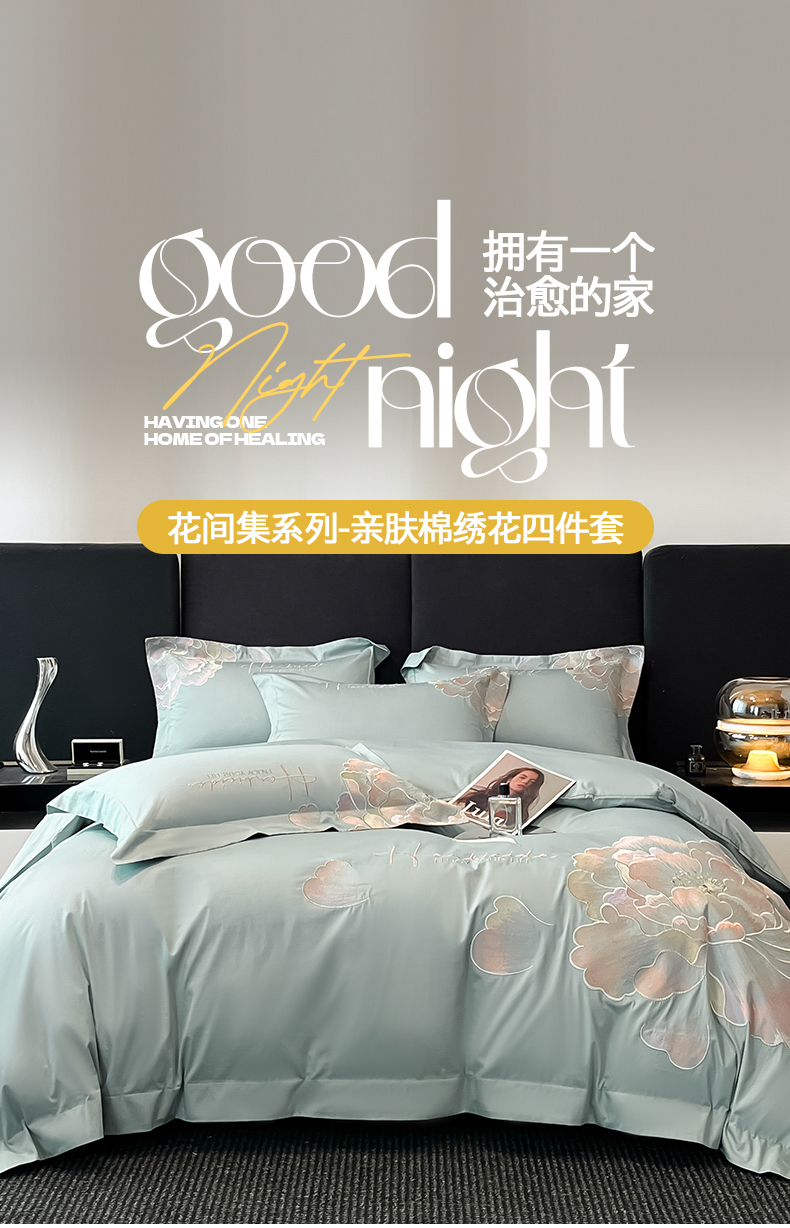 当前位置: 91家纺网 > 商品网购 > 床品套件 > 四件套 > 普通磨毛四件套 > 置顶家纺 2026春夏新款130克磨毛花间集刺绣小清新四件套-风格一 花间集-繁星蓝