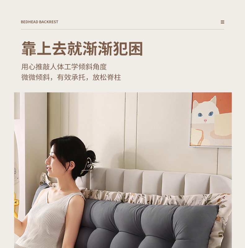 永光家居 2026新款洛熙床头靠垫韩版靠枕榻榻米软包(不供多多),湖蓝,深灰,浅灰,孔雀蓝,驼色