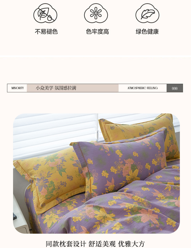 商品名称:恋之语 2026新款双层纱原麻复古风四件套 暖紫花影