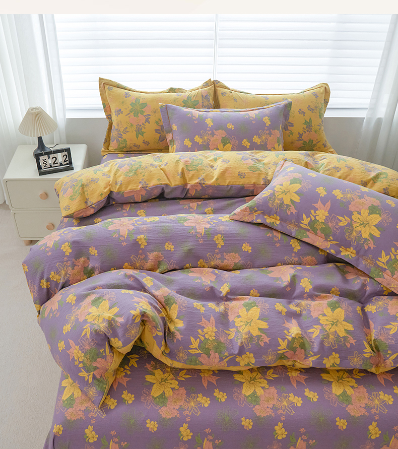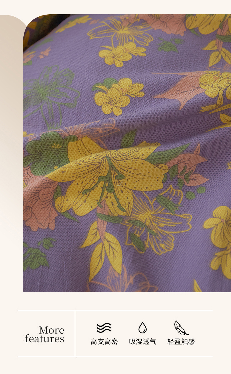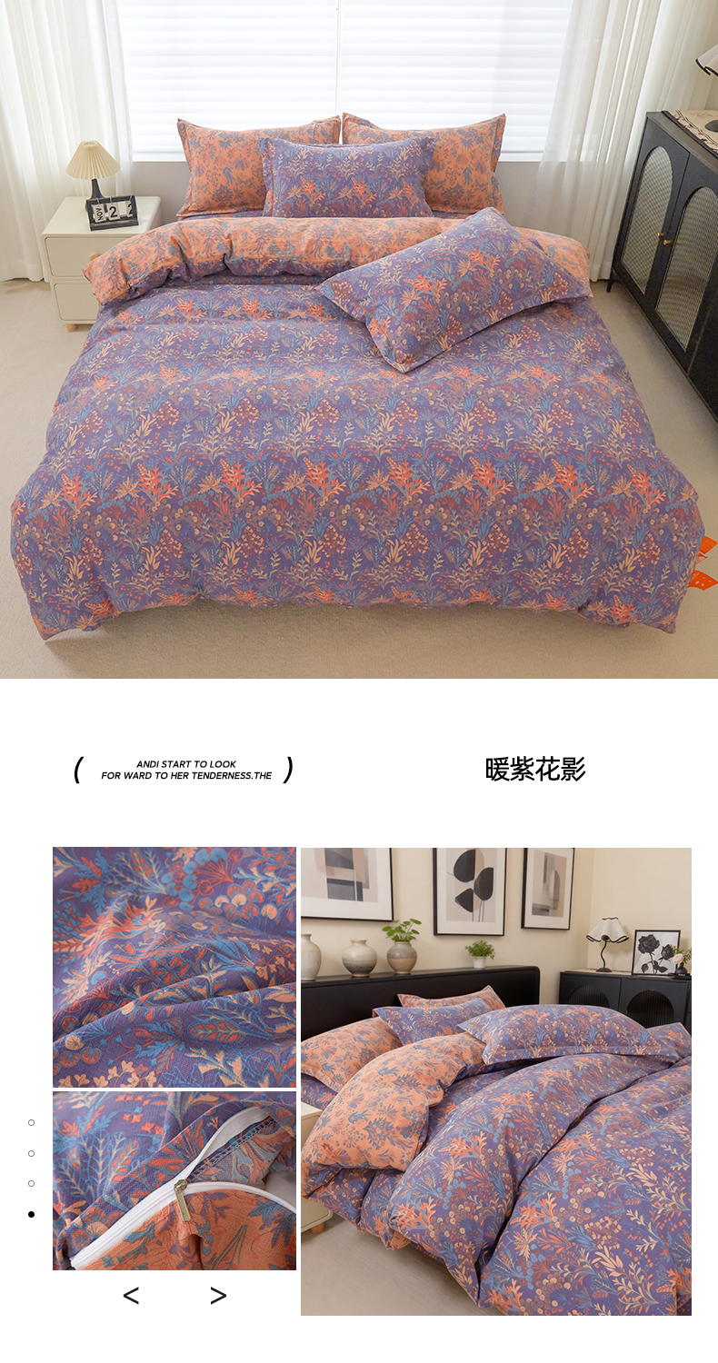 恋之语 2026新款双层纱原麻复古风四件套 暖紫花影