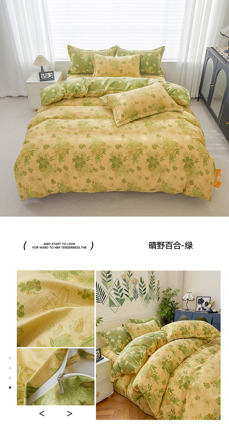 (总)恋之语 2026新款双层纱原麻复古风四件套,焦糖花事,暖橙叶语,暖紫花影,晴野百合-绿,晴野百合-紫,野棠晚风,金枝绿叶,酒红花事,鎏金绮梦,绿野金葵