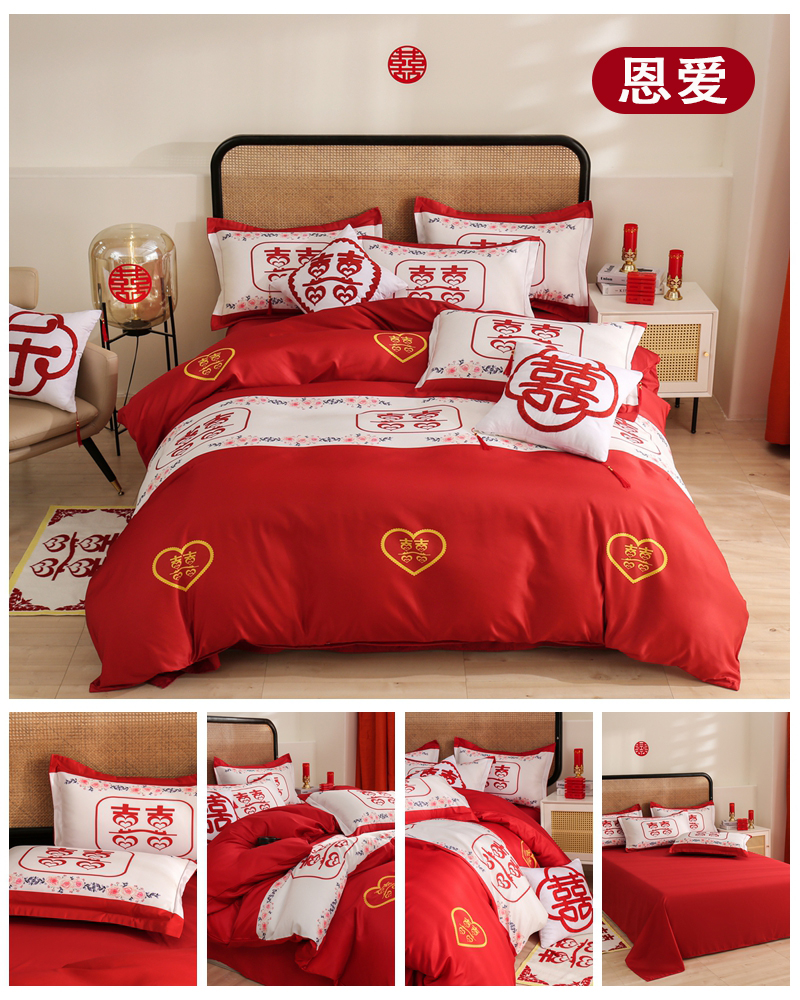 当前位置: 91家纺网 > 商品网购 > 床品套件 > 四件套 > 婚庆四件套 > 啊雅家居 2026新款大红婚庆数码印花四件套床单款床笠款 心爱
