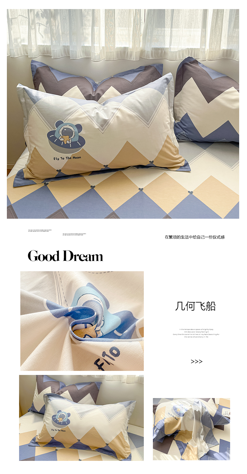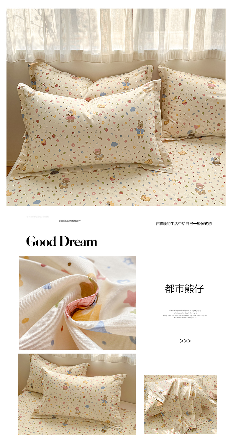 商品名称:花梦欣 2026新款全棉印花单品系列3简约卡通款-单枕套 都市熊仔